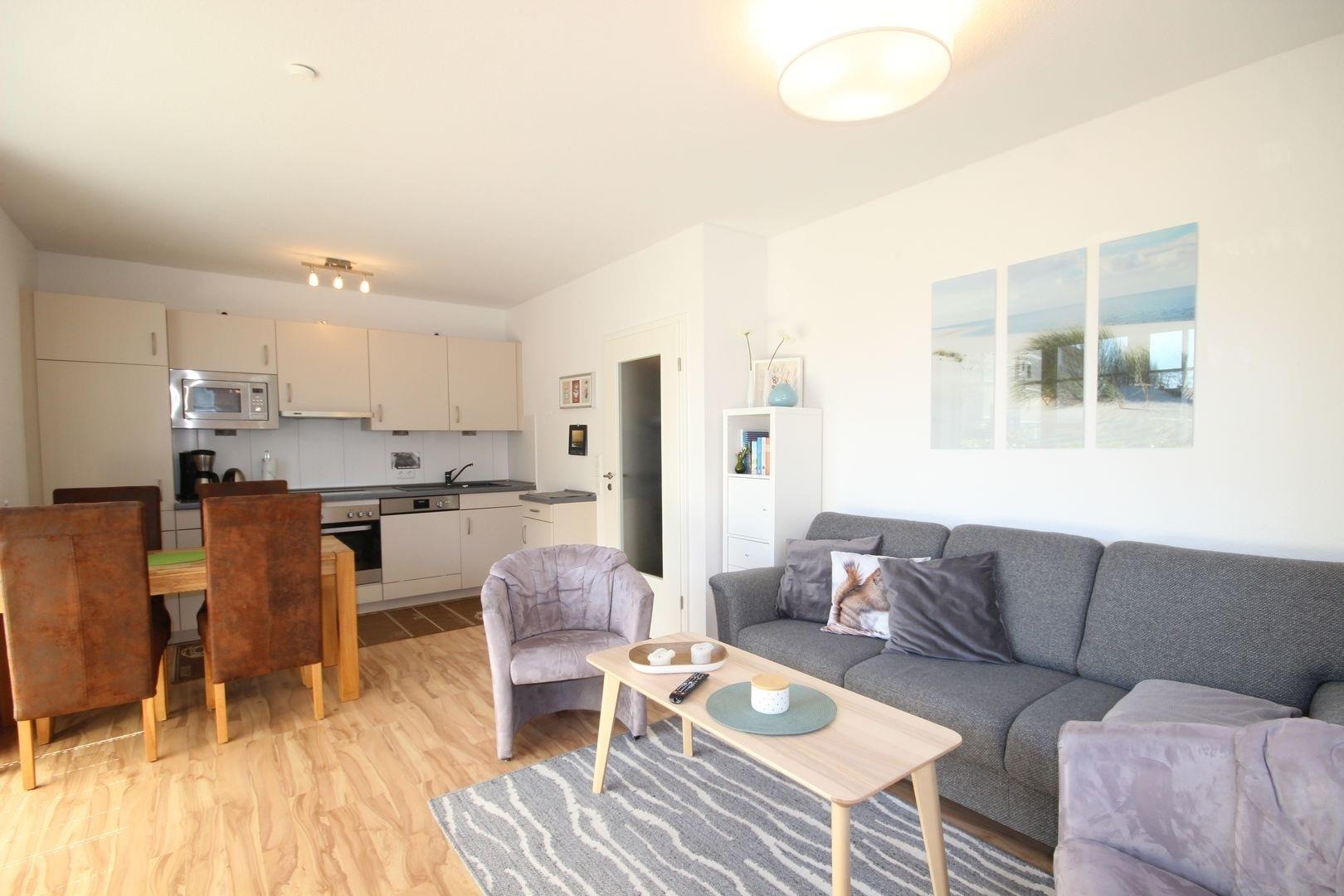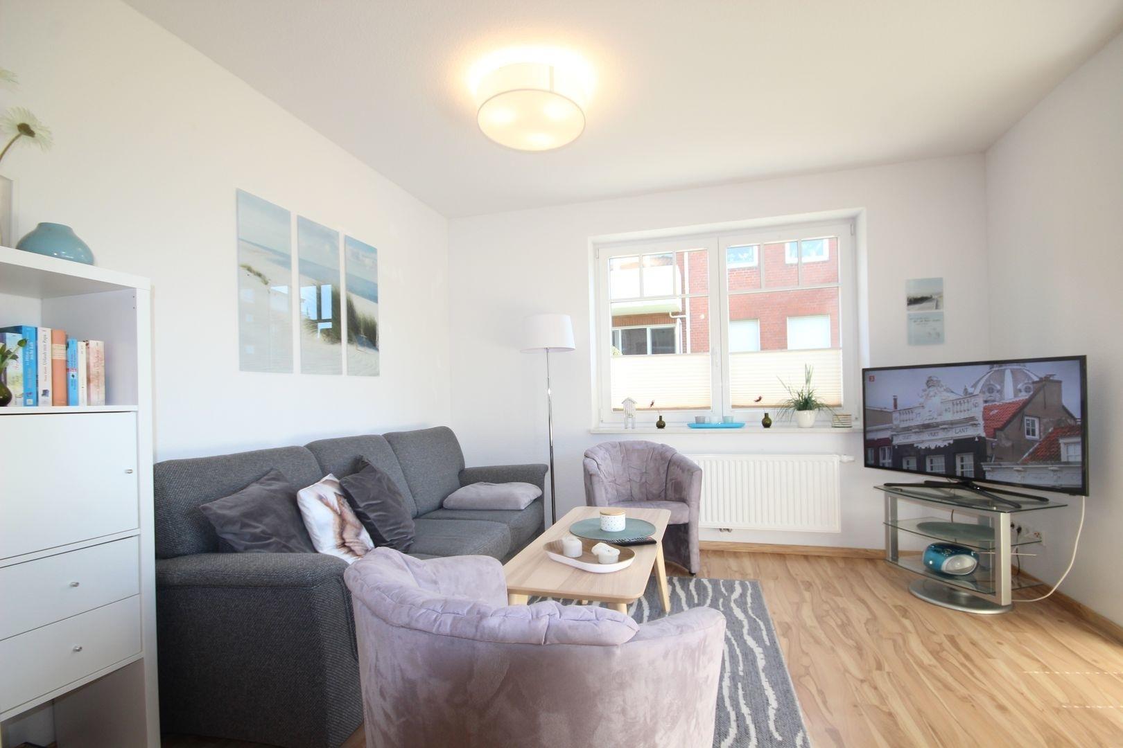 Nur wenige Minuten zum Strand und Zentrum liegt diese komfortabel und sehr schön eingerichtete 3-Zimmer-Wohnung, ca. 59 m² im Erdgeschoss mit eingegrünter Süd-West-Terrasse & Sichtschutz. Die Wohnung ist gehbehinderten geeignet.