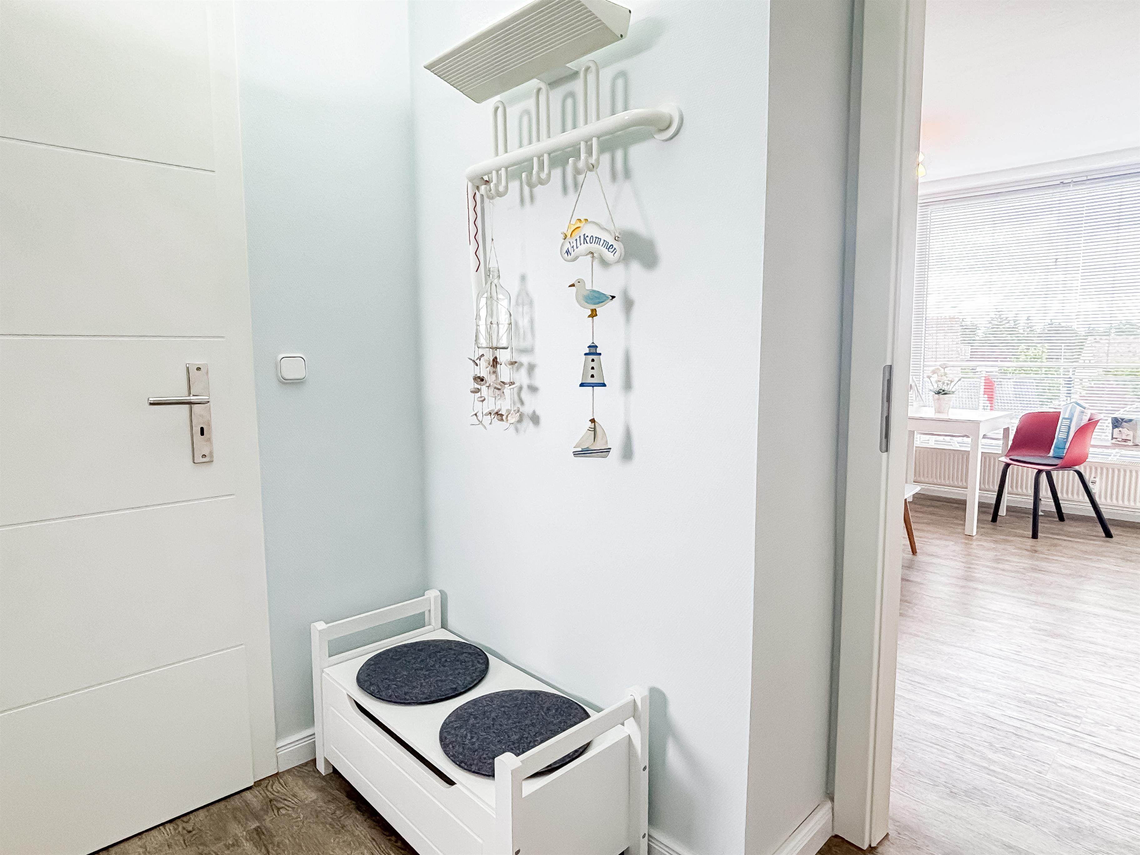 Die Wohnung ist mit Designboden versehen und verfügt über einen geräumigen Einbauschrank und eine Garderobe.