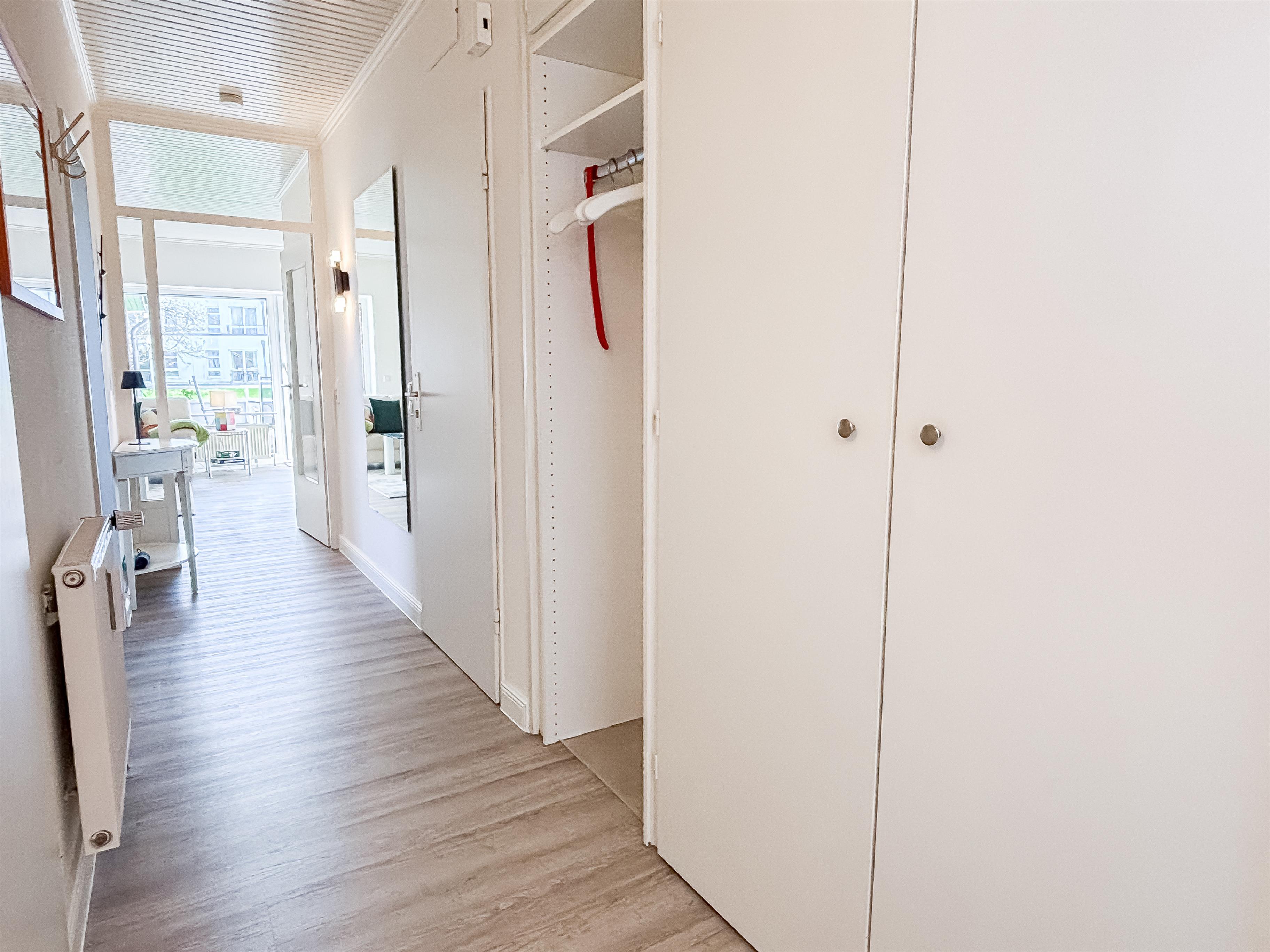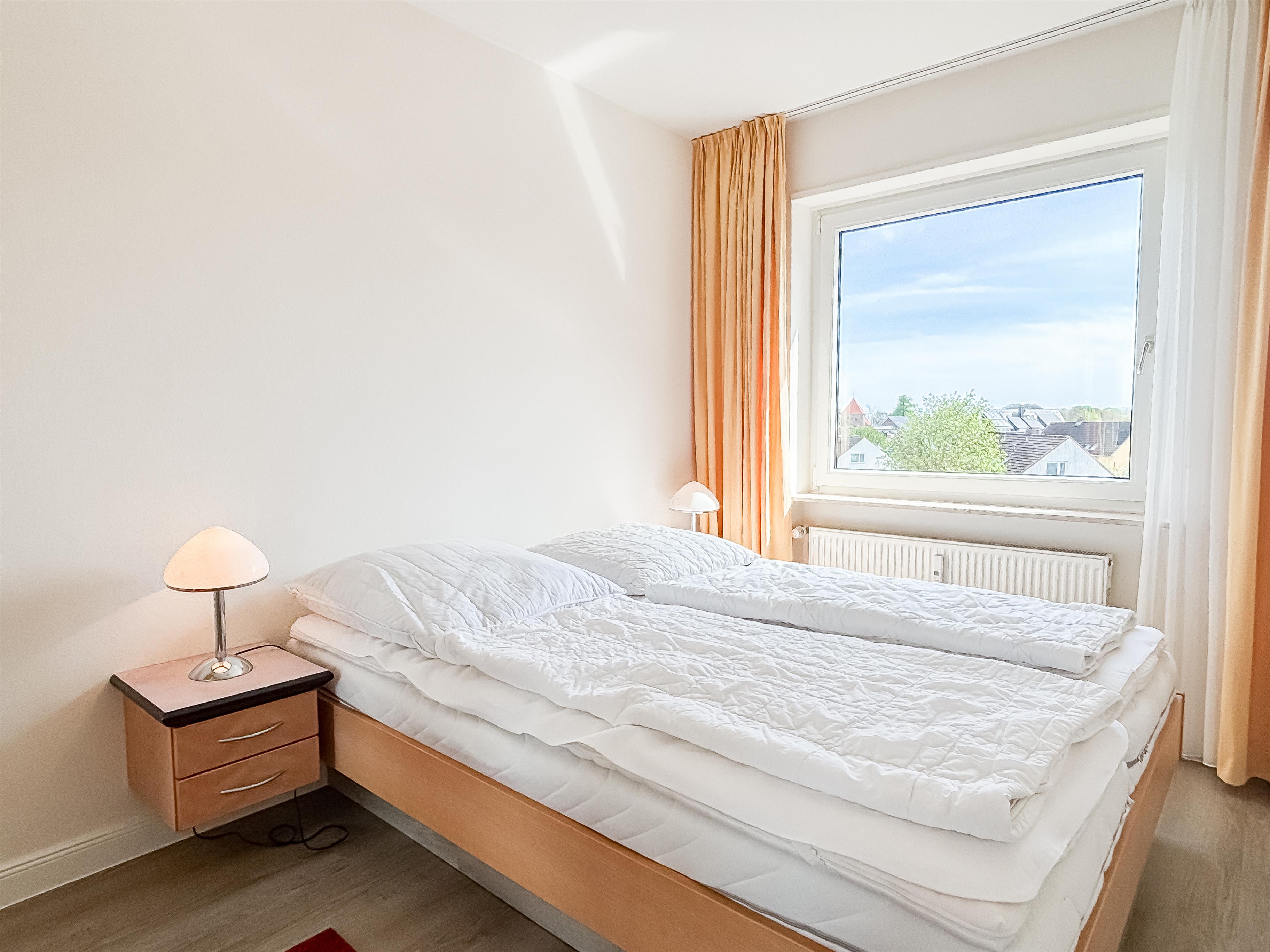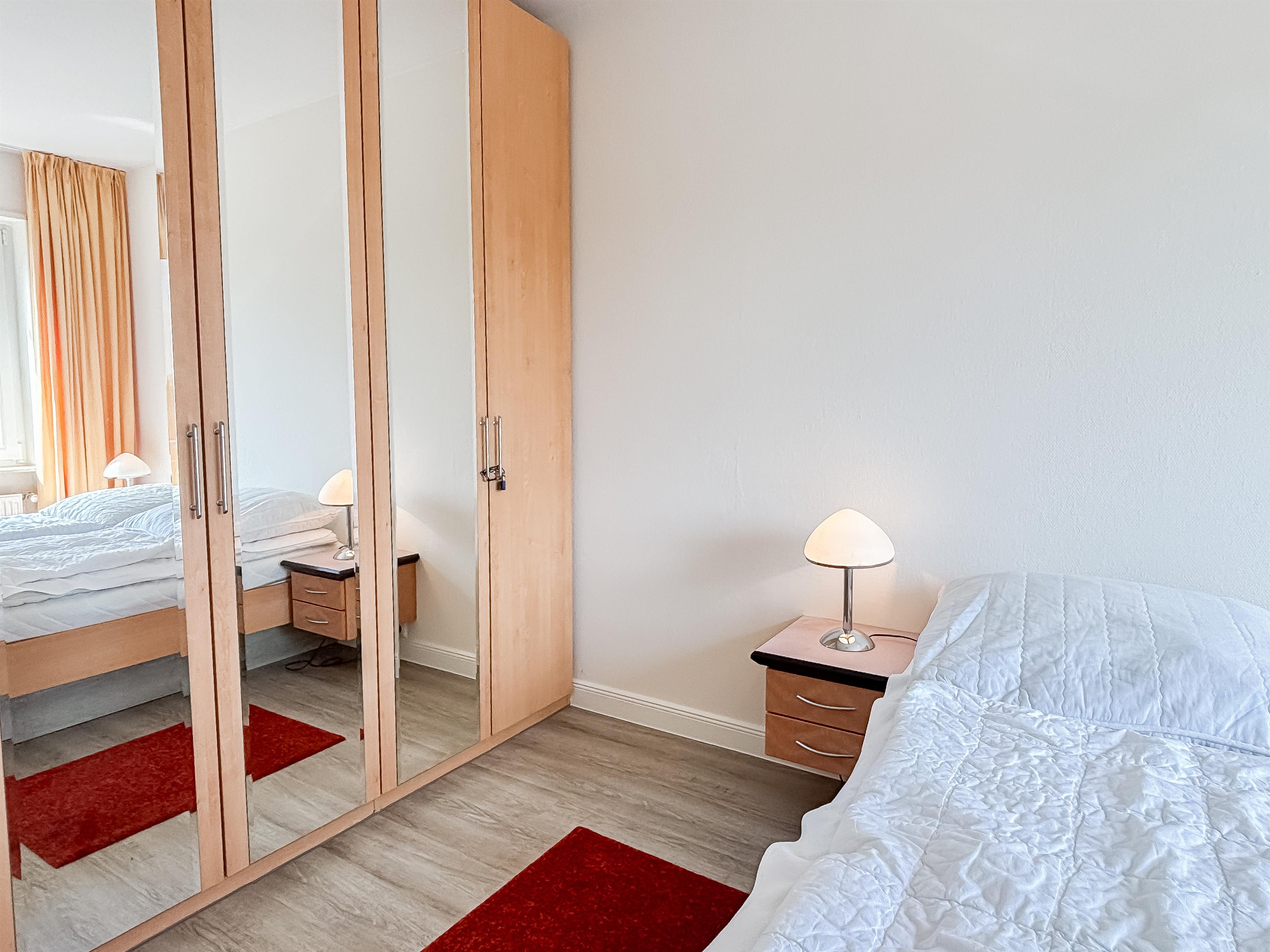 Im Schlafzimmer sorgt ein komfortables Doppelbett für erholsamen Schlaf; ein geräumiger Kleiderschrank bietet ausreichend Stauraum.