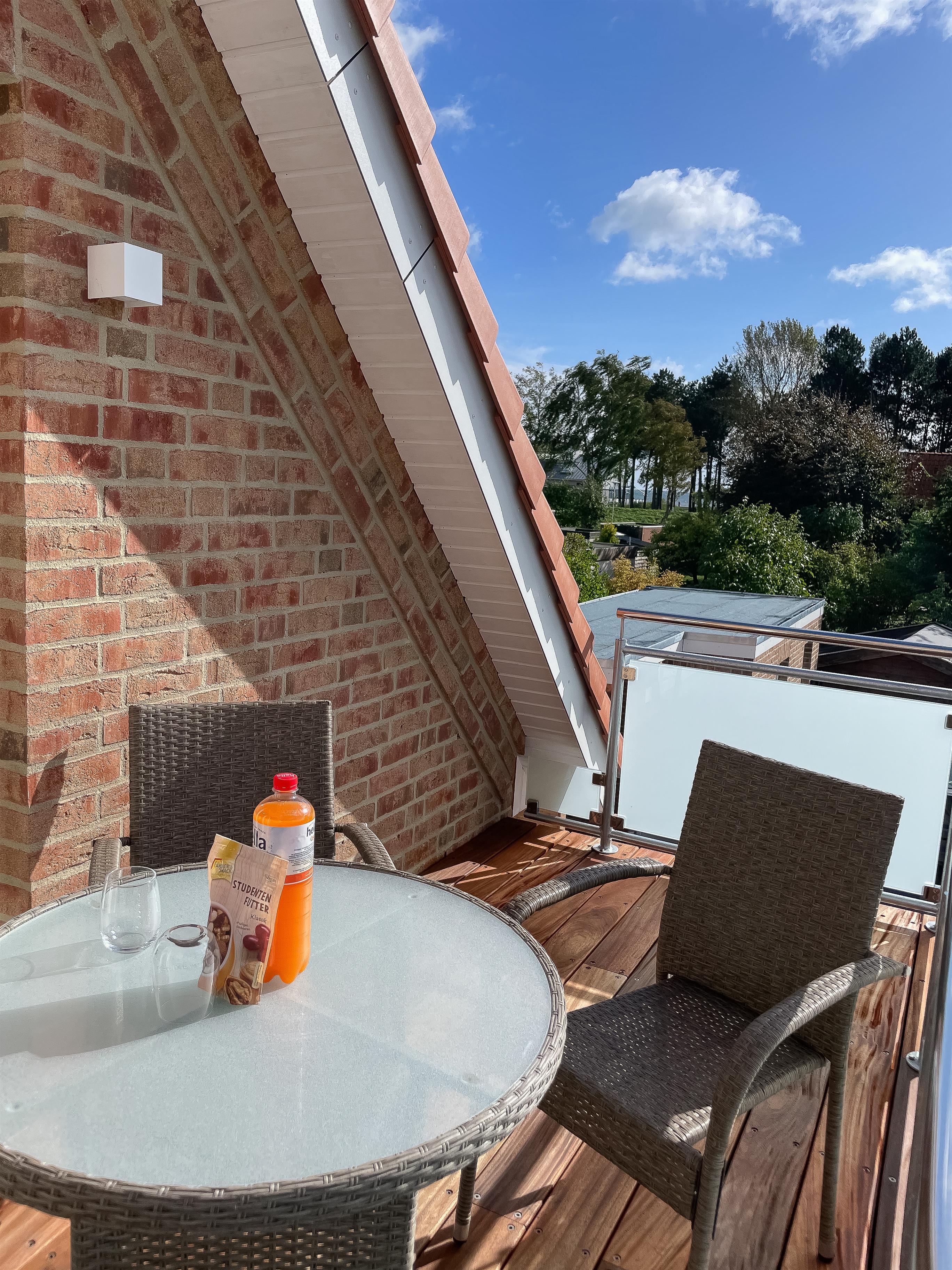 Vom Balkon können Sie einen Blick auf die Ostsee erhaschen und genießen den ganzen Tag Sonne und Meeresbrise.