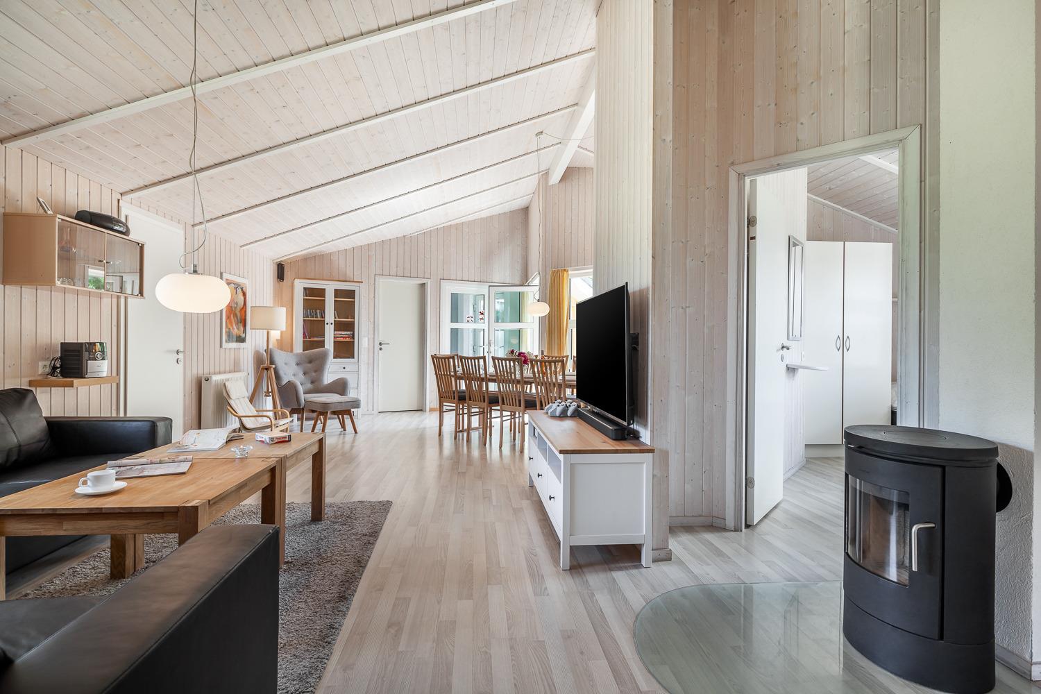 Das gemütlich eingerichtete Haus verfügt über 6 Schlafzimmer, 2 Bäder und einen großzügigen, hellen Wohnraum mit Kaminofen und Esstisch für 10 Personen. In dem 15 m² großen Innen-Swimmingpool mit Unterwasserbeleuchtung/Gegenstromanlage können sich Groß und Klein vergnügen, Whirlpool, skandinavische Sauna und Dampfbad auch vorhanden.