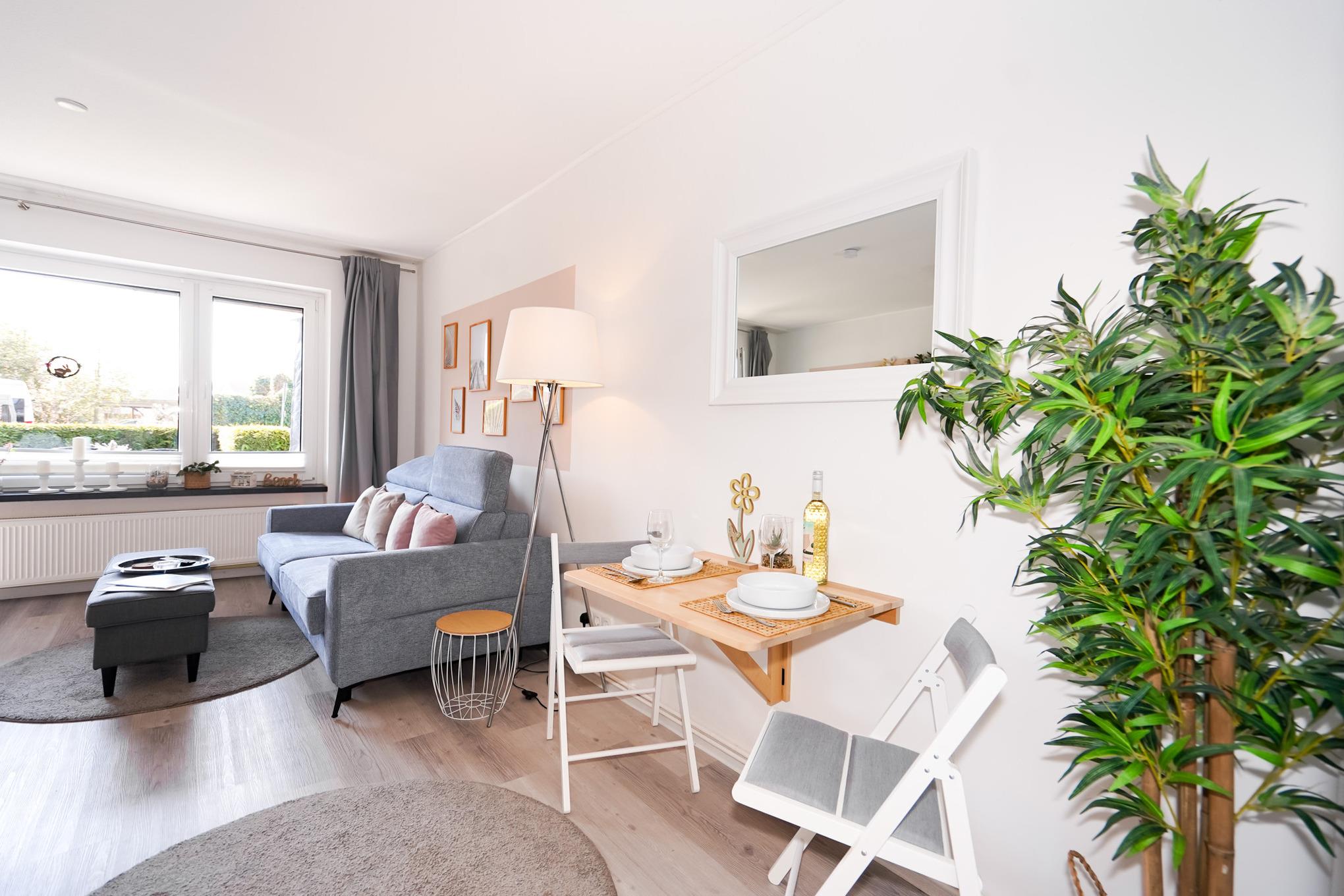 Gemütliche 1-Zimmer-Terrassen-Ferienwohnung mit kleinem Garten! Nur wenige Gehminuten vom Strand und Hundestrand entfernt. Bis zu zwei Hunde sind hier immer herzlich willkommen!