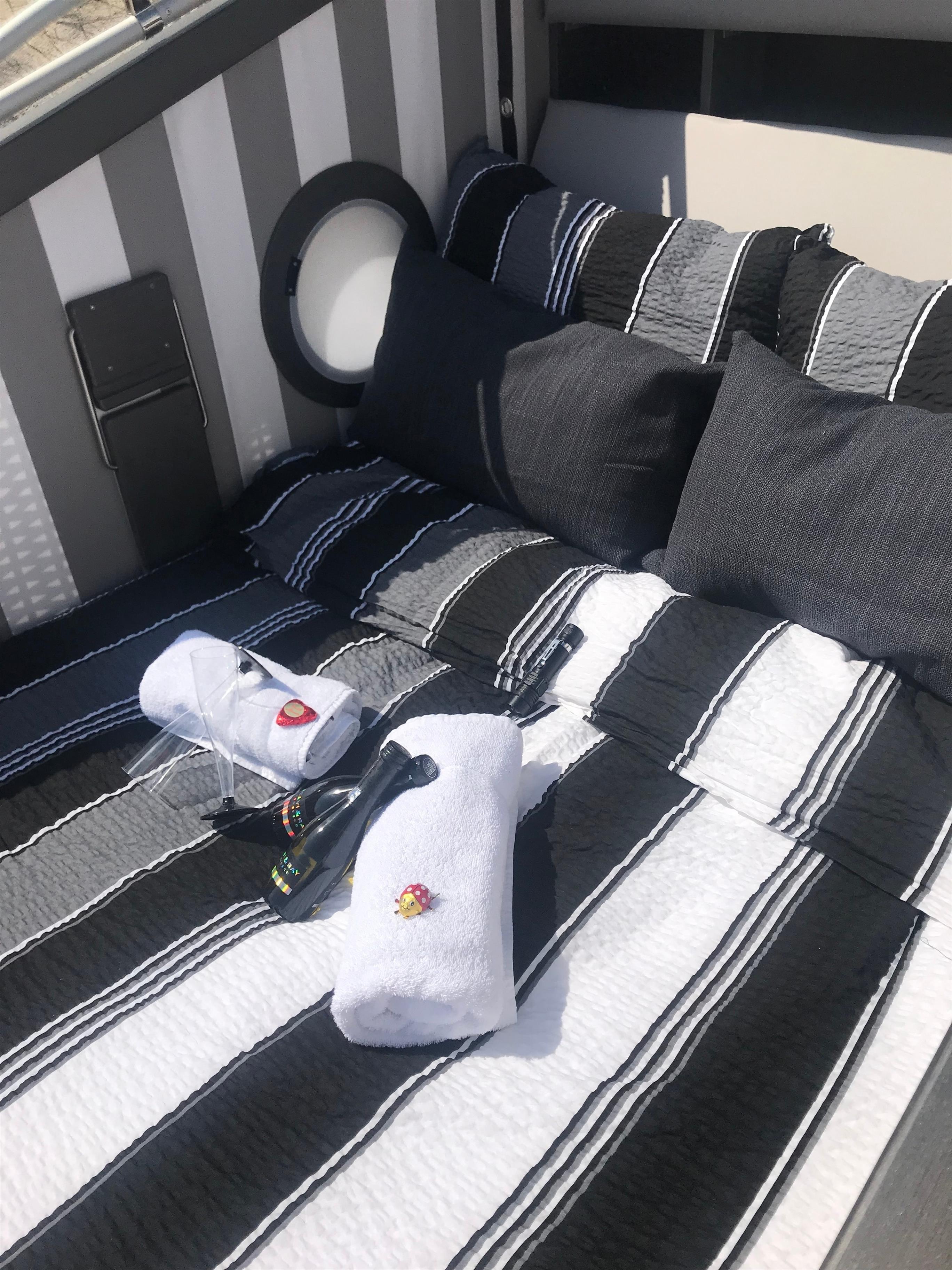 Sie können ab 13 Uhr den Korb beziehen , er ist bereits mit Bettwäsche ausgestattet, sowie iener Fleecedecke falls es doch mal etwas Kühler wird.