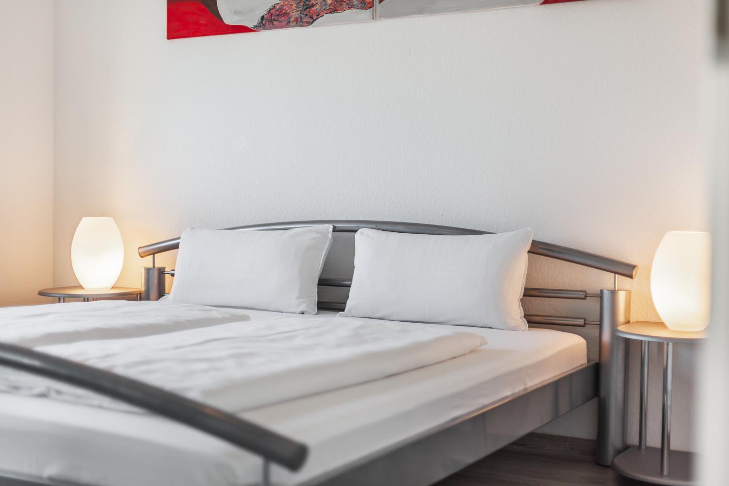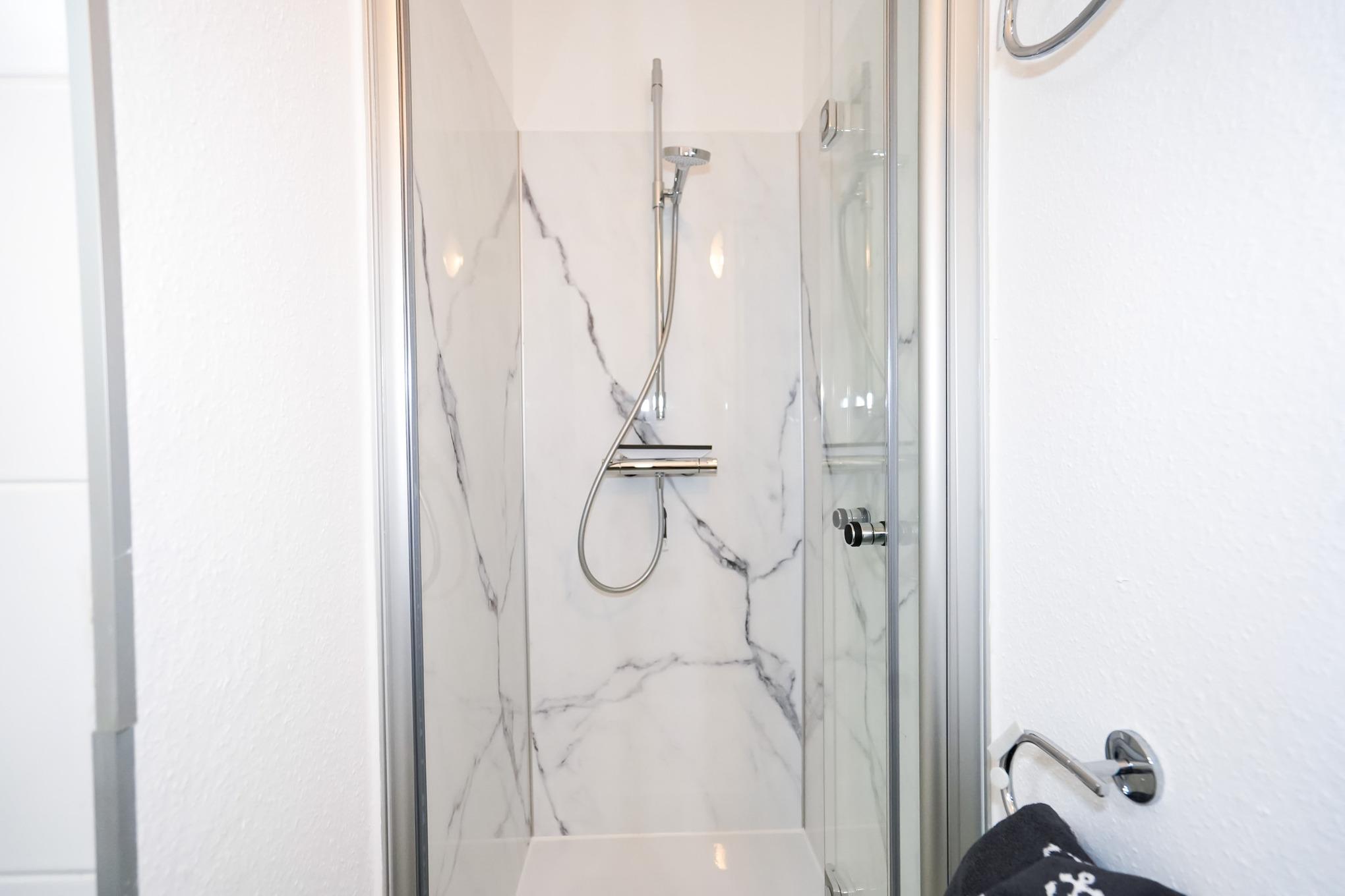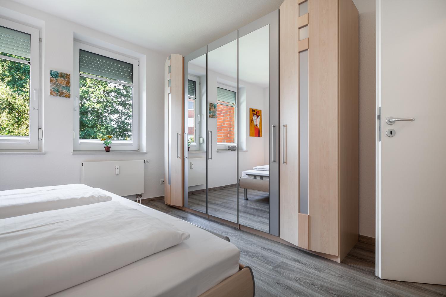 Die Wohnung verfügt über zwei getrennte Schlafräume, worin sich jeweils ein Doppelbett (1,80 x 2,00 m / jeweils 2 Matratzen) befindet. Beide Schlafzimmer haben ein dazugehöriges Duschbad. Das ist Urlaub - kein langes Anstehen vor dem Badezimmer.