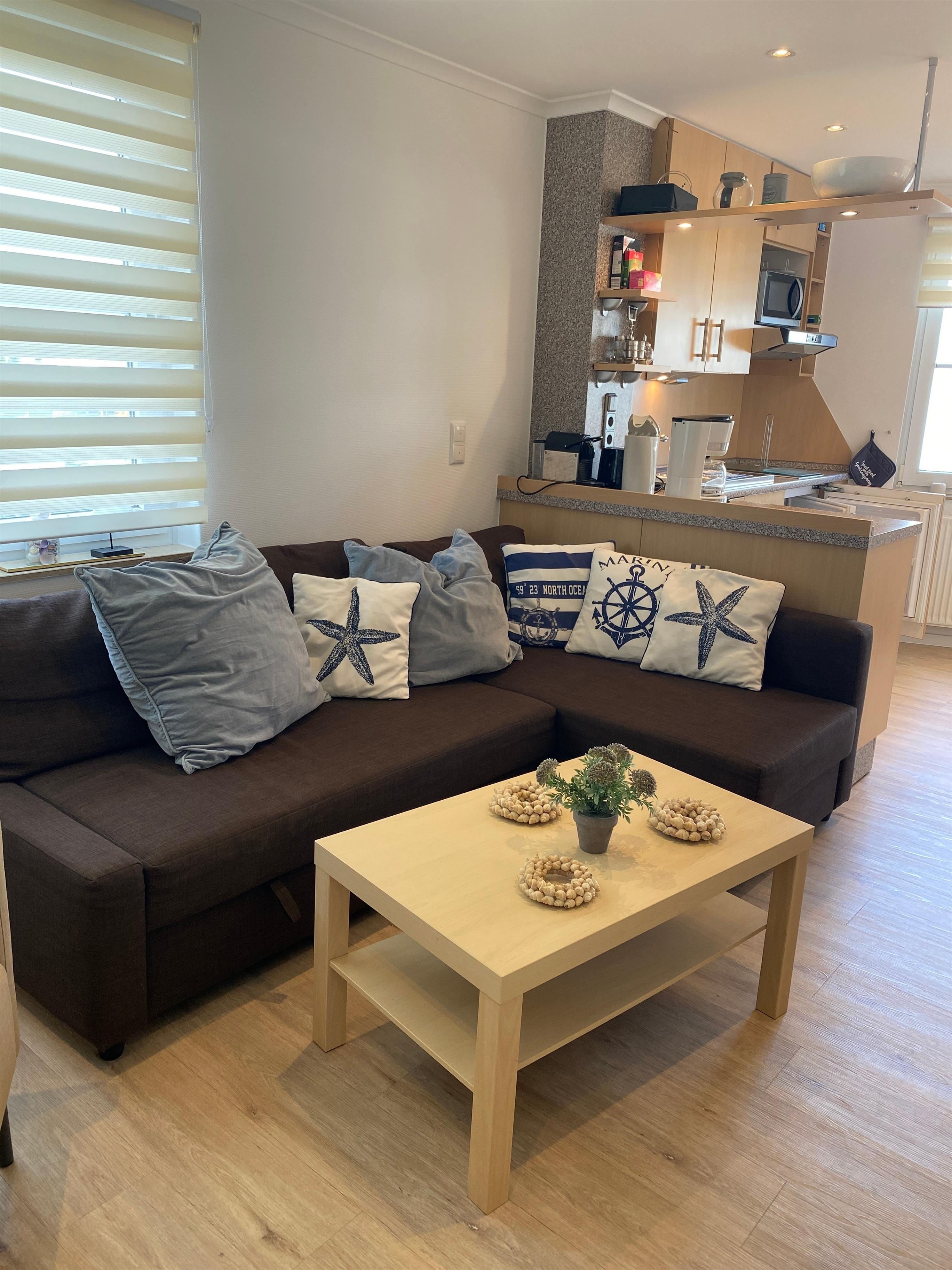 Im Wohnzimmer befindet sich eine Couchgarnitur, Flach TV, Stereo/CD, DVD sowie Zugang zur Terrasse. Im Schlafzimmer befindet sich ein Doppelbett und gr. Kleiderschrank. Auch hier gibt es einen Zugang zur Terrasse.