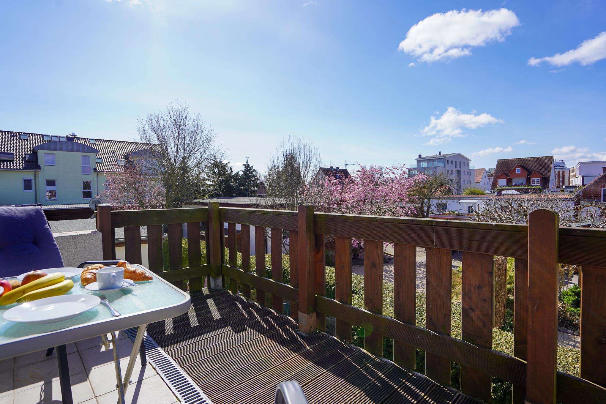 Helle Ferienwohnung in Grömitz mit Balkon, Meerblick und nur 100 m zum Strand.