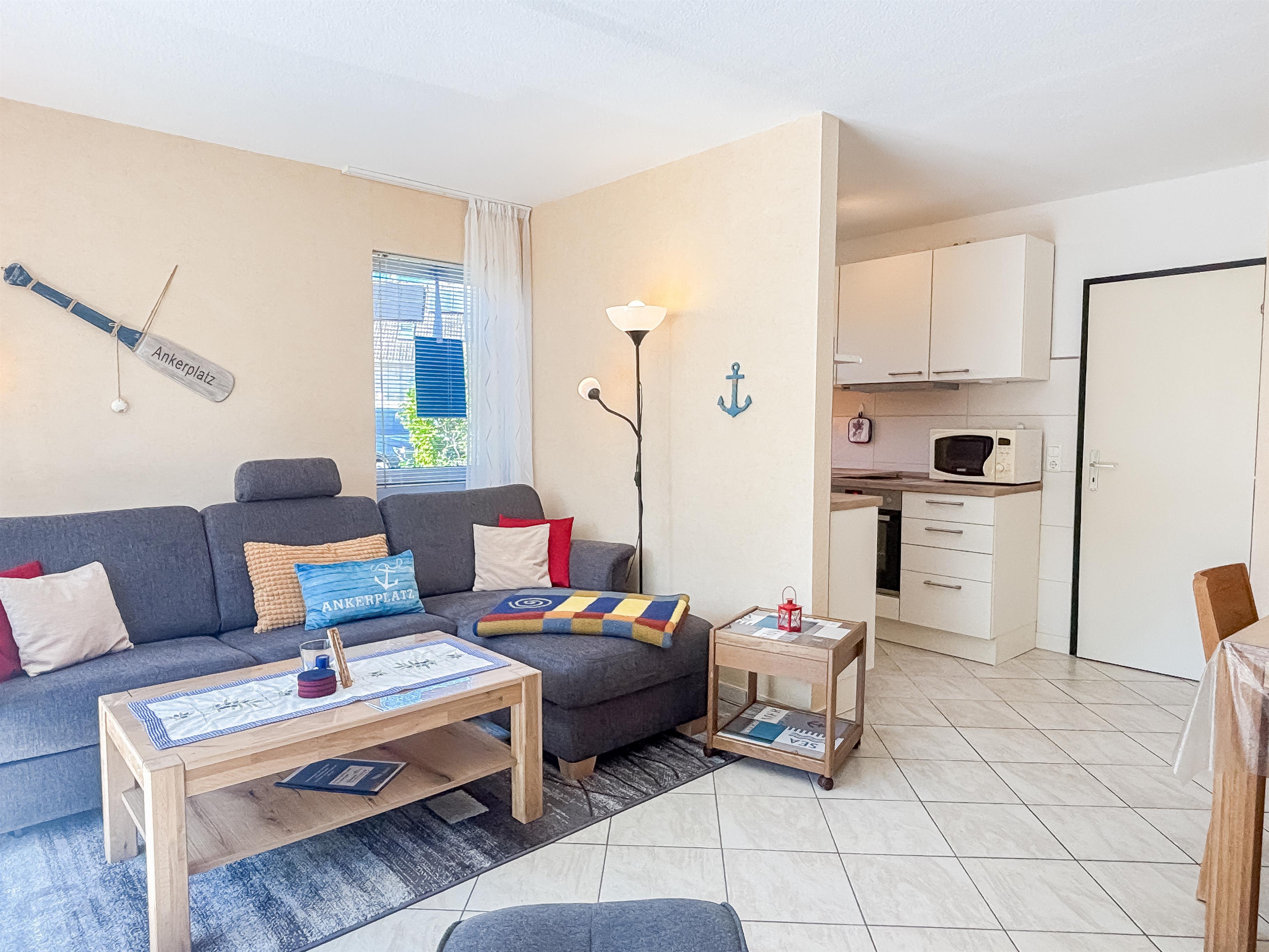 Ruhig gelegene, gemütliche 3-Zimmer-Wohnung auf 60 m² eignet sich für bis zu 4 Personen . Fußläufig sind Strand / Promenade und die nächsten Einkaufsmöglichkeiten in ca. 10 Min. zu erreichen.