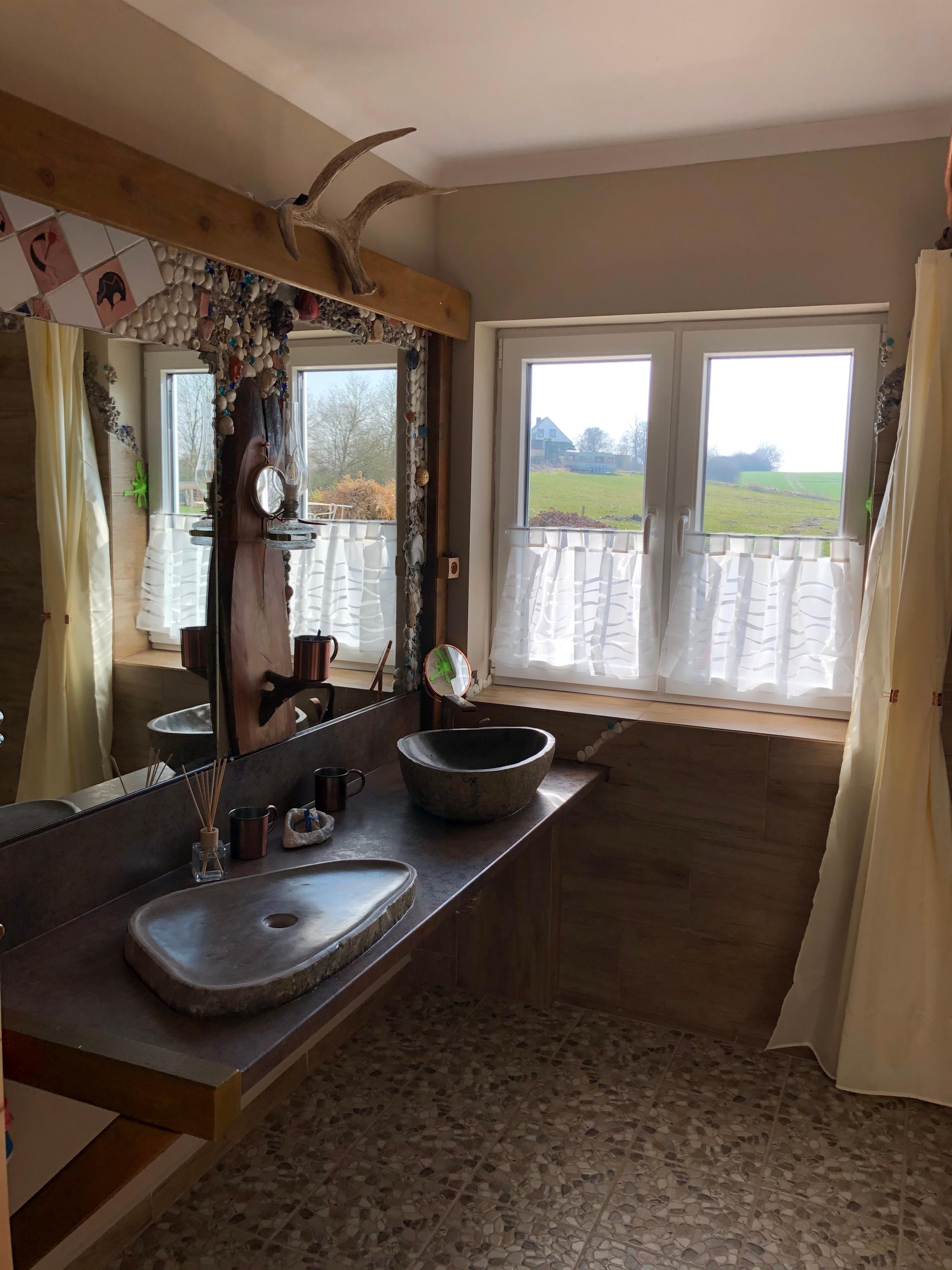 Unsere individuelle 2-Zimmer FeWo "Country Earth" für 2 Personen erwartet euch in Grömitz-Brenkenhagen: 50m² rollstuhlgerecht im Erdgeschoss, Wohn/Esszimmer mit offener Küche, Schlafzimmer mit elektrisch verstellbarem Boxspringbett, Bad mit bodengleicher Dusche und unterfahrbarem Waschtisch... und das alles im kreativen, liebevoll gestalteten Look.