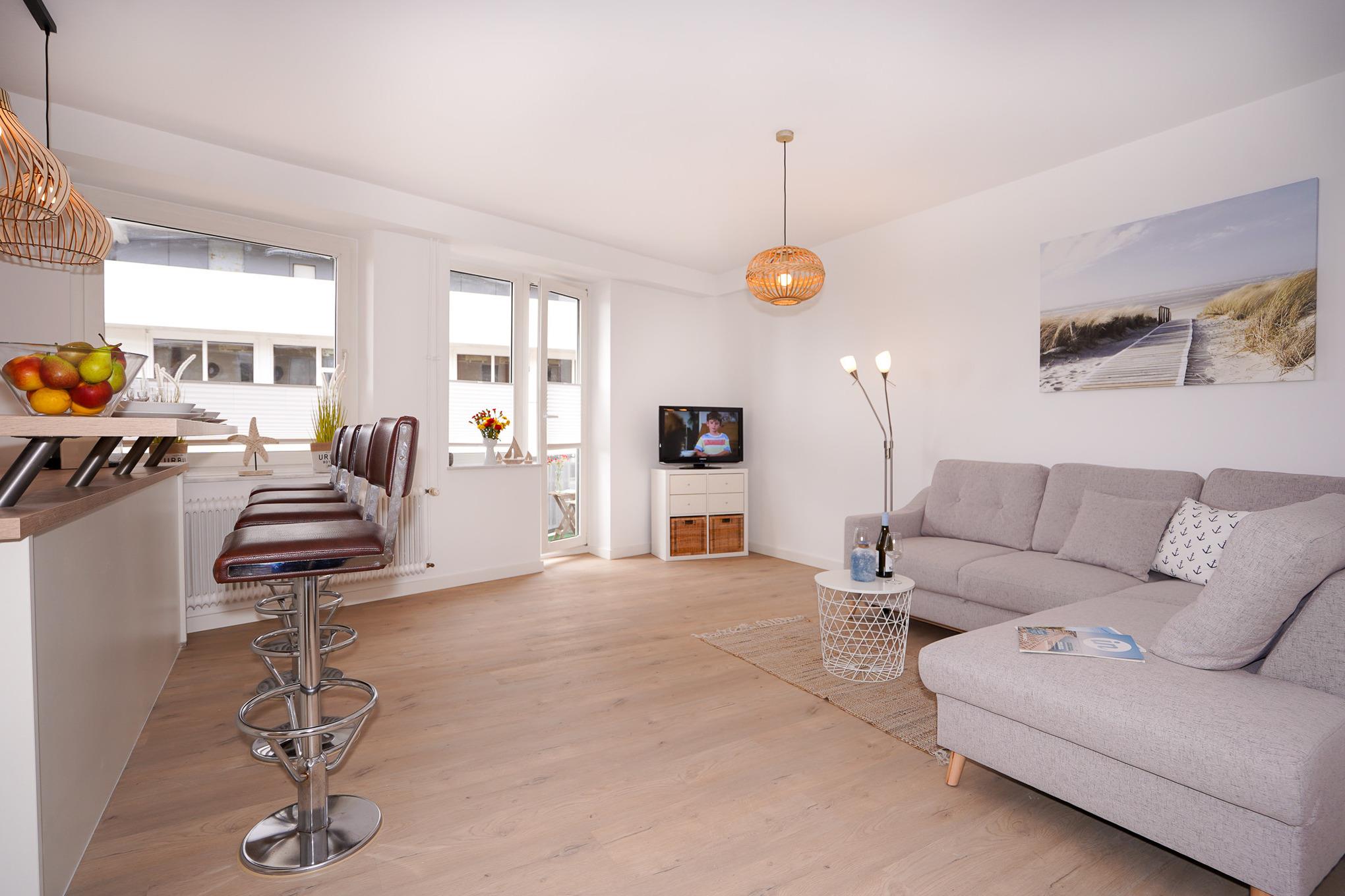Moderne Ferienwohnung in Grömitz mit Balkon, Teilmeerblick und direkter Strandnähe für entspannte Urlaubstage.