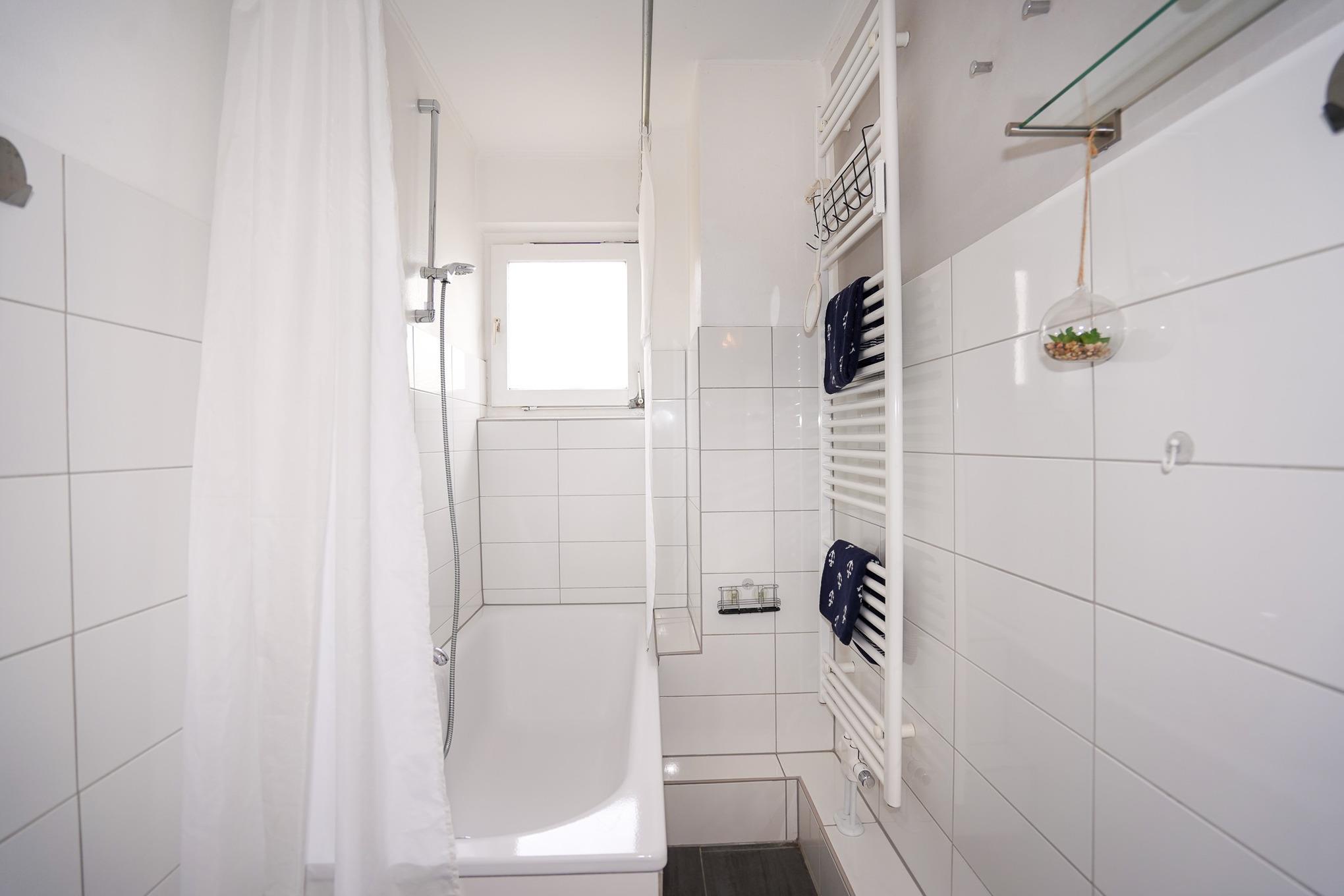 Im Badezimmer mit Badewanne und Duschmöglichkeit sowie im separaten WC steht alles für die tägliche Körperhygiene bereit.
