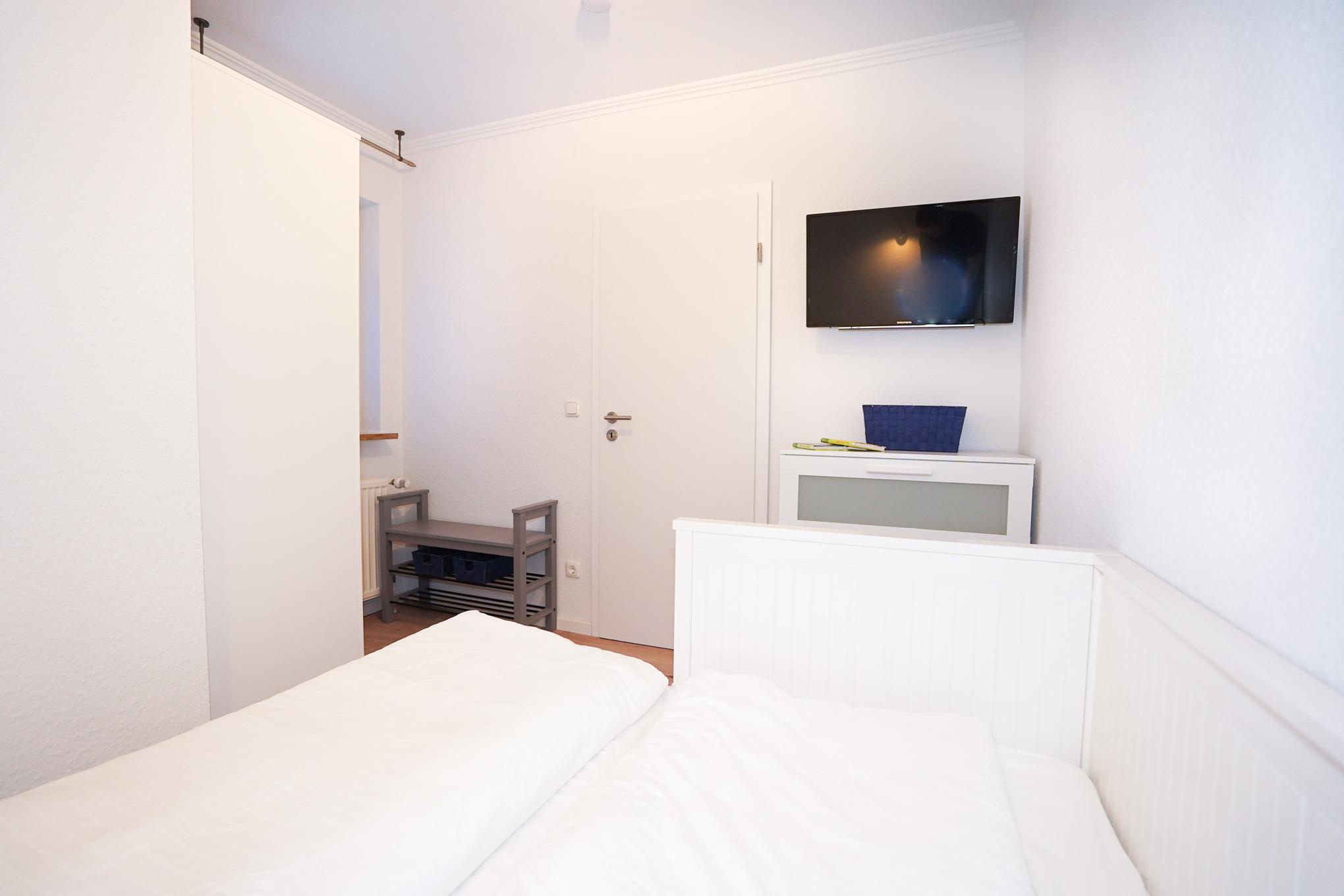 Eines der beiden behaglichen Schlafzimmer verfügt über ein großes Doppelbett mit hochwertigen 80x200 Matratzen. Das zweite Schlafzimmer ist mit einem Einzelbett ausgestattet, welches sich ausziehen lässt und somit bei Wunsch zu einem Doppelbett werden kann. Beide Schlafzimmer verfügen jeweils über einen zusätzlichen Fernseher.