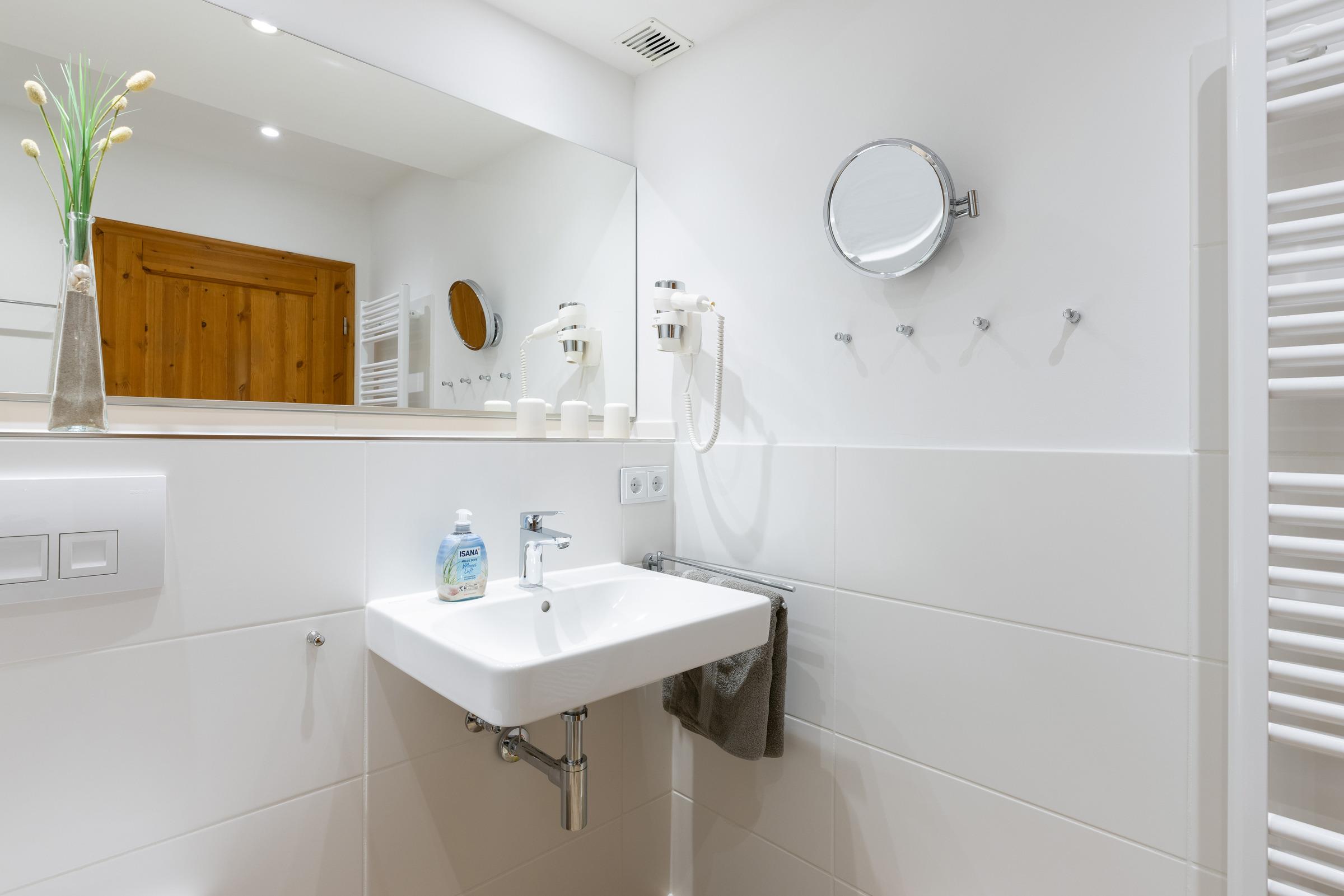 Das zweite Bad mit barrierefreier Bodendusche und WC ist modern gestaltet und vom Flur zu begehen.