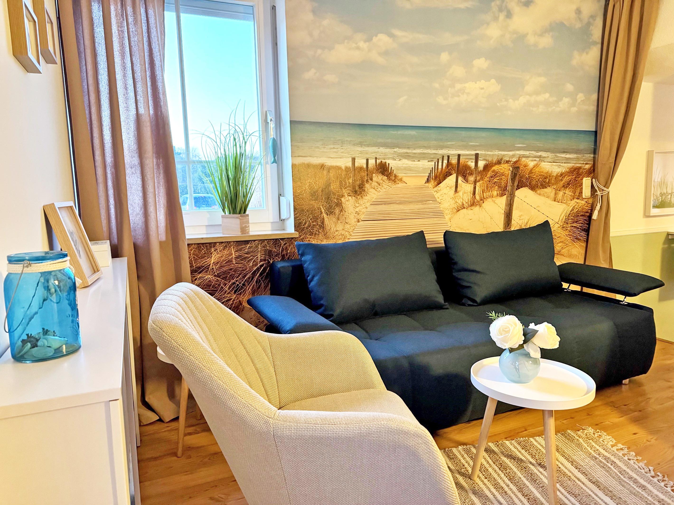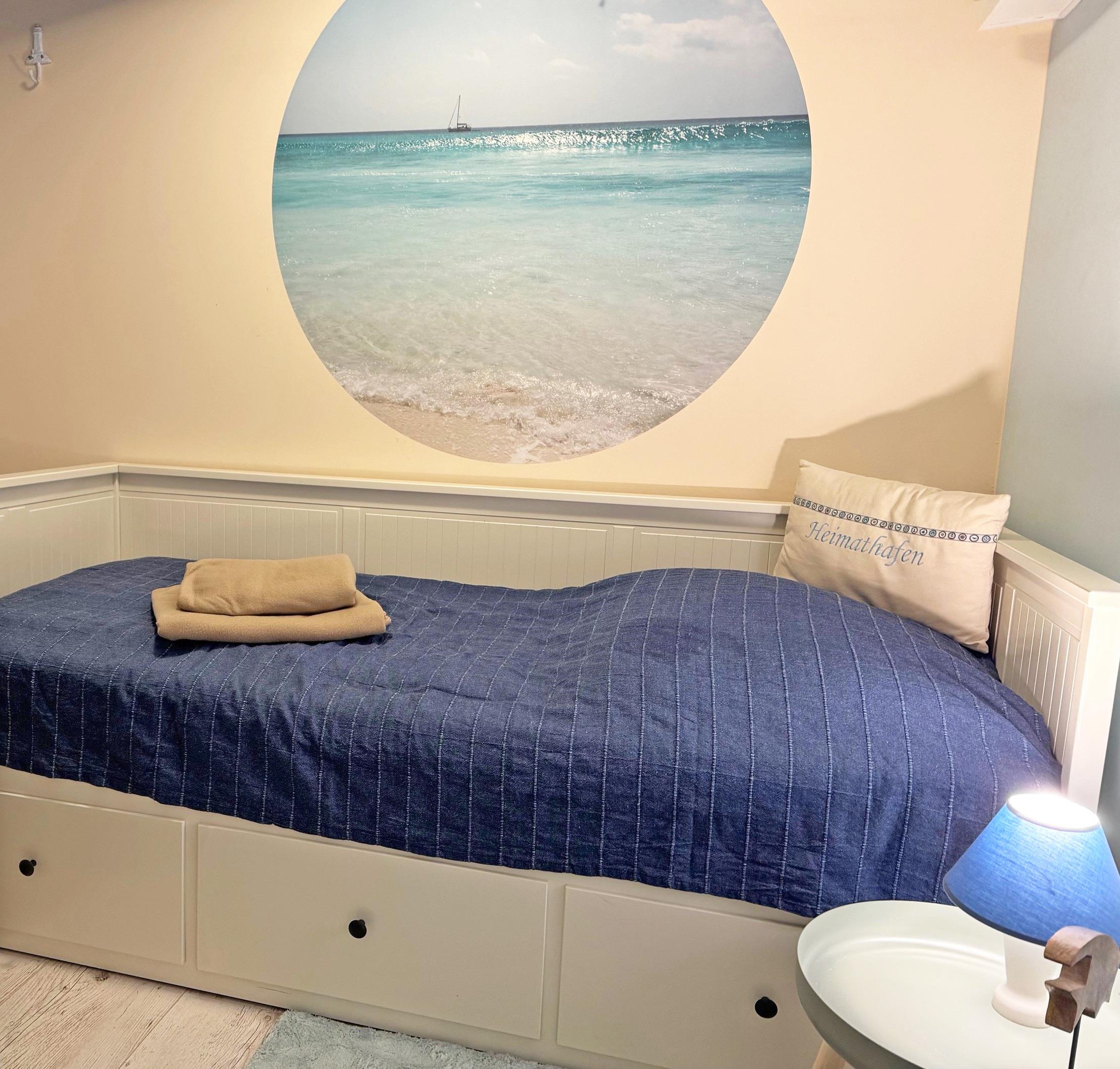 Das gemütliche Wohn-Schlafzimmer empfängt Sie mit einer gemütlichen Sitzecke und einer ausziehbaren Schlafcouch (1,60 x 2 m), die Schlafplatz für zwei Personen bietet. Ein Flachbild-TV und ein Radio mit CD-Player sorgen hier für Unterhaltung. Ein separater DVD-Player und Gesellschaftsspiele sind vorhanden.