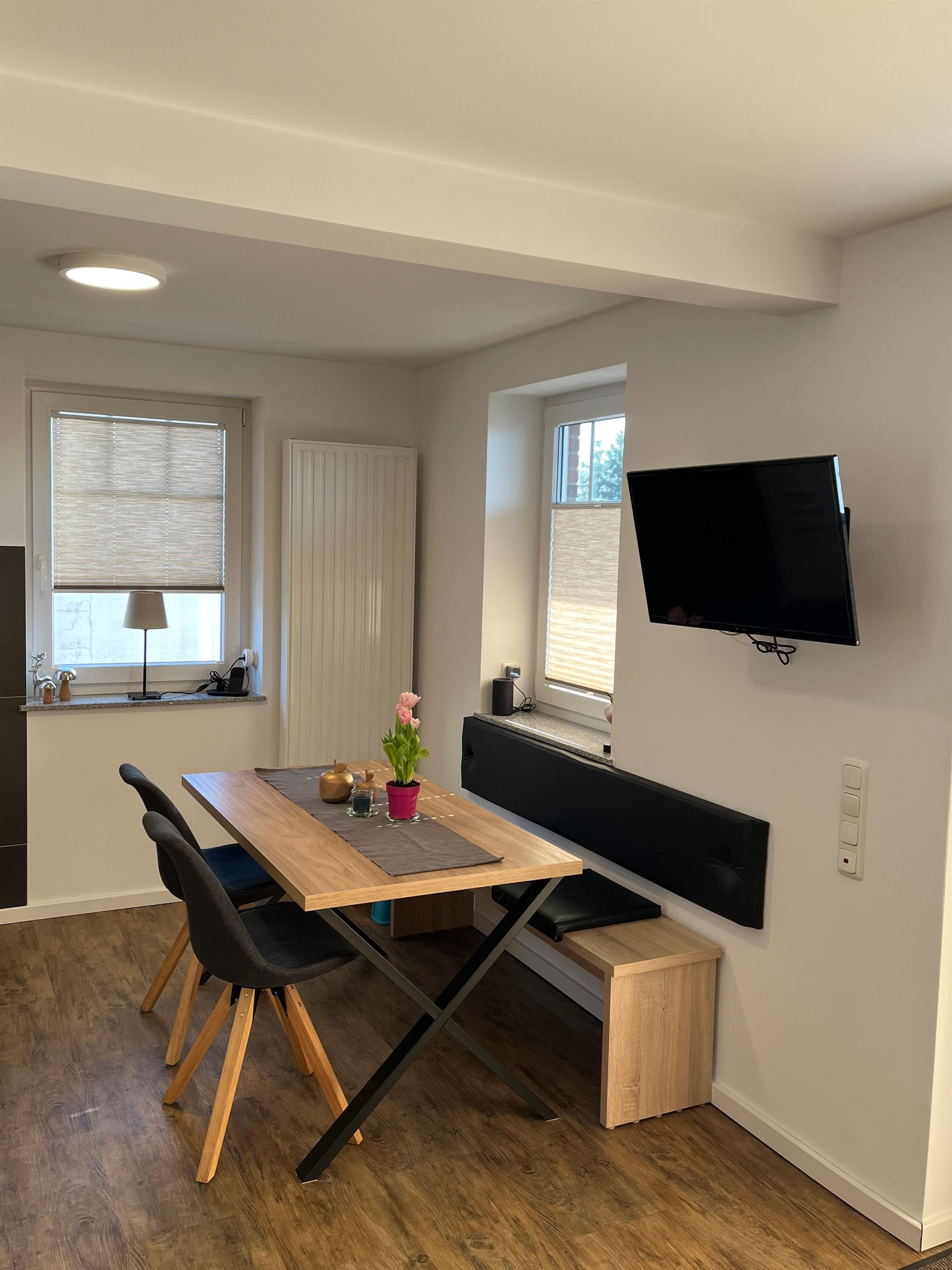 Im Wohnzimmer und in einem Schlafzimmer finden Sie einen Flachbildfernseher mit DVD-Player. Im Wohnzimmer steht Ihnen außerdem eine Kabellose-Ladestation für Ihr Handy sowie eine Alexa zur Verfügung.