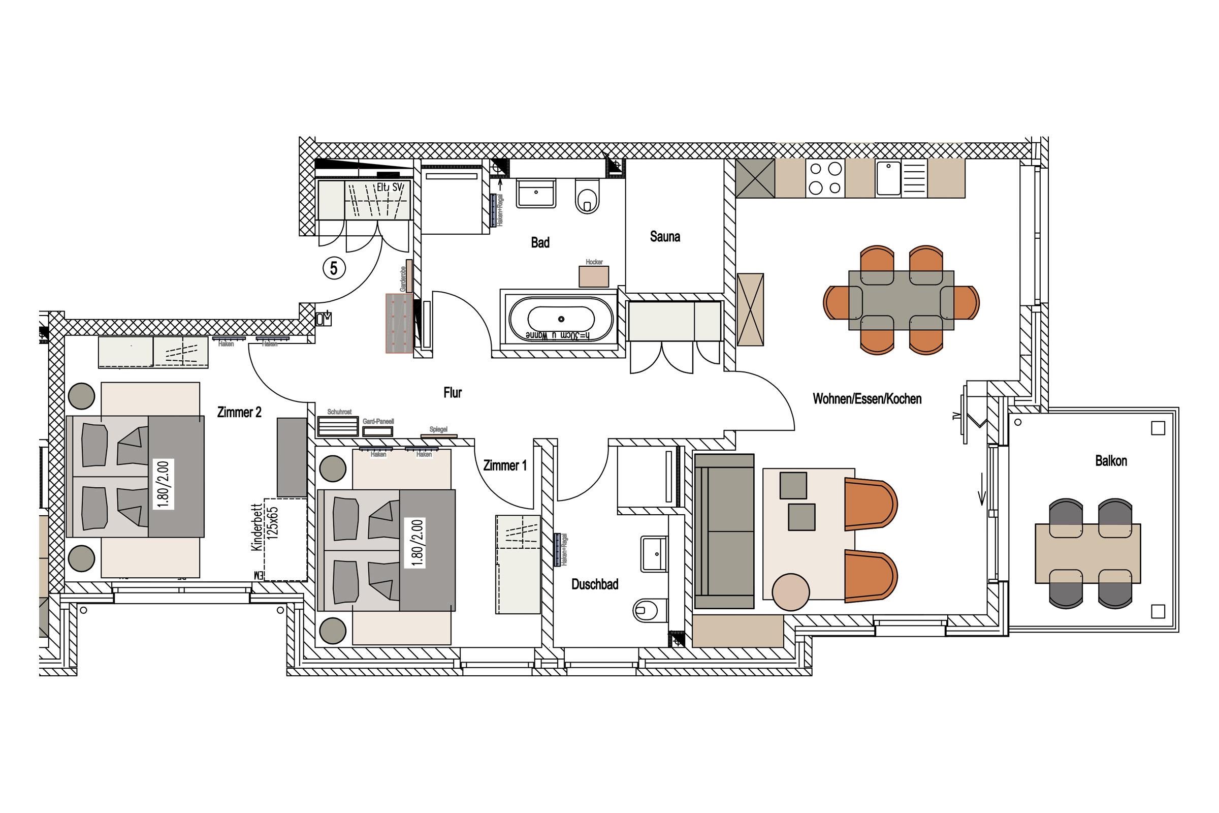 Sie ist für bis zu 4 Personen buchbar (2 Schlafzimmer mit Doppelbetten 180 x 200 cm) (der angegebene Preis bezieht sich immer auf 2 Erwachsene und 2 Kinder, extra Personen können ggf. auf Anfrage dazu gebucht werden) und verfügt über eine gehobene 5-Sterne-Ausstattung: 2 Badezimmer, 1 Sauna, 1 Whirlwanne sowie 1 Balkon (frontaler Meerblick). Die Küche ist komplett ausgestattet und bietet einen großen Esstisch für bis zu 6 Personen. Zudem gibt es einen Geschirrspüler, einen Kühlschrank inkl. Gefrierfach, eine Mikrowelle sowie einen Waschtrockner. Im Wohnbereich erwartet Sie ein 50-Zoll-Smart-TV sowie der Zugang zum Balkon. Der Balkon ist ebenfalls mit einem Esstisch ausgestattet und bietet einen herrlichen, frontalen Blick auf die Ostsee. Selbstverständlich bieten wir schnelles und kostenfreies WLAN sowie einen PKW-Stellplatz direkt am Haus. Auf den hauseigenen Parkplätzen stehen Ihnen E-Auto-Ladegeräte (Wallboxen) zur Verfügung (gegen Gebühr). Aufgrund der Allergiker gerechten Ausstattung sind Haustiere nicht erlaubt.