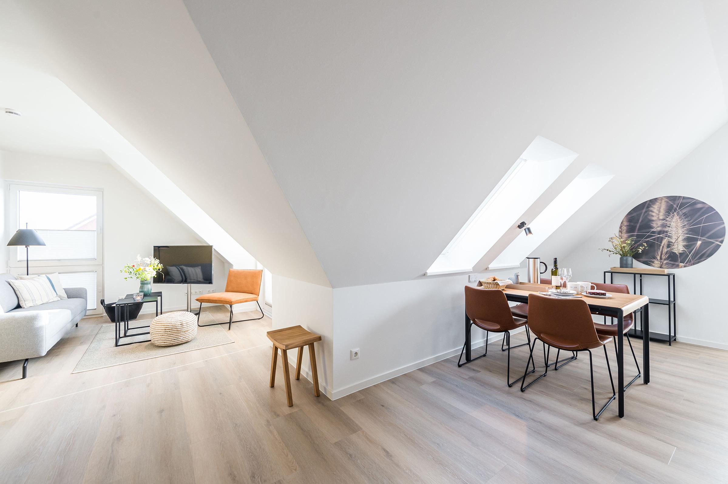 Die 56 m² große Dachgeschoss-Wohnung Peter's Lodge ? 8 steht nach der Fertigstellung erstmals zur Vermietung zur Verfügung. Die moderne Wohnung ist nur wenige Meter vom Strand und der Ostsee entfernt (100 m Luftlinie).