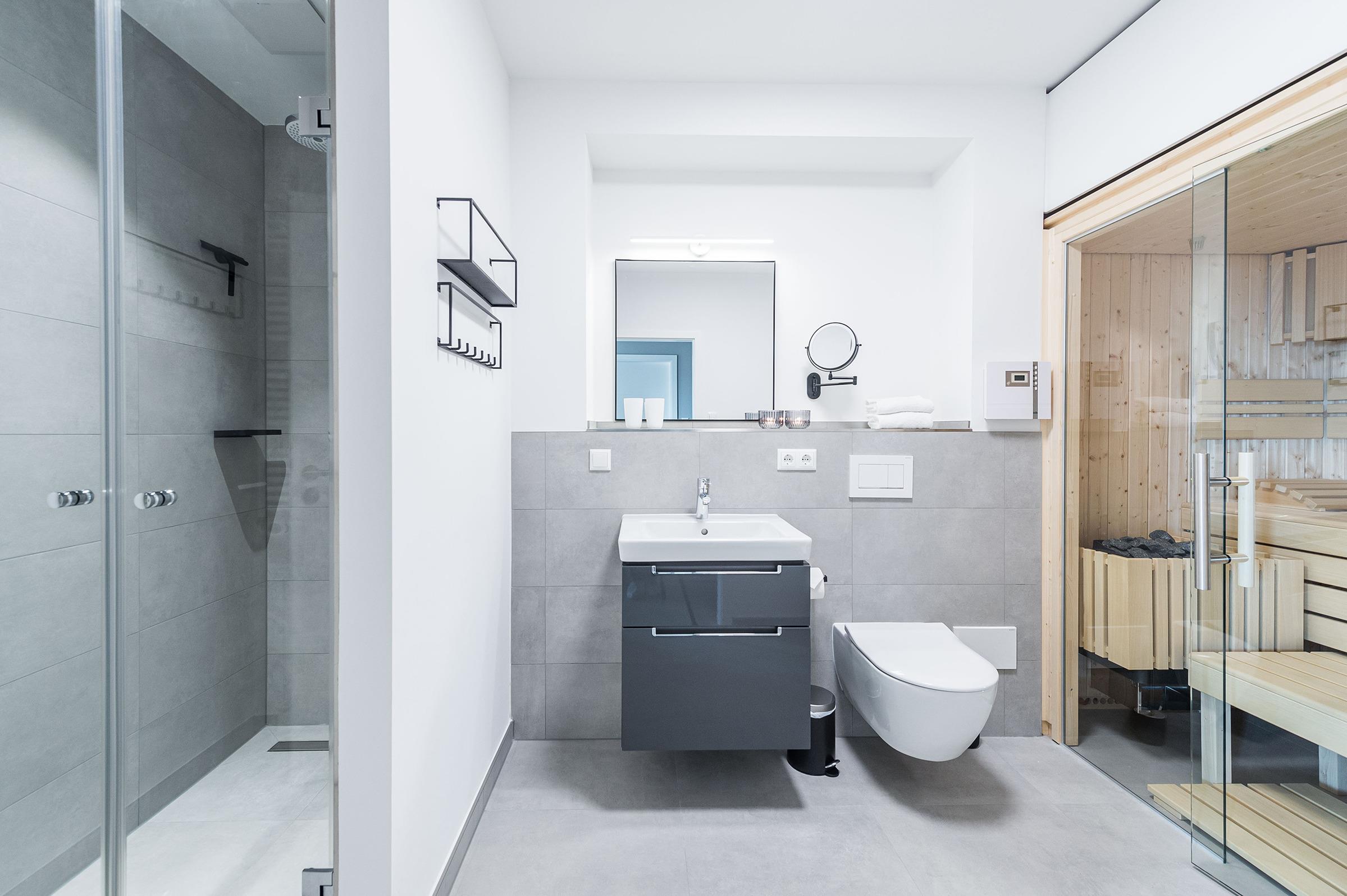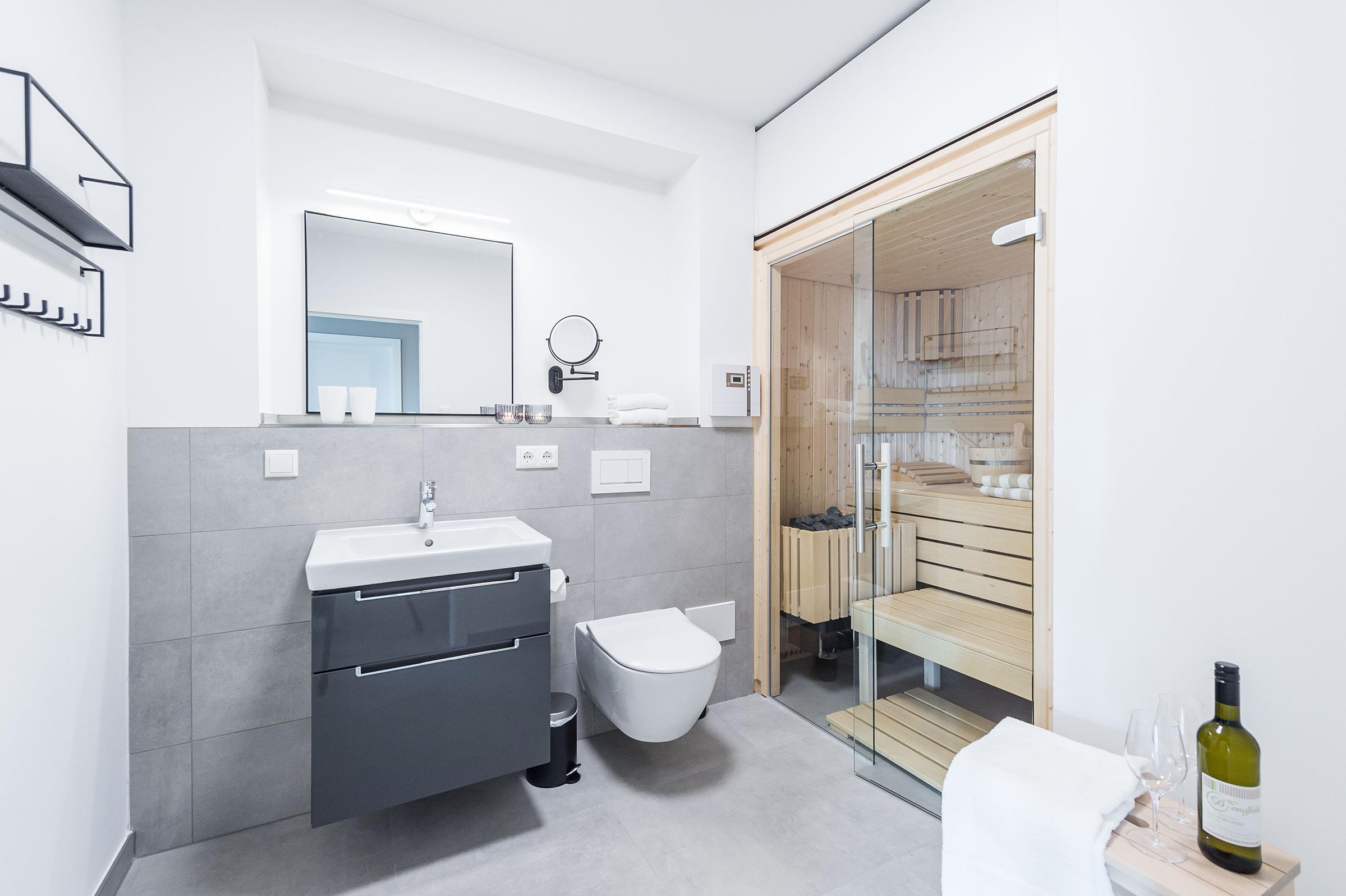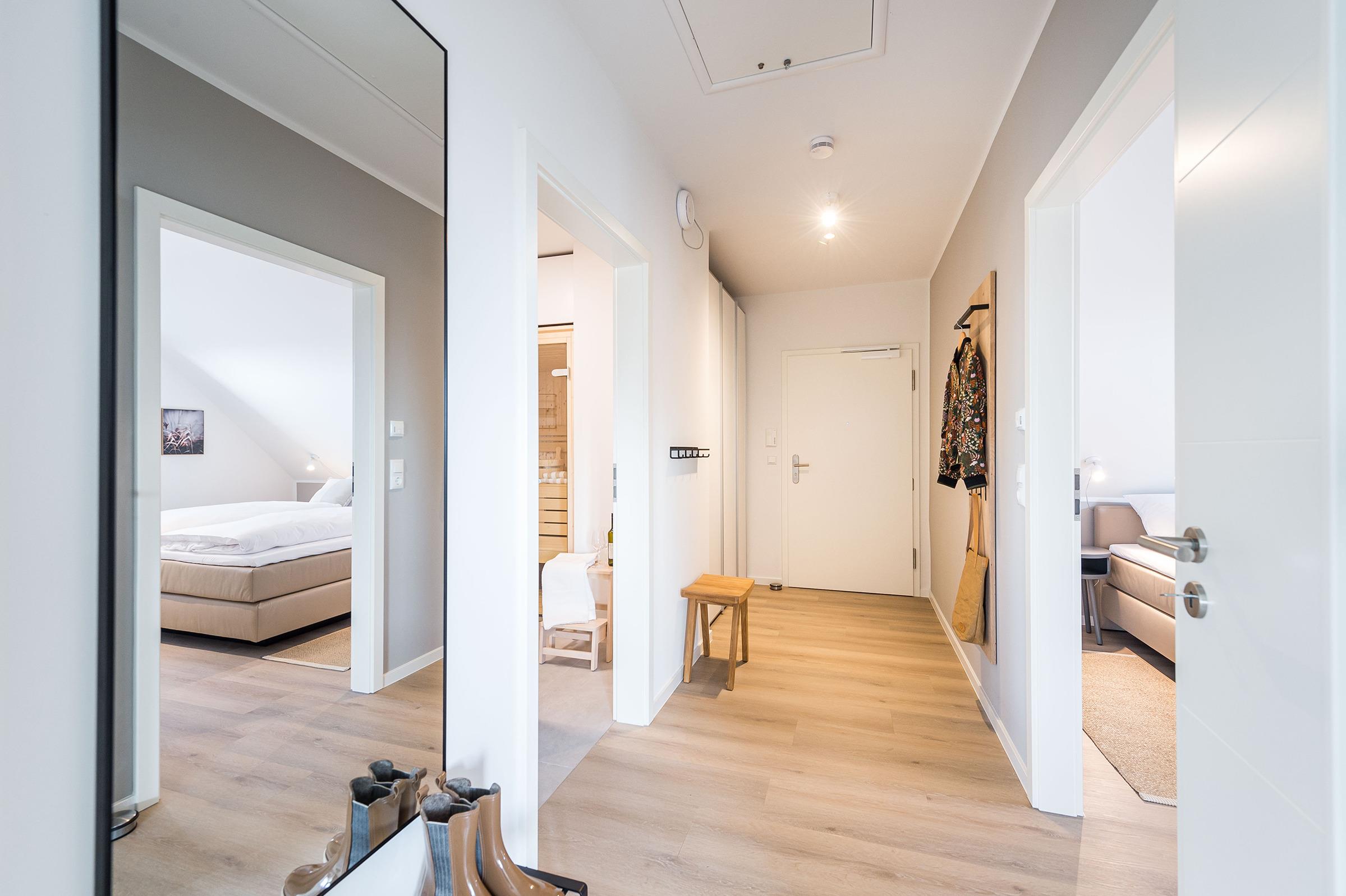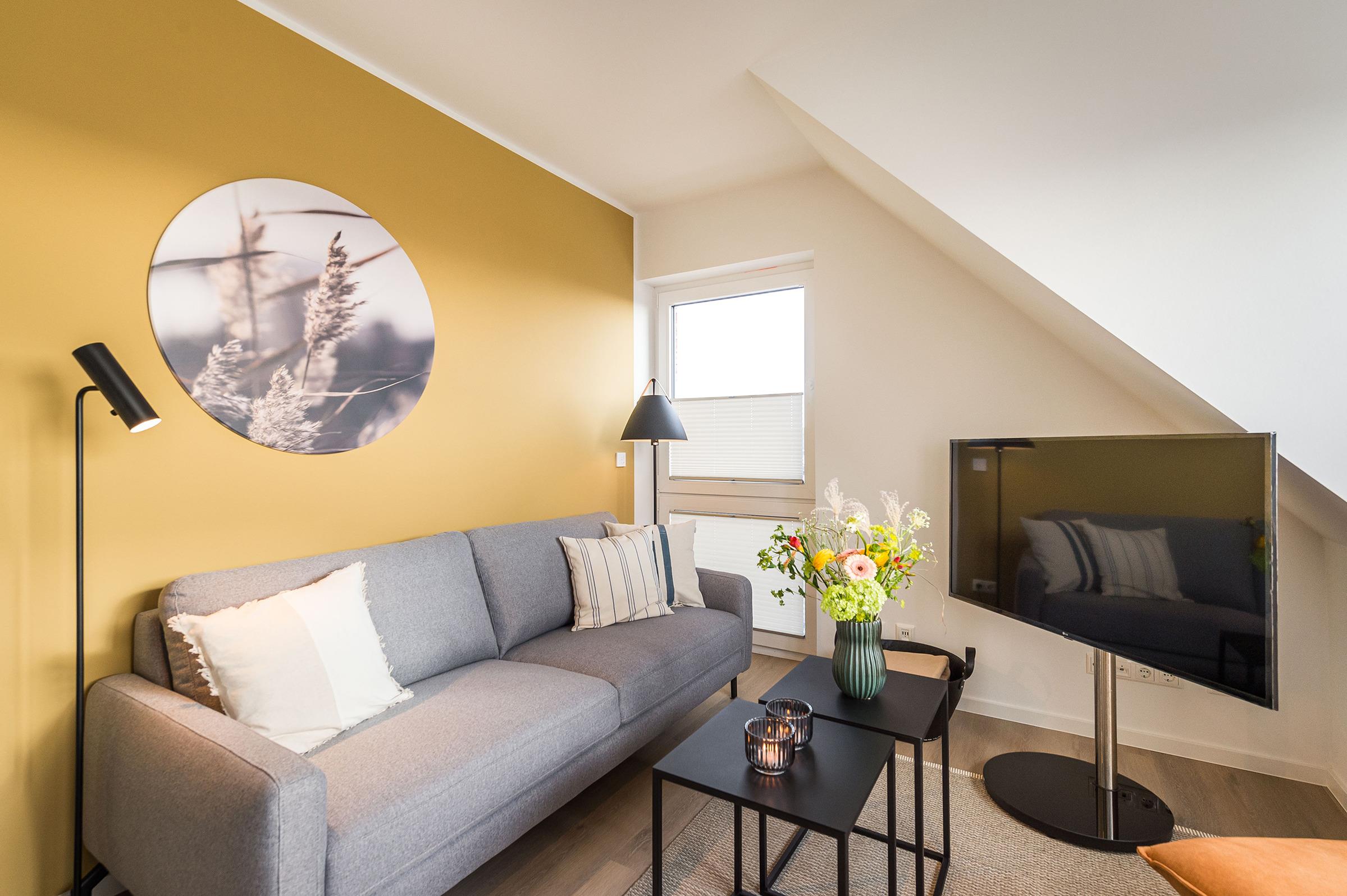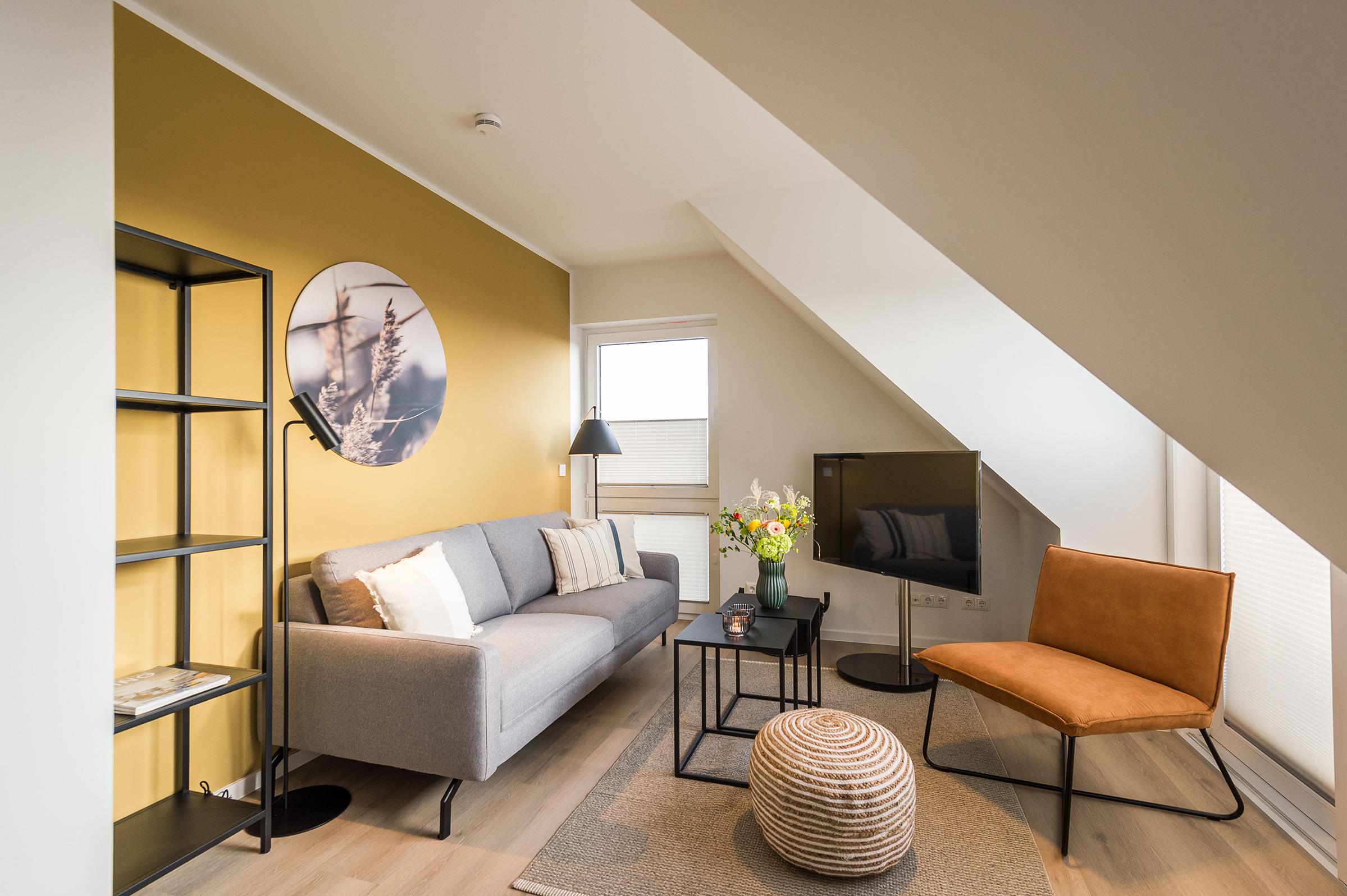 Moderne Dachgeschoss-Ferienwohnung in Grömitz mit Sauna und Meerblick, nur 100 m vom Strand entfernt.