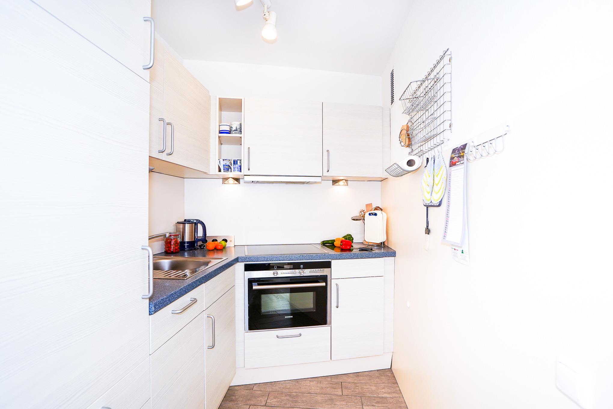 Die halb offen gestaltete neue Küche bietet Ihnen alles, was Sie in Ihrem Urlaub brauchen. Es stehen Ihnen ein Kühlschrank mit Gefrierfach, Backofen mit Mikrowelle, Spülmaschine und weitere kleine Küchenhelfer wie Kaffeemaschine, Wasserkocher und Toaster zur Verfügung.
