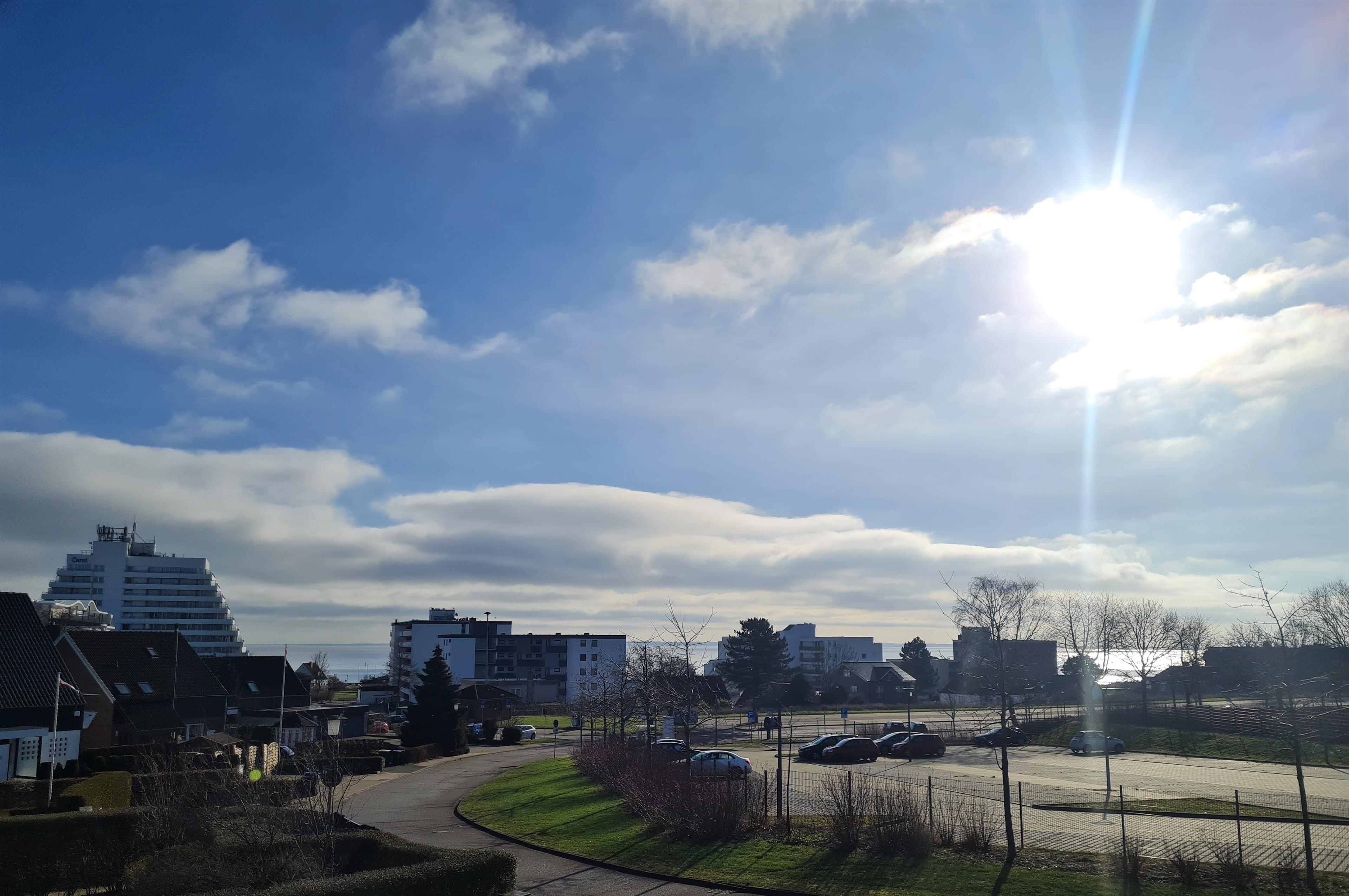 Von dem großen Balkon aus hat man einen Ausblick über Grömitz und die Lübecker Bucht.