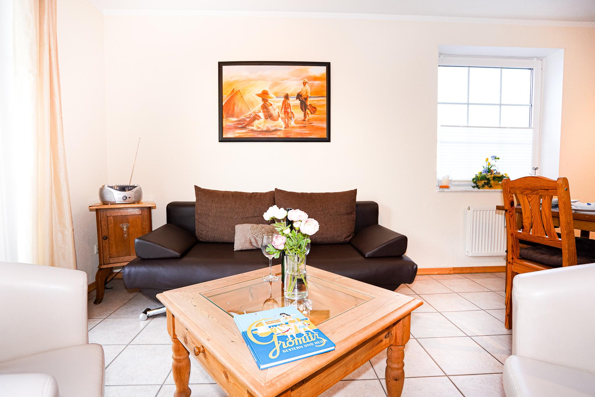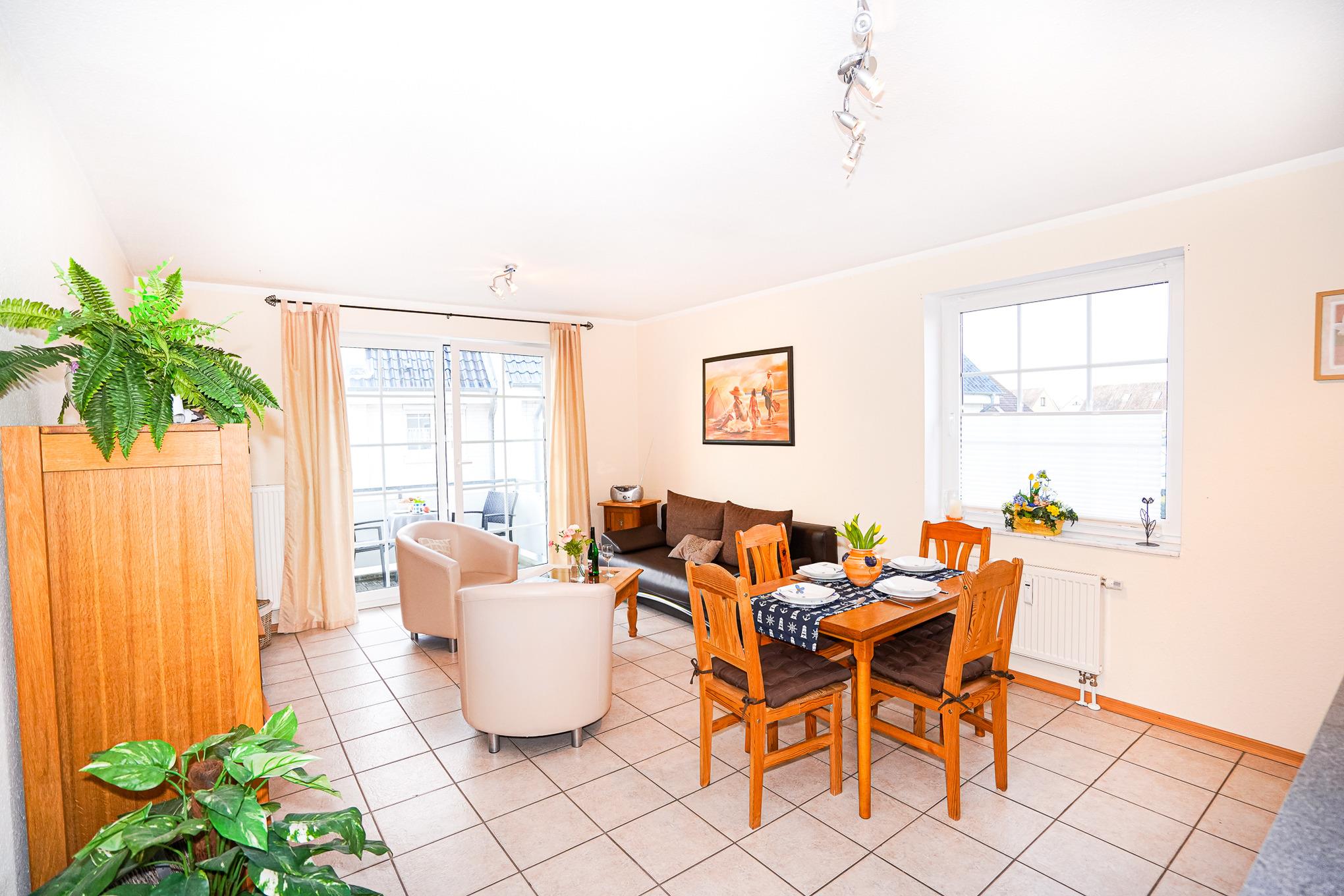 Helle und gemütliche Ferienwohnung in Grömitz, nur 300 m vom Strand und der Kurpromenade entfernt, ideal für einen erholsamen Urlaub.
