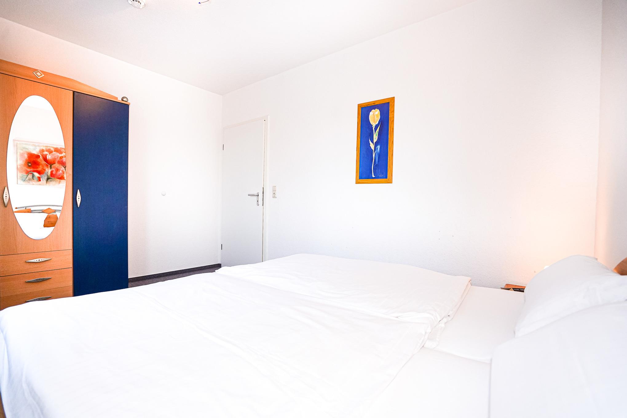Das erste Schlafzimmer verfügt über ein Doppelbett (180 x 200) und einen großen Kleiderschrank. Im zweiten Schlafzimmer finden Sie ein Doppelbett (140 x 200) und einen weiteren Kleiderschrank vor.