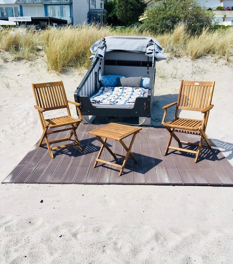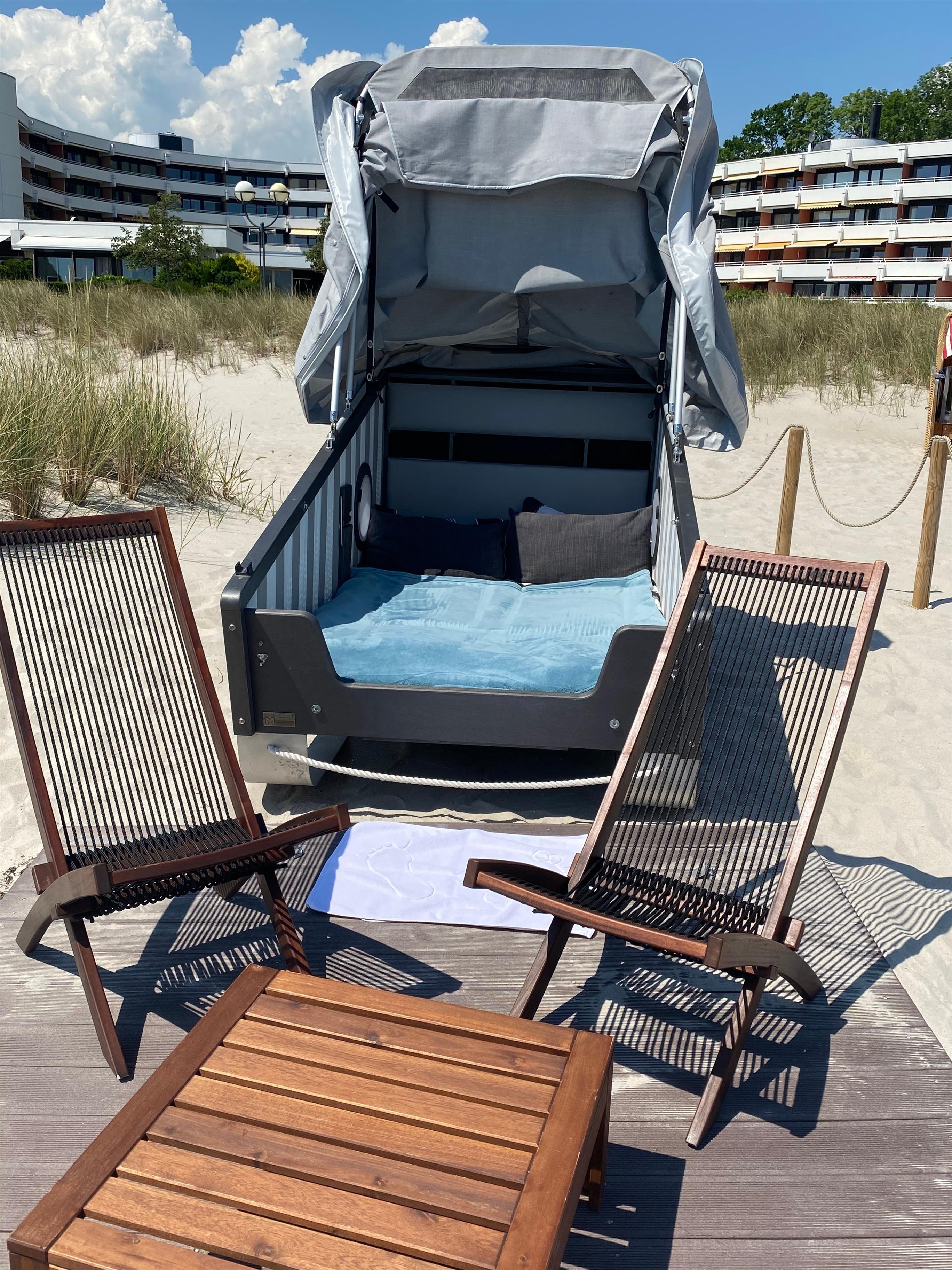 Romantischer Schlafstrandkorb in Grömitz mit Ostseeblick und direktem Zugang zur Promenade.