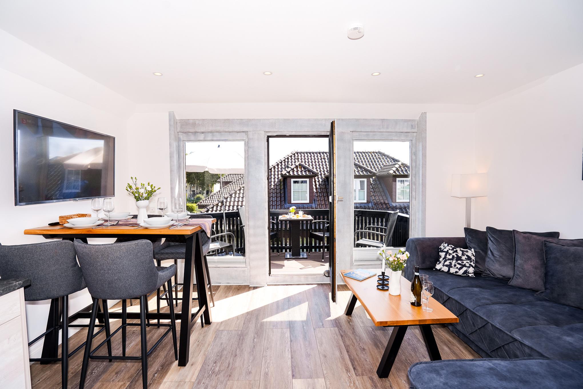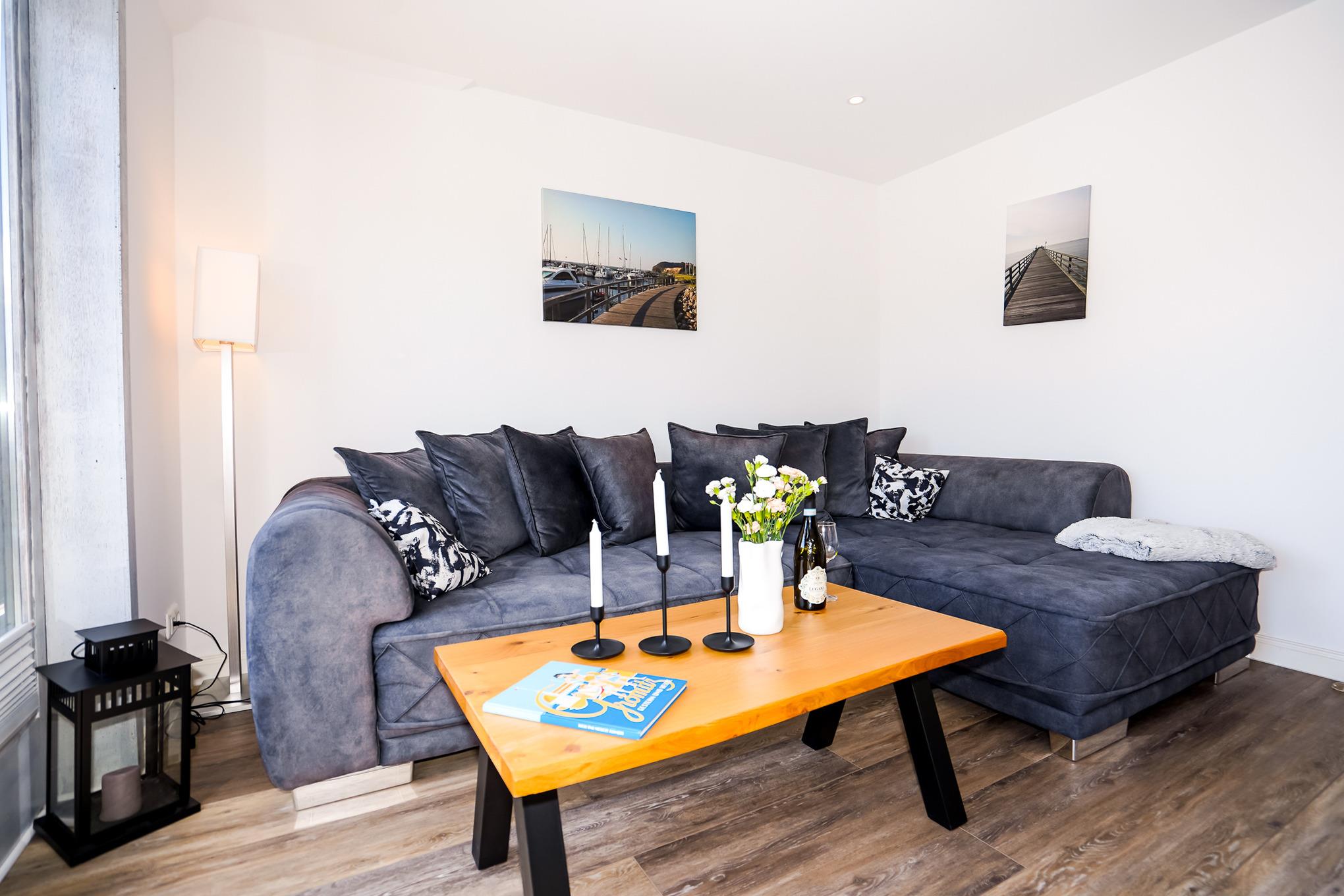 Moderne Ferienwohnung in Grömitz direkt am Yachthafen mit Balkon, WLAN und Parkplatz.