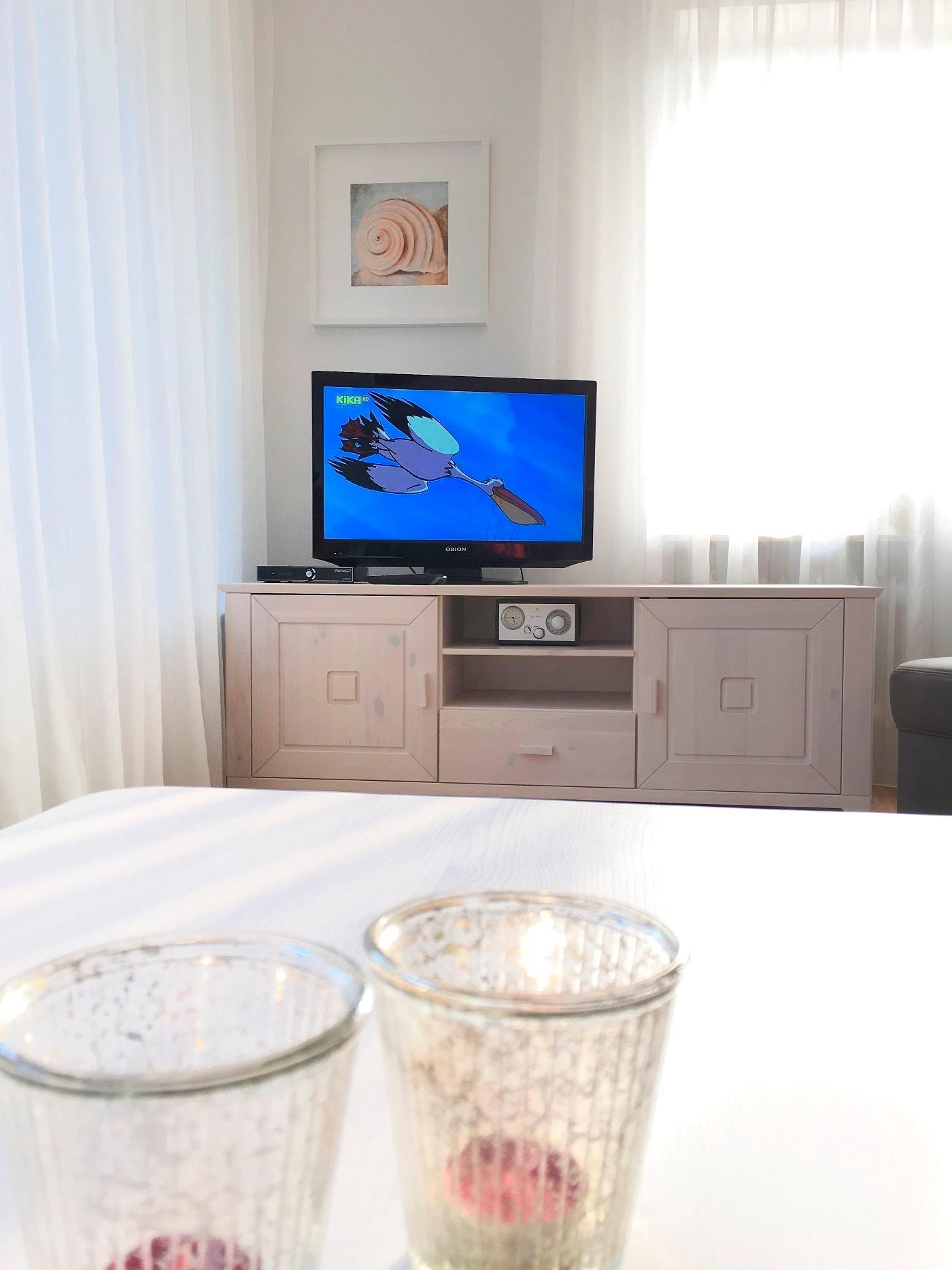 Das Wohnzimmer mit Essecke ist ein Ort für Gemütlichkeit und gesellige Stunden. Genießen Sie in dem lichtdurchfluteten Raum oder auf dem Balkon (südwest) Ihr Frühstück bevor Sie in den Tag starten. Die bequeme Sitzecke, Sessel und Flachbildschirm laden zum Faulenzen ein, während nebenan in der separaten Küche das Abendessen zubereitet wird.