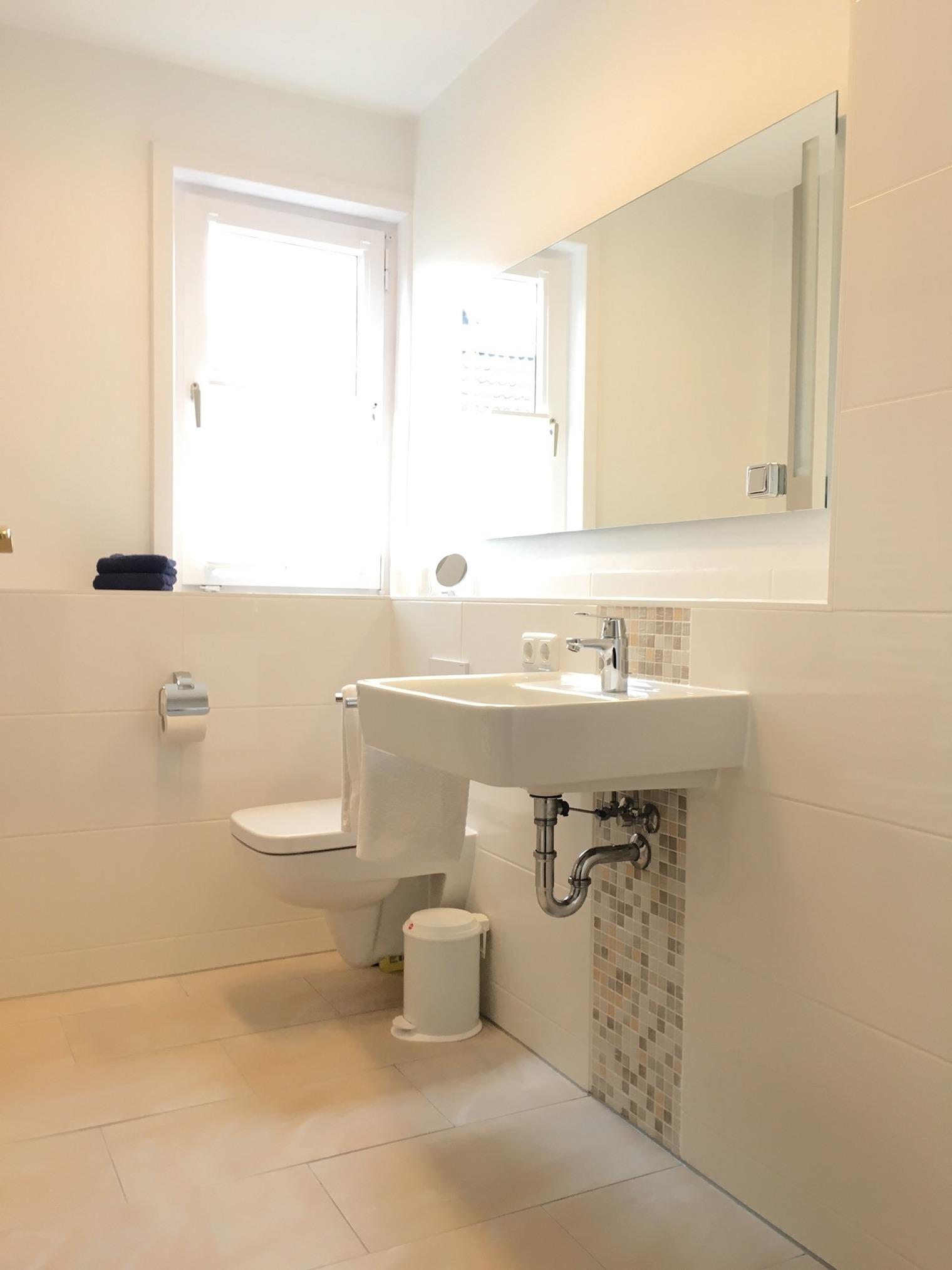 Vom Flur aus gelangen Sie direkt in das Tageslicht-Duschbad.