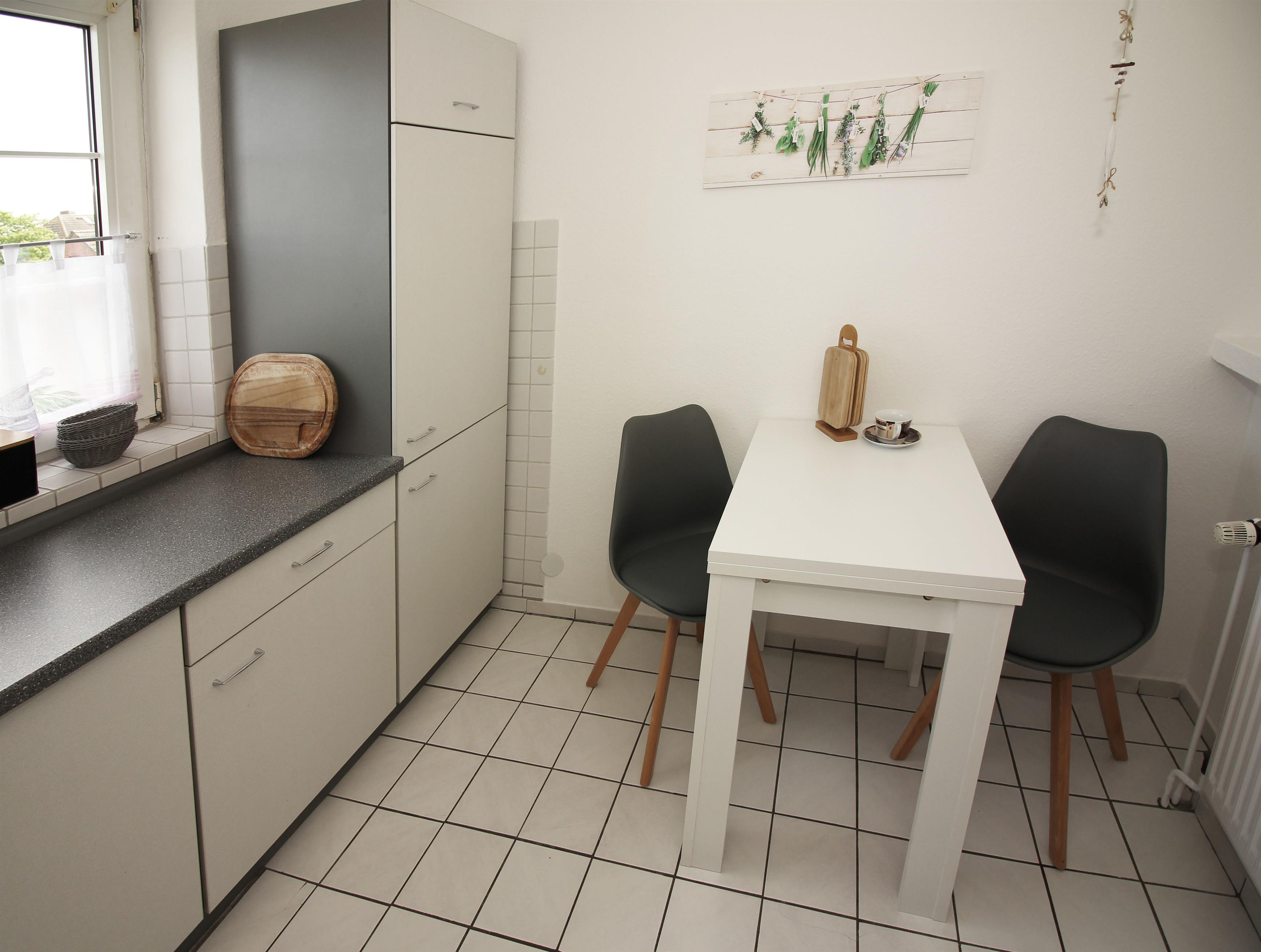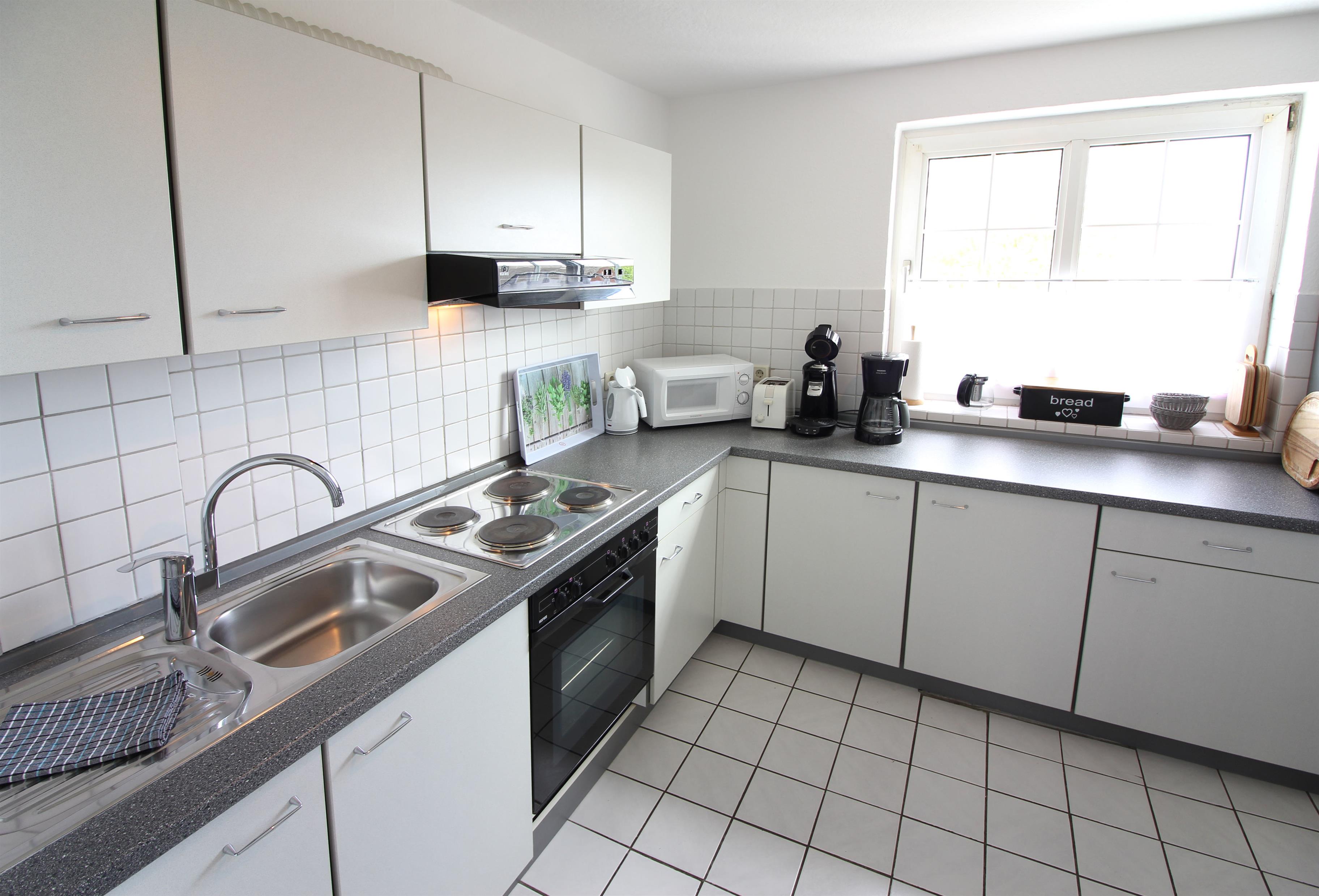 In der komplett ausgestatteten Küche mit Ceranfeld, Backofen und vielen praktischen Details können Sie nach Herzenslust kochen.