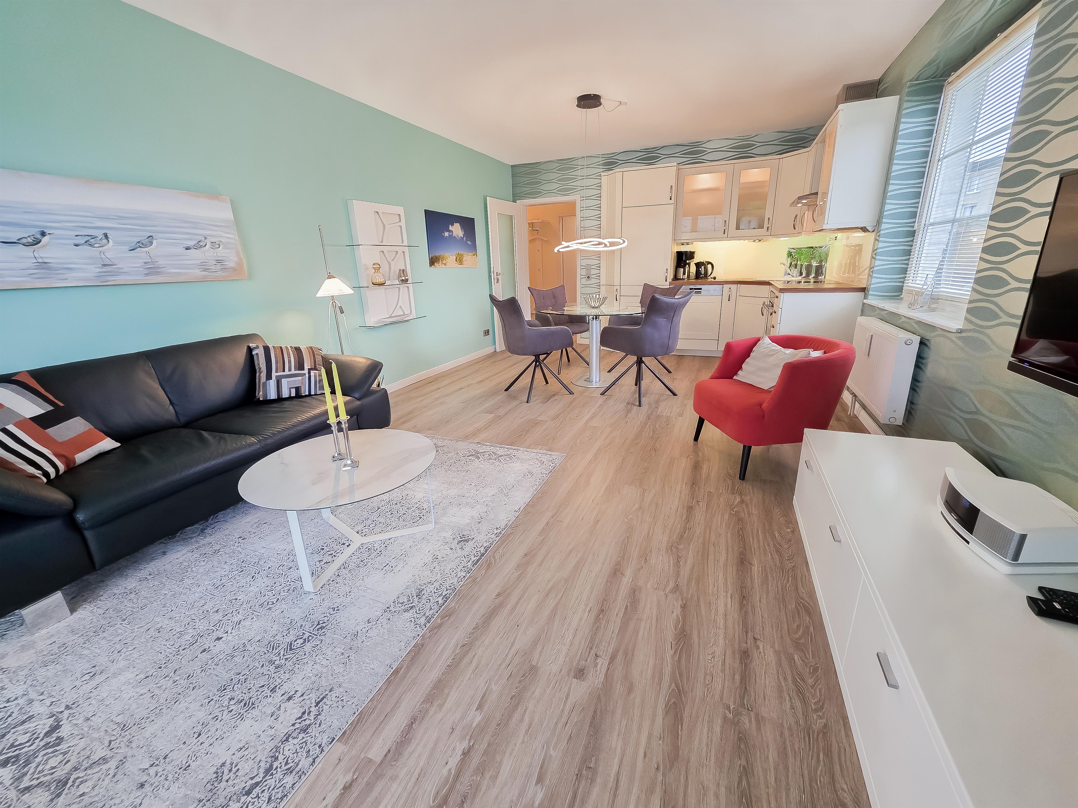 Geschmackvoll und gemütlich eingerichtete 2-Zimmer-Erdgeschosswohnung mit Terrasse, für max. 3 Erwachsene und 1 Kleinkind. Hier sind Sie in ca. 3 Minuten zu Fuß am Strand.