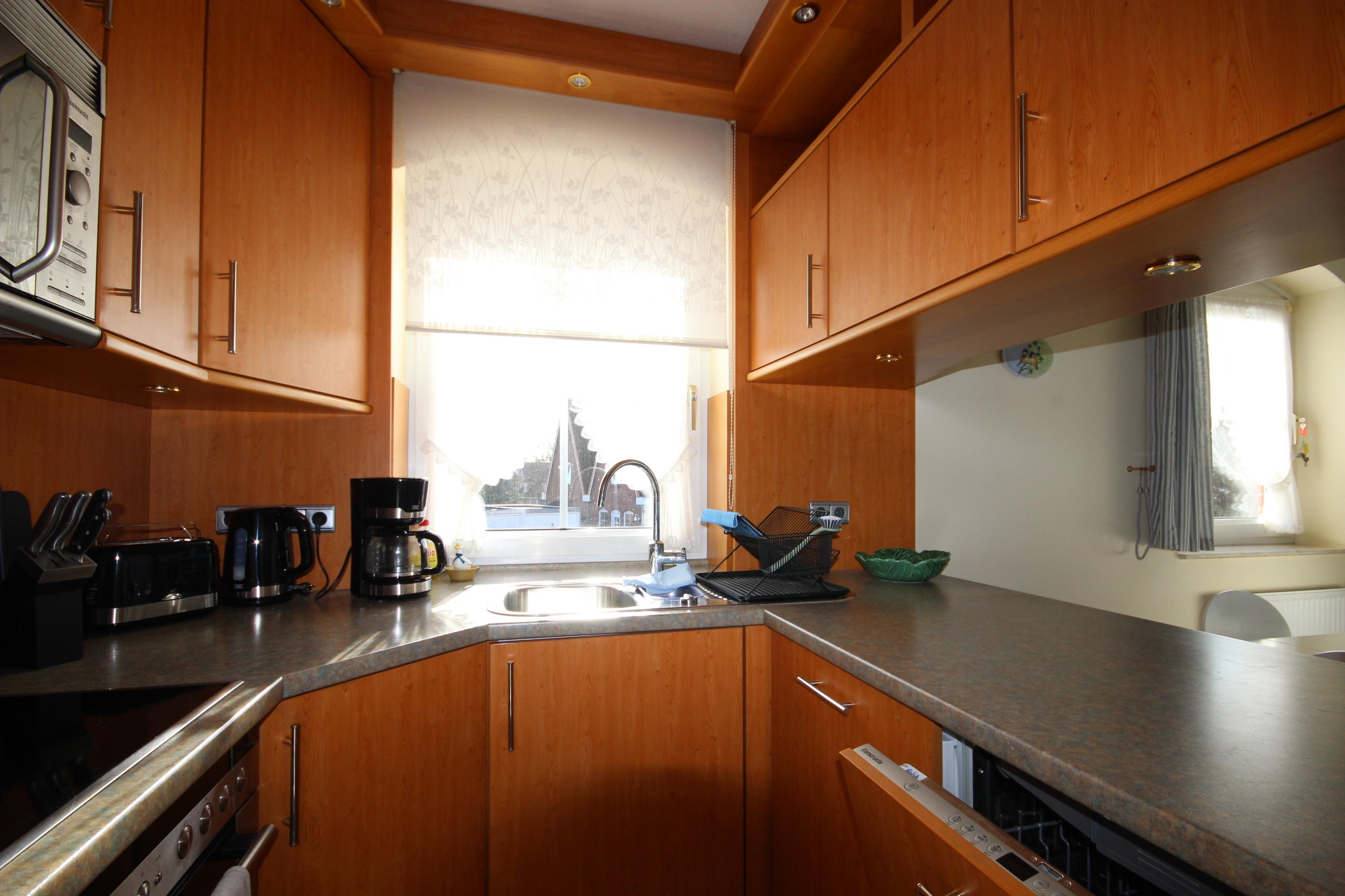 Die Küche ist mit E-Herd-Cerankochfeld und Ofen, Geschirrspüler, Kühlschrank, Mikrowelle & den üblichen Küchengeräten gut ausgestattet.