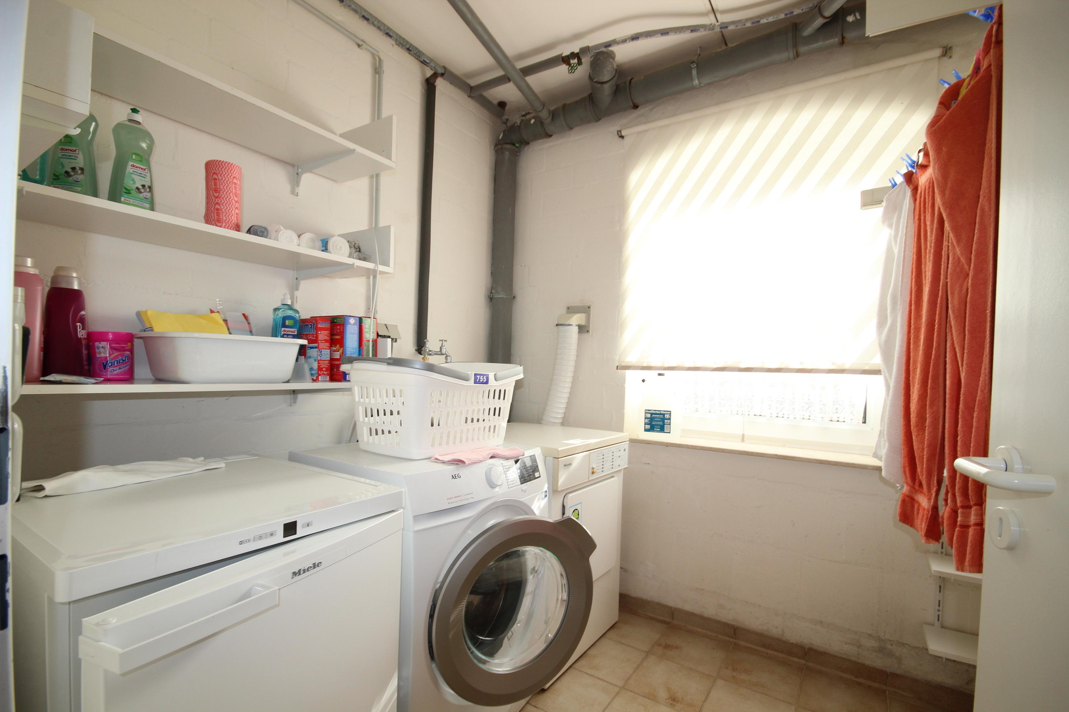 Im Keller befindet sich eine Waschmaschine und ein Trockner.