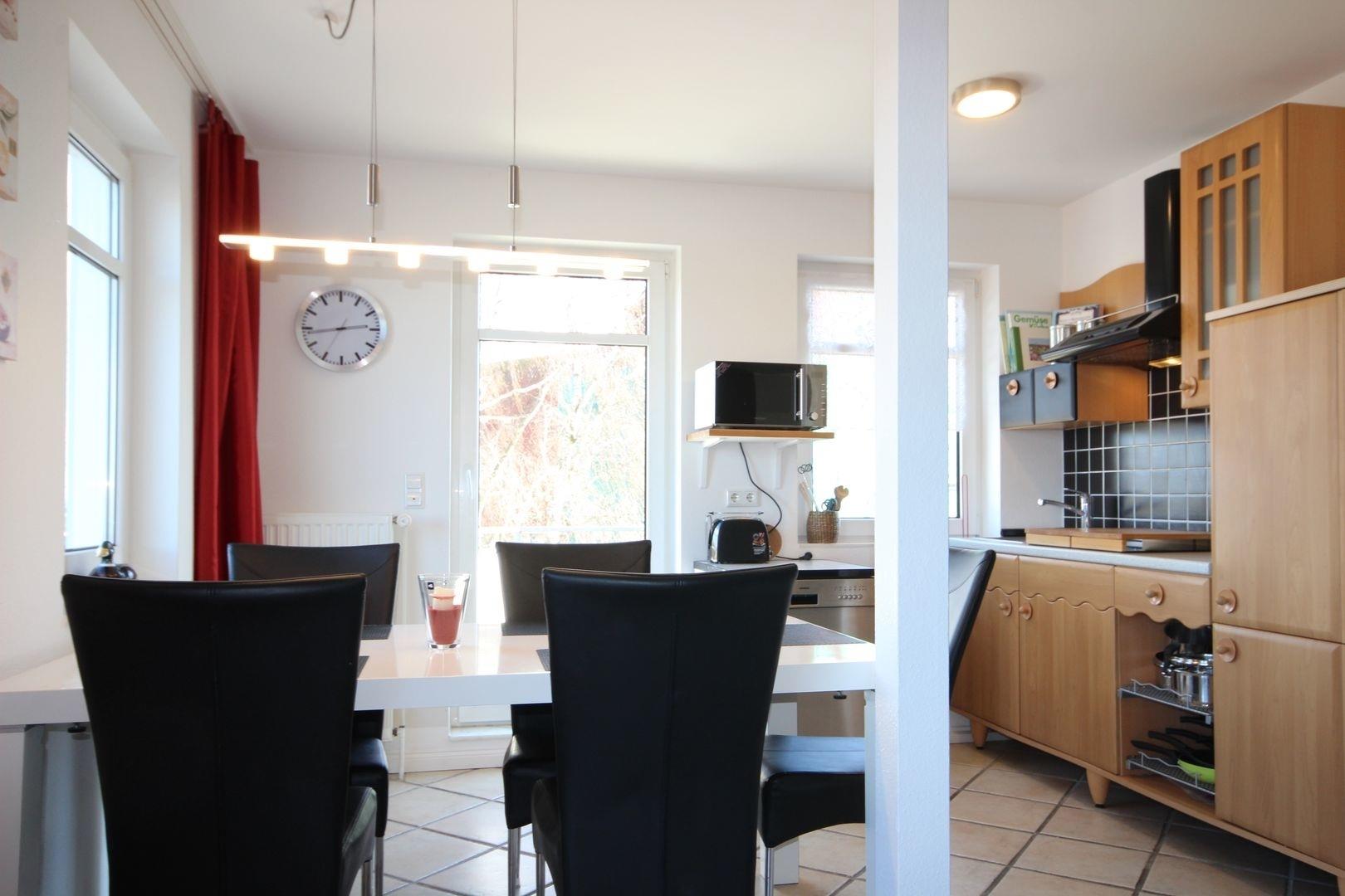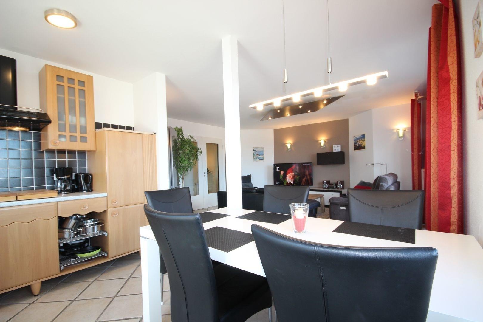 Die offene Küche ist mit Mikrowelle- Grill- und Backfunktion, Geschirrspüler, 4 Platten- Herd, Kühlschrank & alle üblichen Küchengeräte sehr gut ausgestattet.