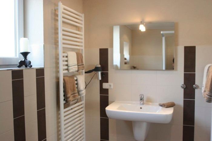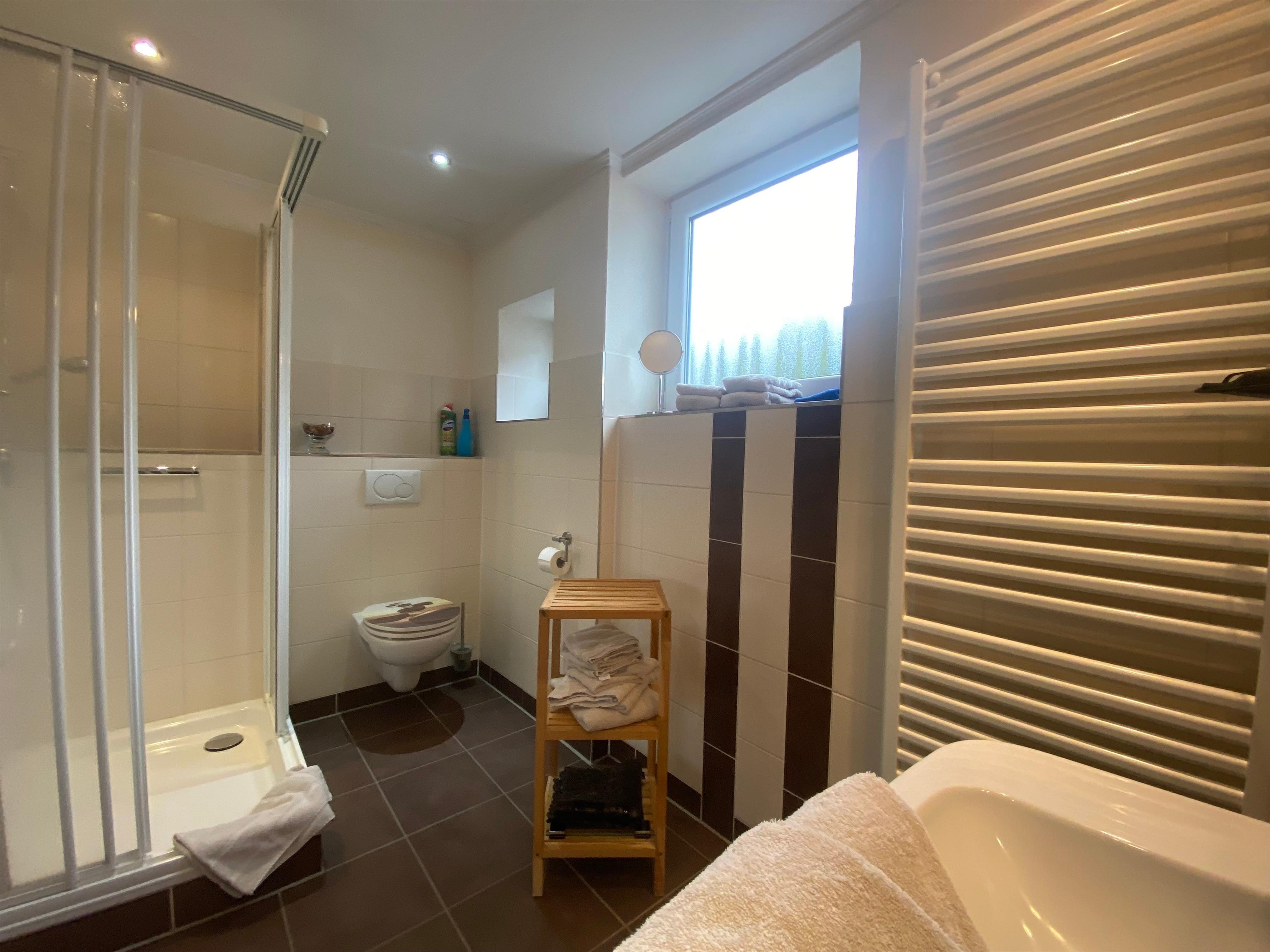 1 großes kombiniertes Bad/WC mit Föhn, Personenwaage und Tageslicht