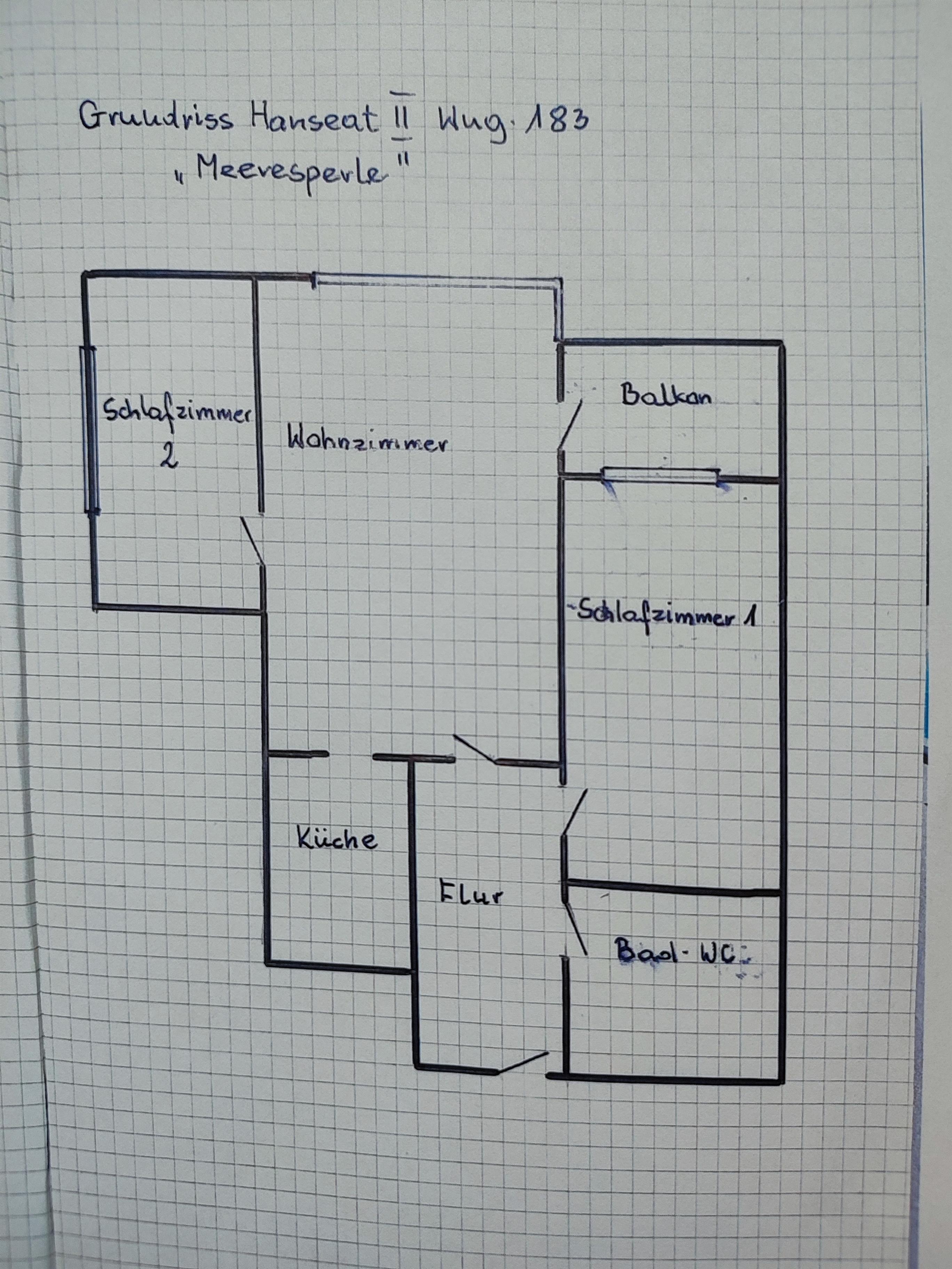 Die "Meeresperle" bietet Platz für max. vier Personen (zwei Erwachsene und zwei Kinder) und liegt in der 6. Etage - ein Fahrstuhl ist bis zur 5. Etage vorhanden. Die Wohnfläche der ca. 54 m² großen Ferienunterkunft verteilt sich auf ein helles Wohn-/ Esszimmer mit Seeblick, zwei separate Schlafzimmer sowie die kleine Küche und das Badezimmer. Das Wohnzimmer ist mit einer gemütlichen Sitzecke sowie einem Essplatz versehen, von hier aus haben Sie Zugang zur Ost-Loggia, diese lädt zum gemütlichen Verweilen ein. Die neue und moderne Einbauküche ist u.a. mit Spülmaschine, Mikrowelle mit Backfunktion, 4 Plattenherd, Kaffeemaschine, Kaffeeautomat und weiteren Küchengeräten ausgestattet. Ein Schlafzimmer geht ebenfalls vom Wohnzimmer ab und ist mit einer hochwertigen Doppelschlafcouch (mit Lattenrost, 2 m x1,60 m breit) sowie einem Regal und einer großen Kleiderschrankwand versehen. Das andere Schlafzimmer verfügt über bequeme Boxspringbetten (je 0,90m x 2,00m) und eine große Kleiderschrankwand ist ebenfalls vorhanden. Das Badezimmer ist mit einer großen offenen Dusche versehen (eine Möglichkeit zum Sitzen ist vorhanden), eine Handtuchheizung befindet sich hier ebenfalls.