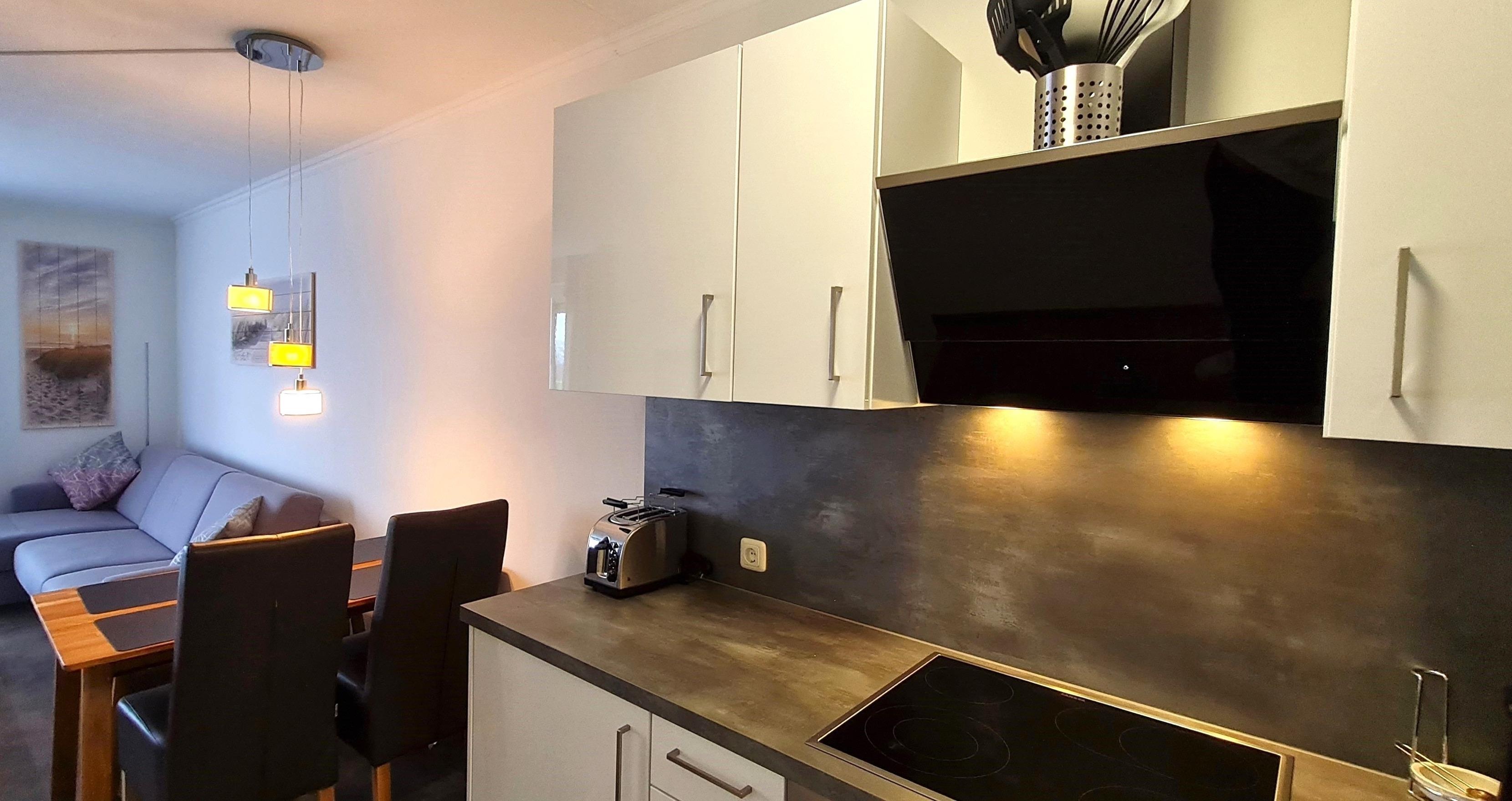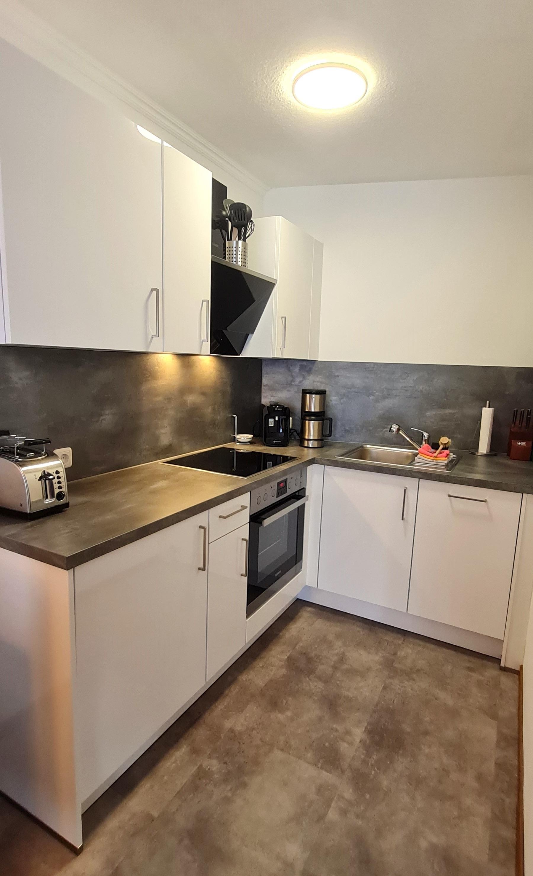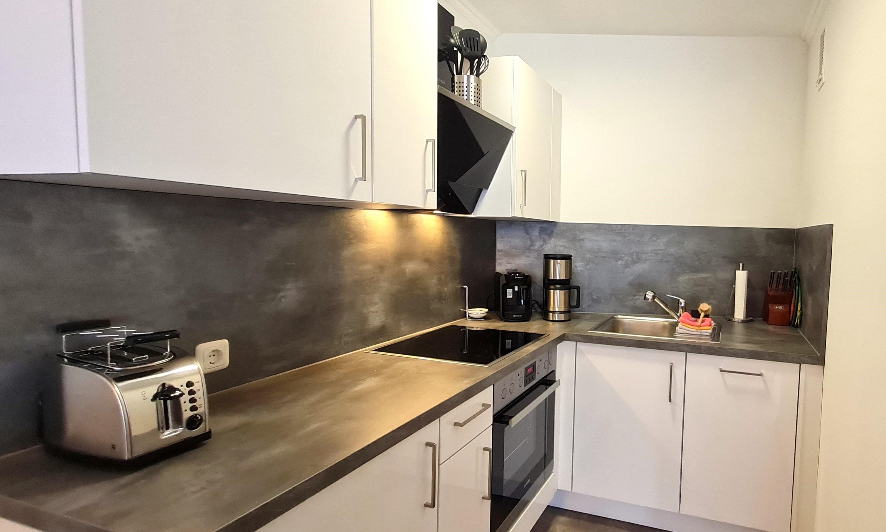 Unsere Küche ist mit allem ausgestattet, was Sie für einen erholsamen Urlaub benötigen: Herd mit Kochfeld, Backofen, Spülmaschine, Kühlschrank mit Gefrierfach, Toaster, Wasserkocher und Kaffeemaschine. Geschirrtücher sind bereits im Preis inbegriffen.
