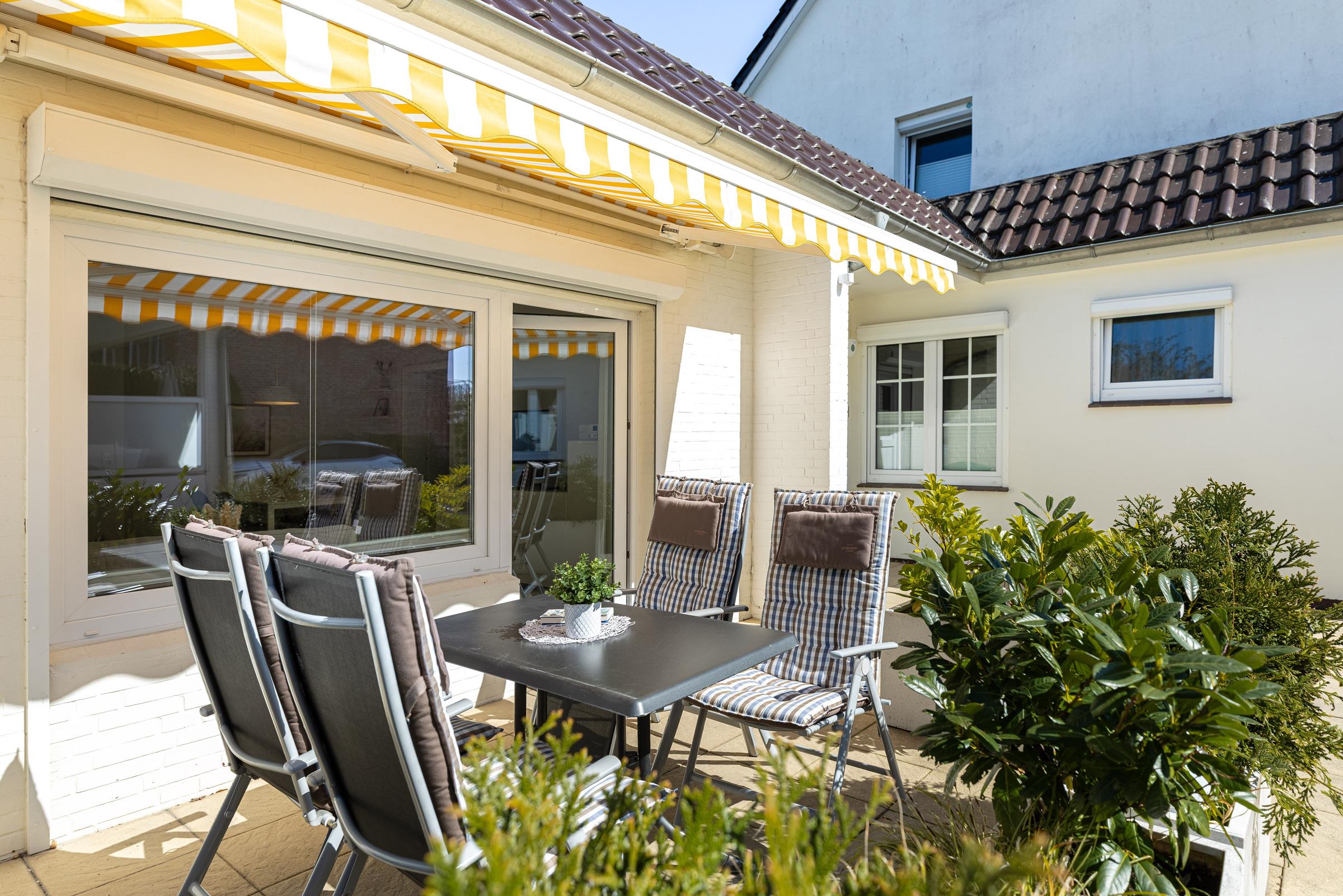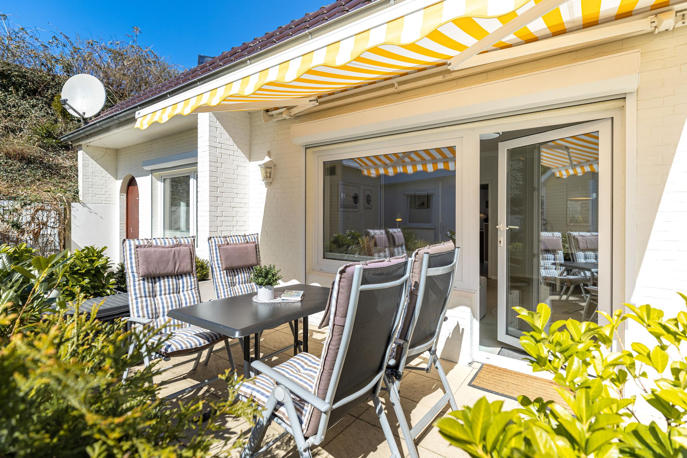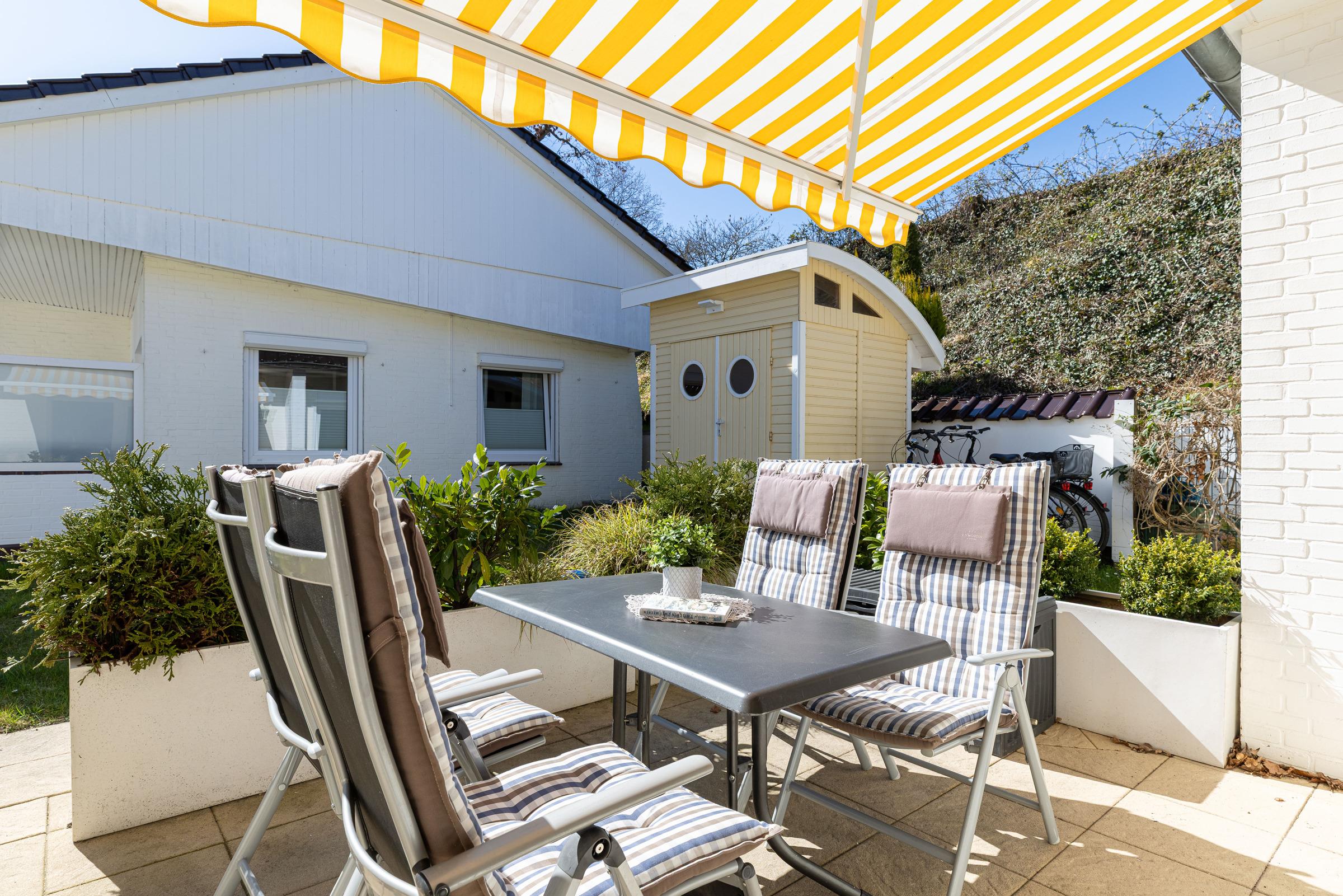 Komfortabler Bungalow in Grömitz, nur 70 m vom Ostsee-Strand, mit zwei Schlafzimmern und sonniger Terrasse.