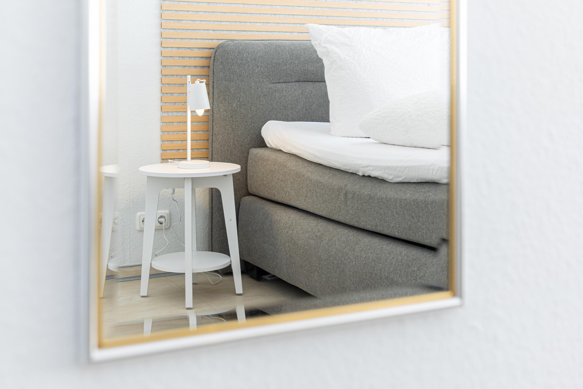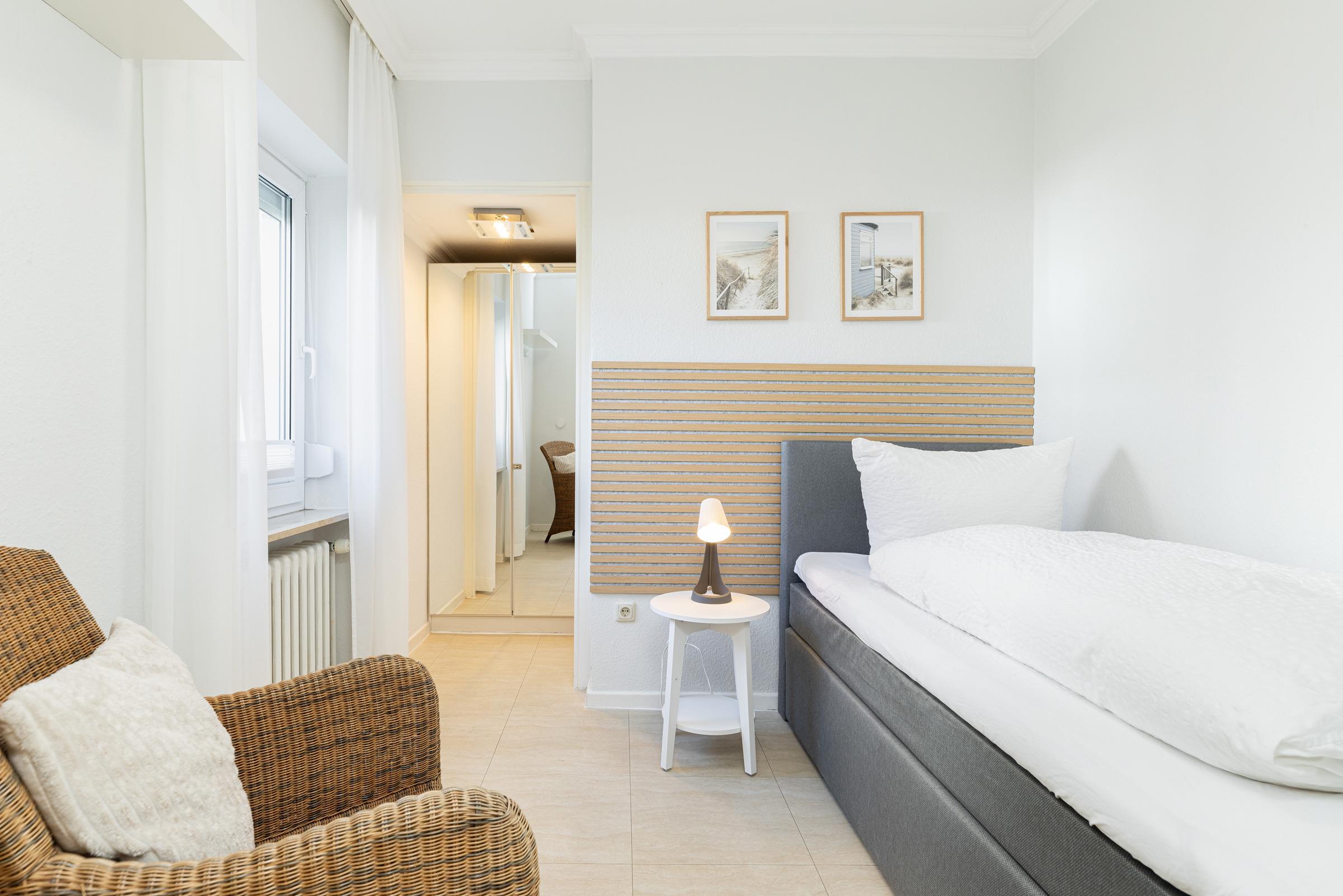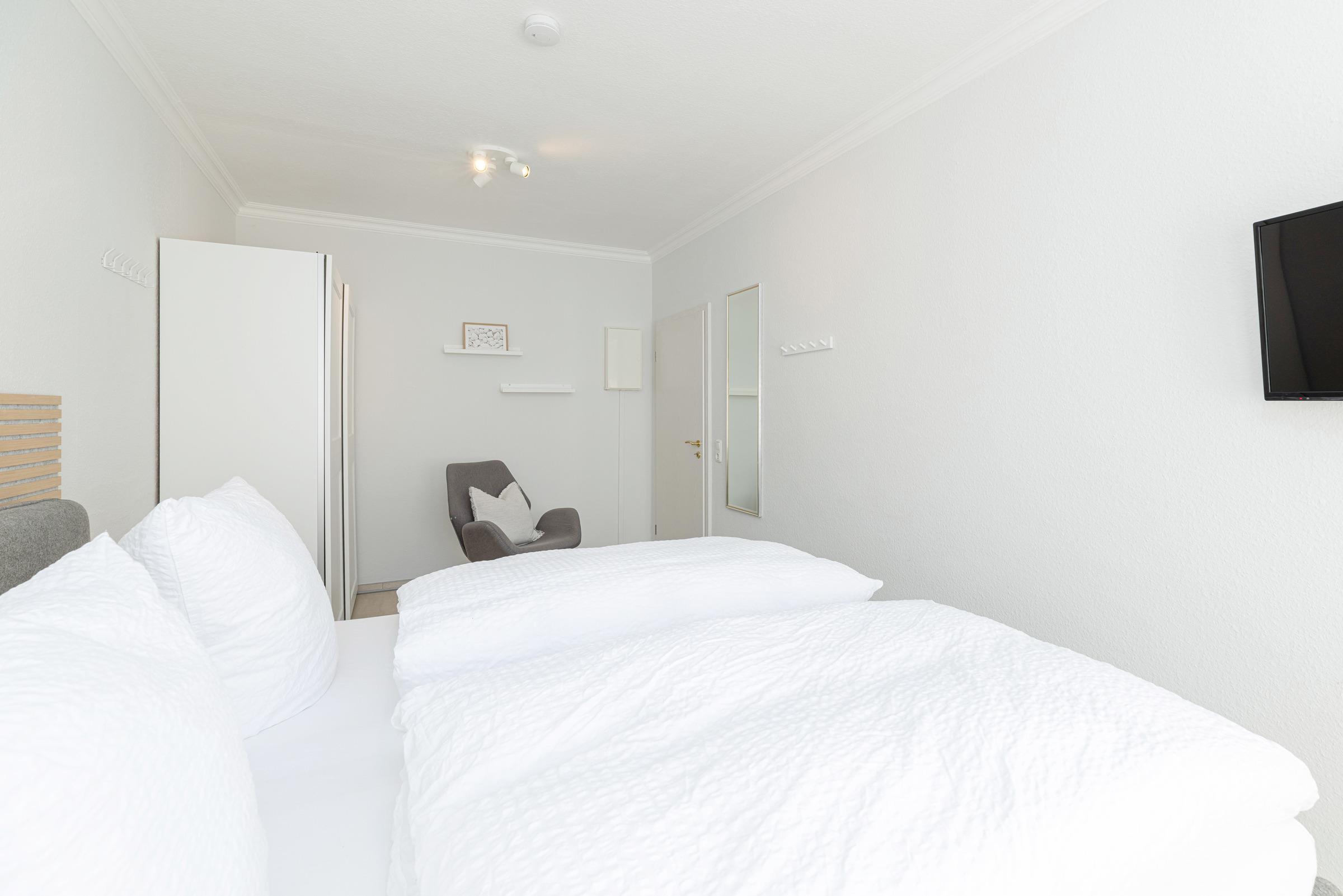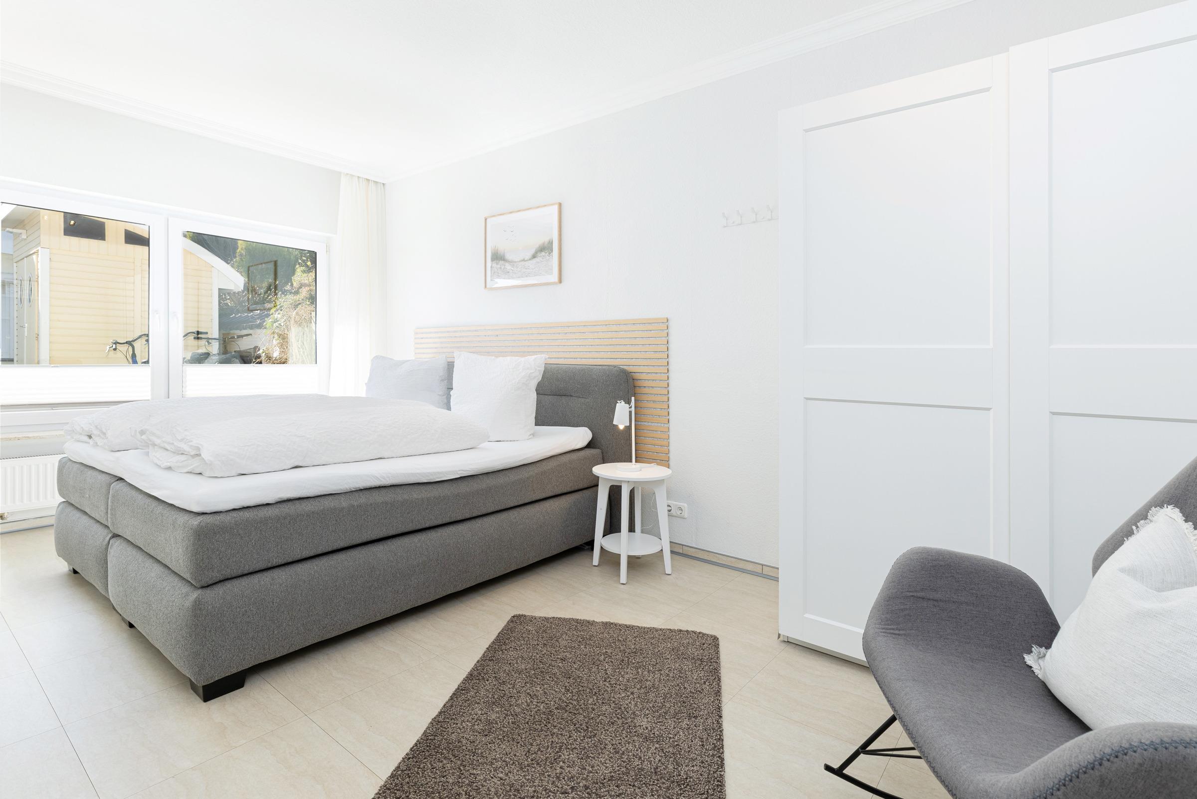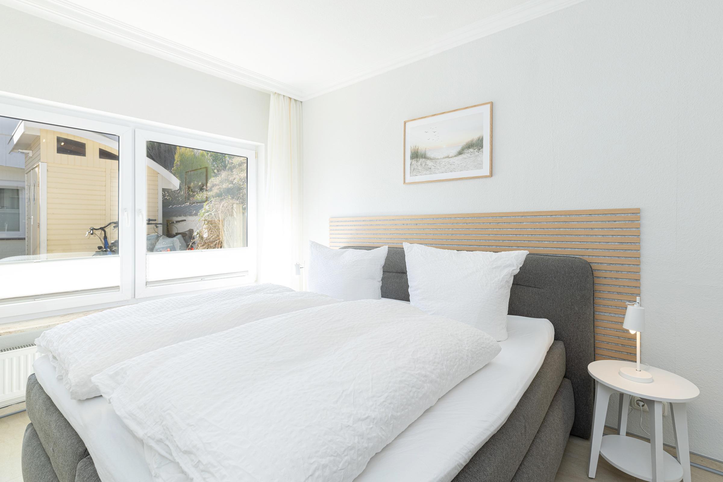 - Zwei gemütliche Schlafzimmer mit großem Kleiderschrank und Boxspring-Betten: ein Doppelbett (180x200) und ein Einzelbett (90x200)