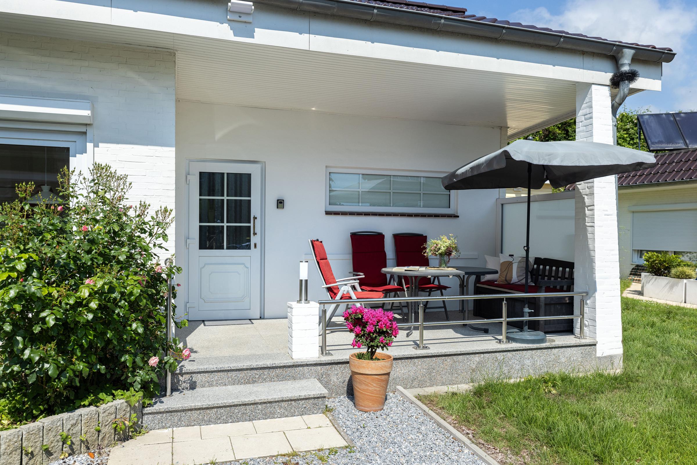 Moderner Ostsee-Bungalow in Grömitz, nur 70 m vom Strand, ideal für erholsame Ferien mit Komfort und Meerblick.