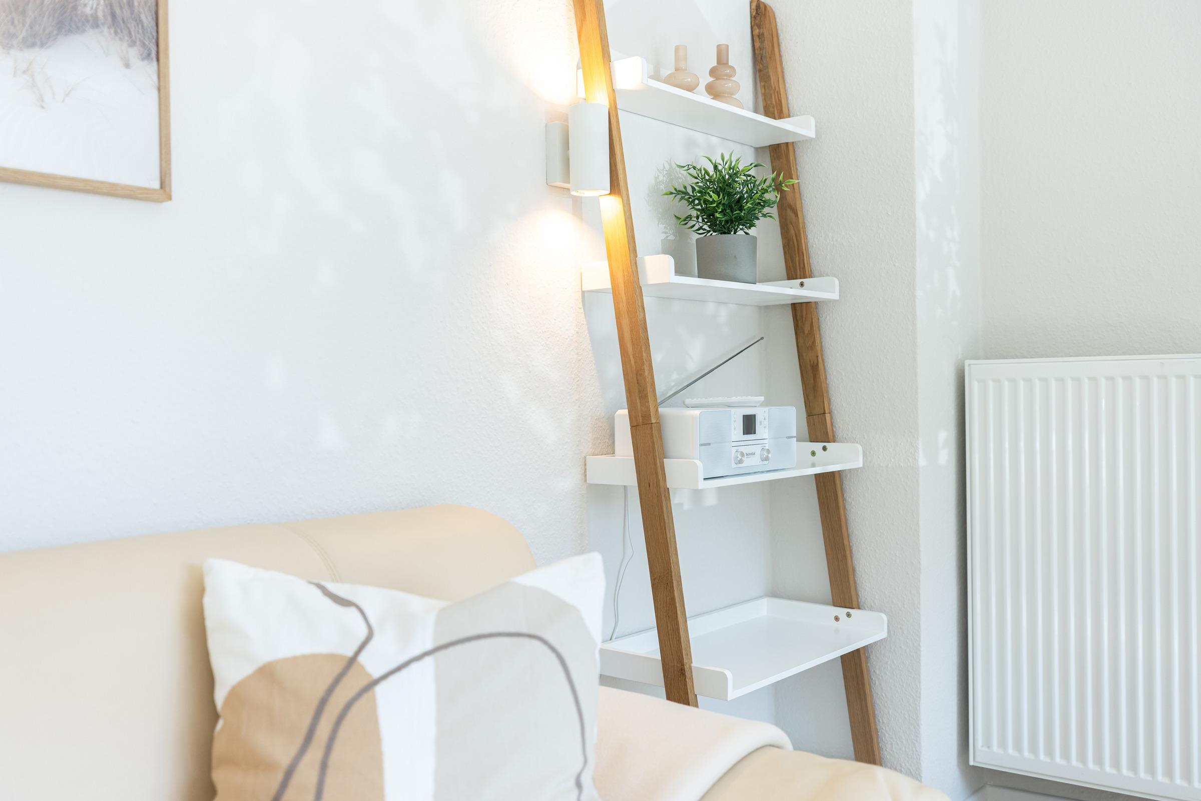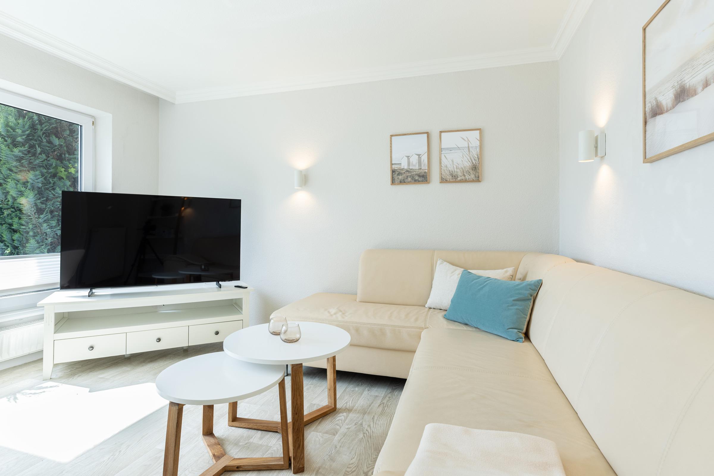 Genießen Sie die frische Ostseeluft das ganze Jahr über auf der charmanten Frühstücksterrasse oder verbringen Sie harmonische Abende bei Spielen oder vor dem Fernseher im modern-gemütlichen Wohnzimmer mit großem Panoramafenster. Hier finden Sie Ruhe und Erholung in stilvollem Ambiente.