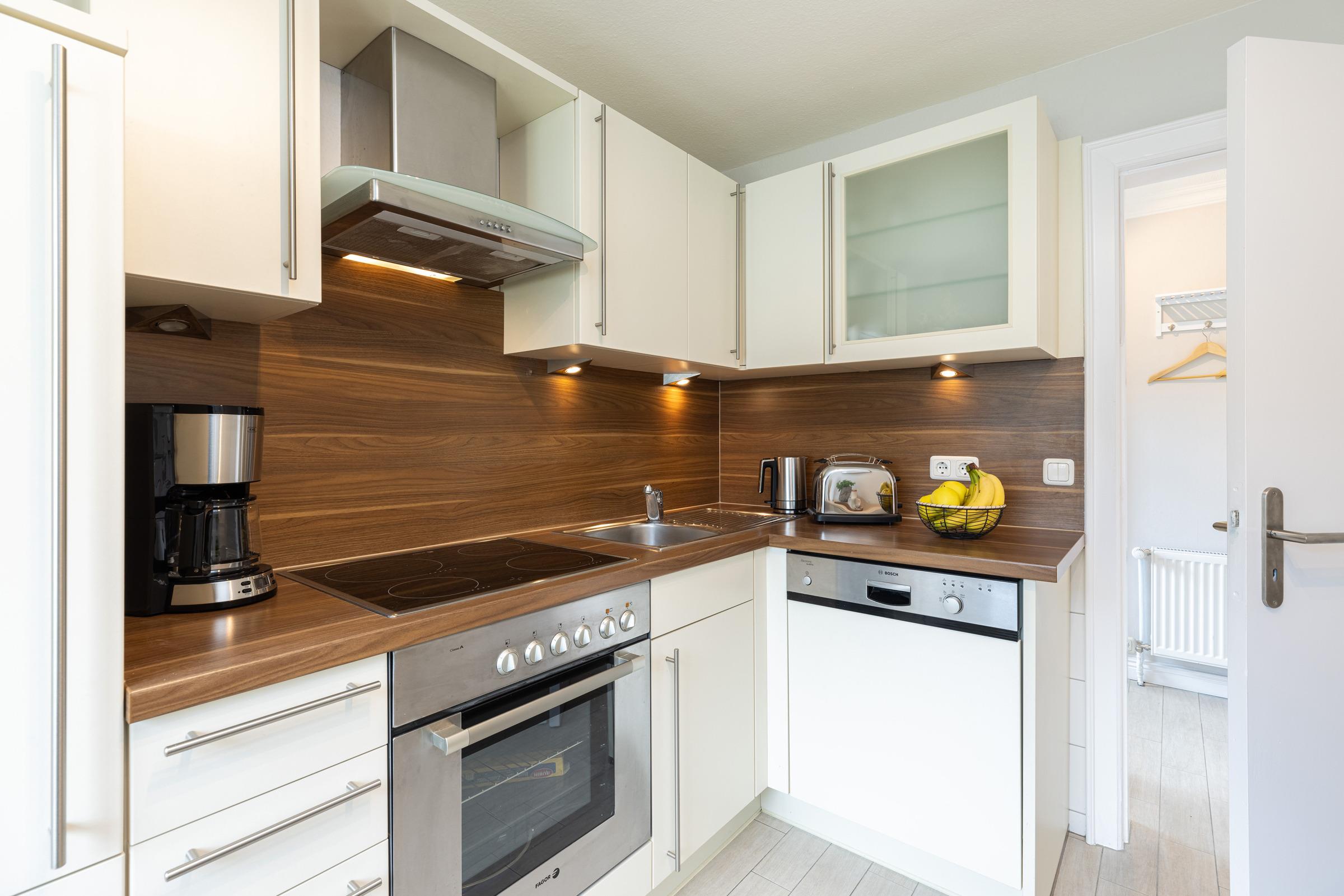 - Eine separate, gut ausgestattete Küche