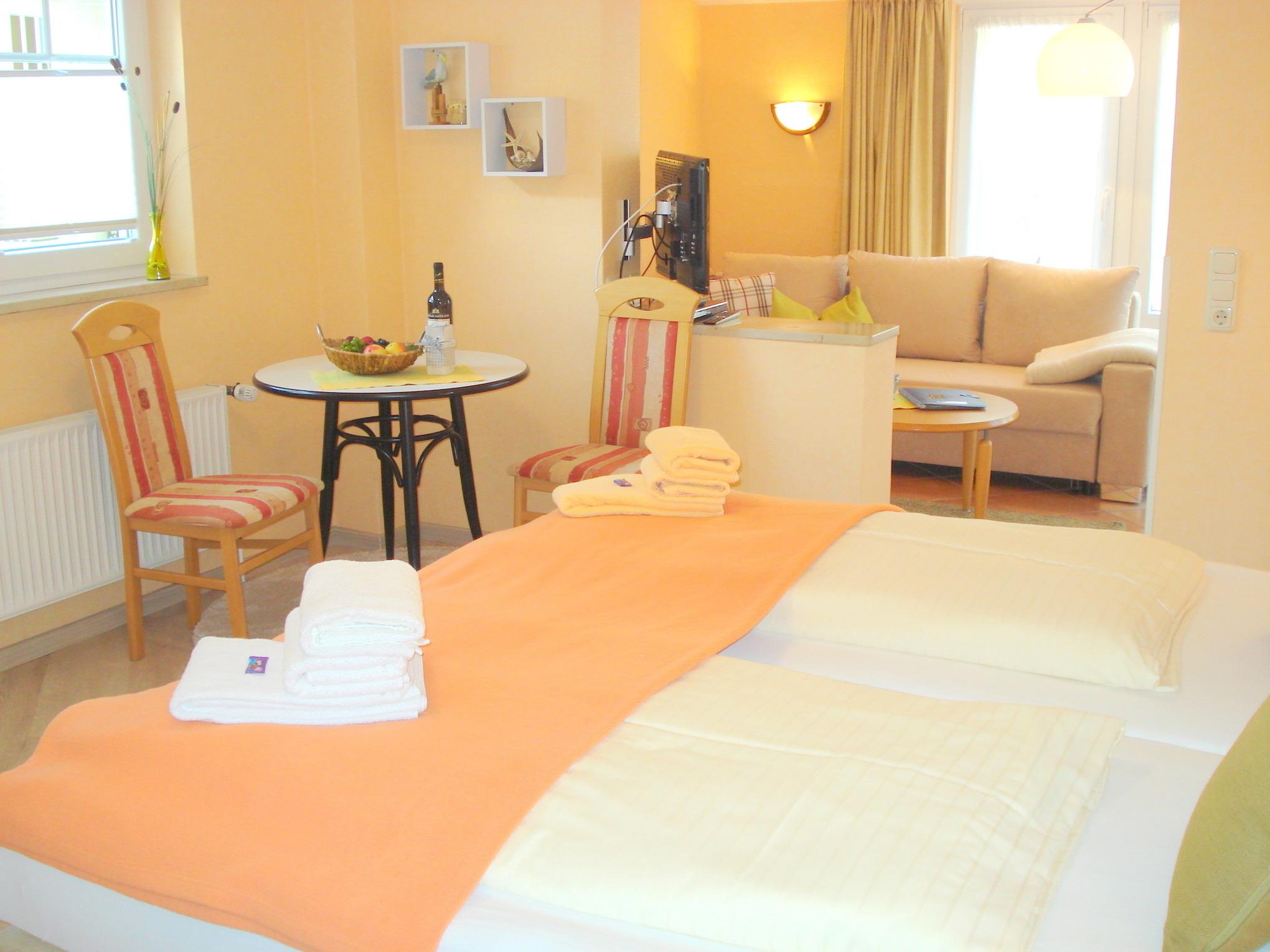 Gemütlich und modern eingerichtete 1-Zimmer-Wohnung direkt am Sonnenkreisel. Den Strandbereich mit der Kurpromenade erreichen Sie fußläufig in 15 Minuten, Einkaufsmöglichkeiten befinden sich nur einen Katzensprung entfernt. W-LAN ist vorhanden.