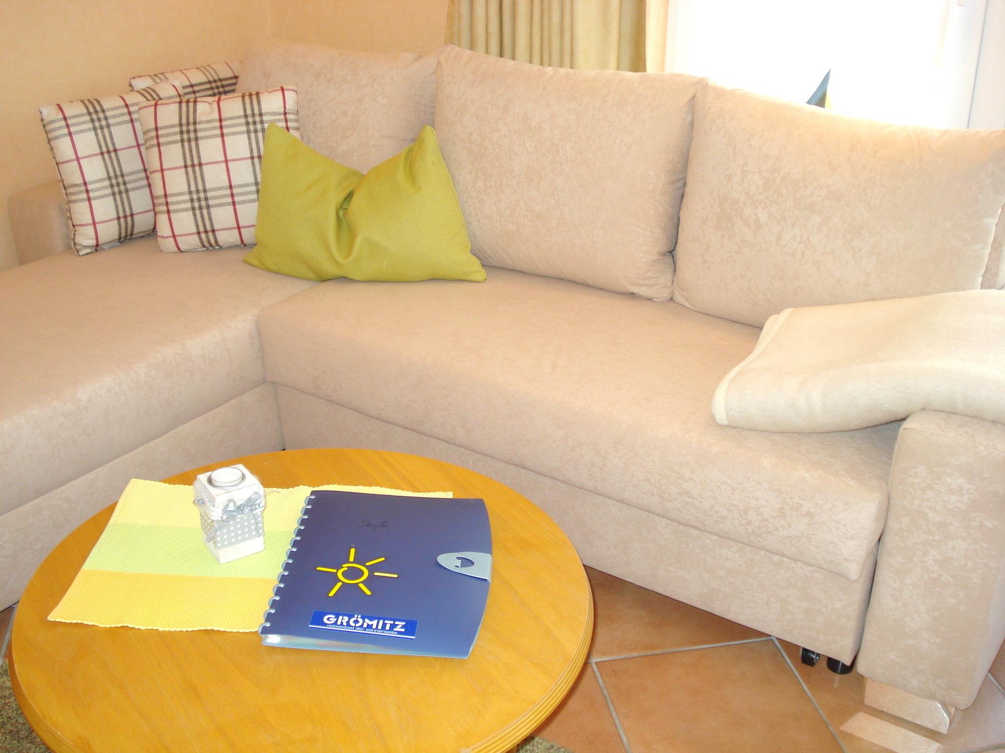 Das gemütlich eingerichtete Wohnzimmer verfügt über ein Ecksofa, einen Essplatz für 2 Personen, CD-Radio sowie einen SAT-TV. Hier haben Sie Zugang zur sonnigen und möblierten Terrasse, auf der Sie Ihre Urlaubstage genießen können.