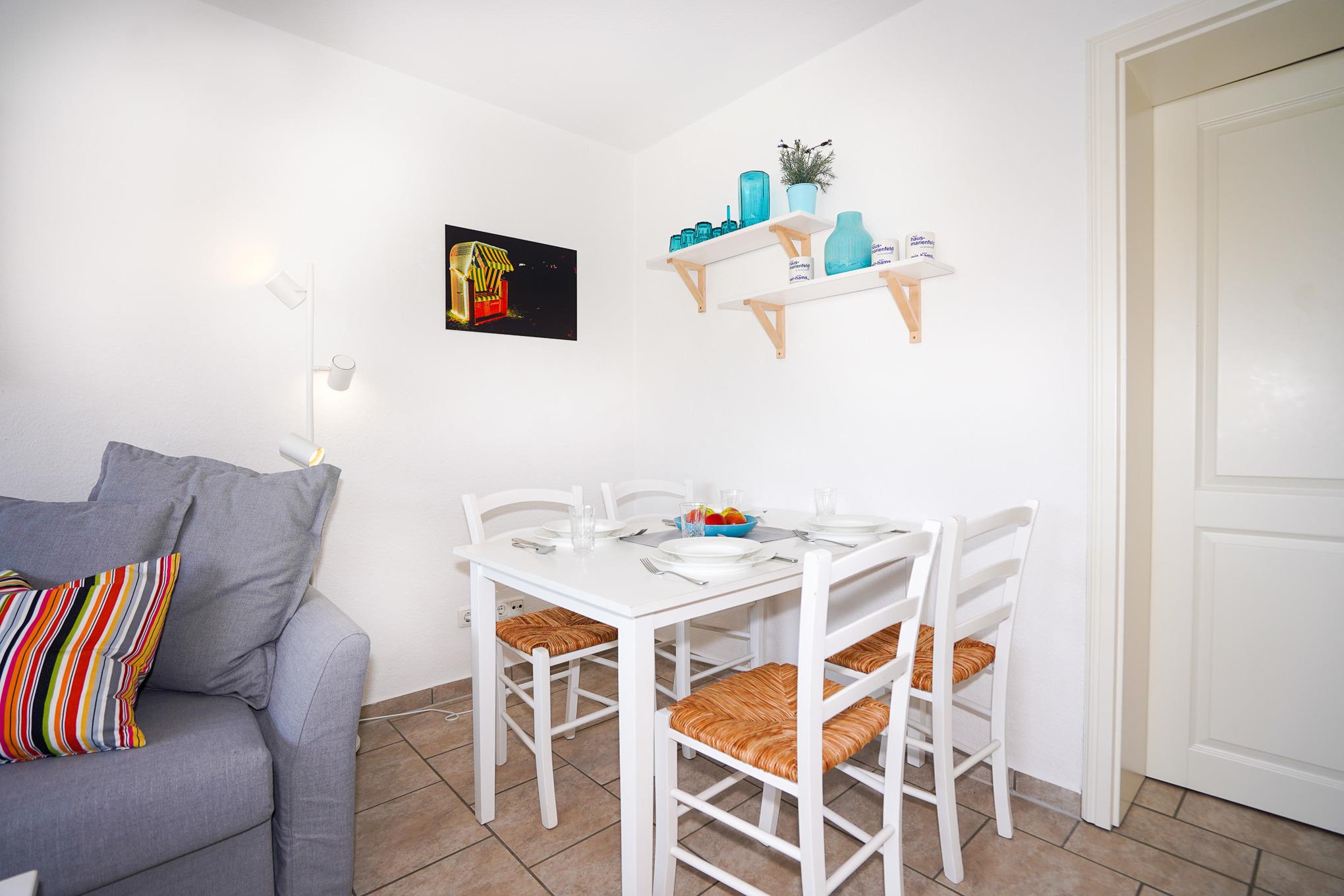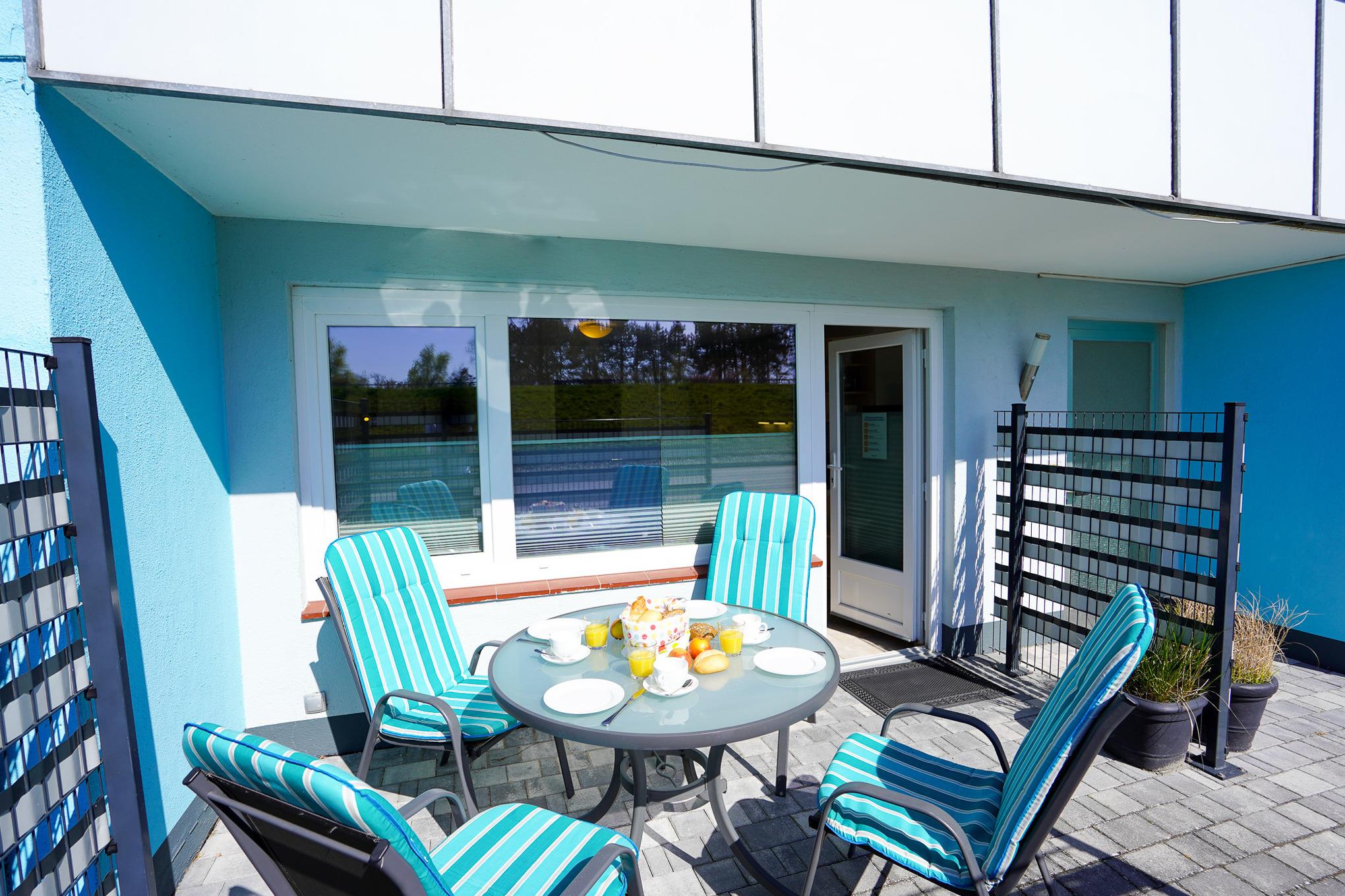 Falls Sie mal nicht an den Strand möchten, genießen Sie die Sonne auf Ihrer ca. 10 qm großen Terrasse. W-Lan und ein kostenloser PKW Stellplatz sind selbstverständlich vorhanden.