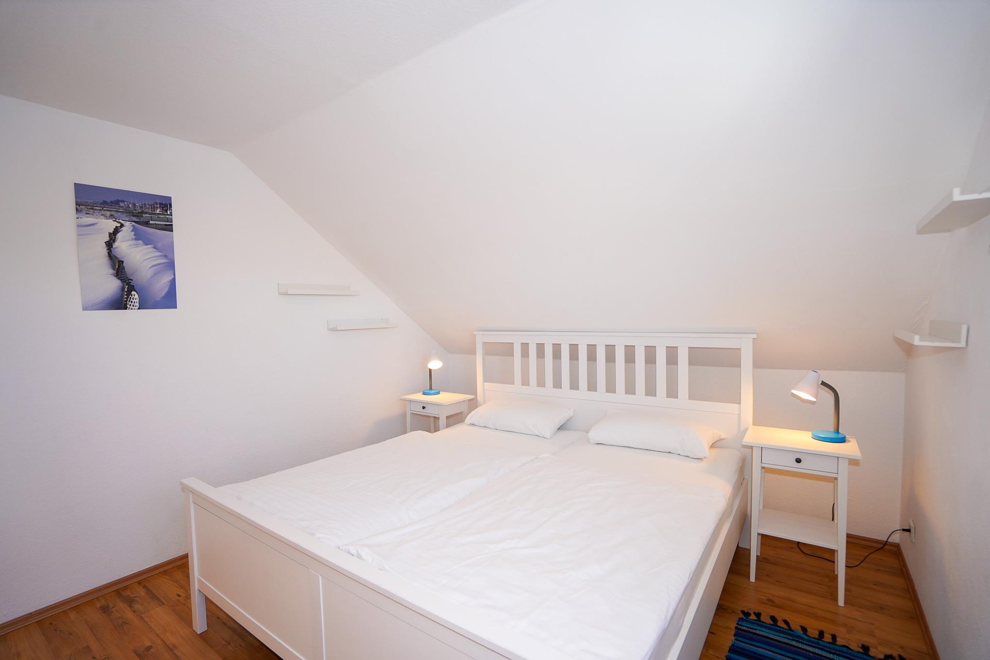 Im Dachgeschoß sind neben zwei Schlafzimmern mit Doppelbett und Kleiderschrank, sowie einem kleinen Schlafzimmer mit Einzelbett, auch ein Duschbad mit WC vorhanden.