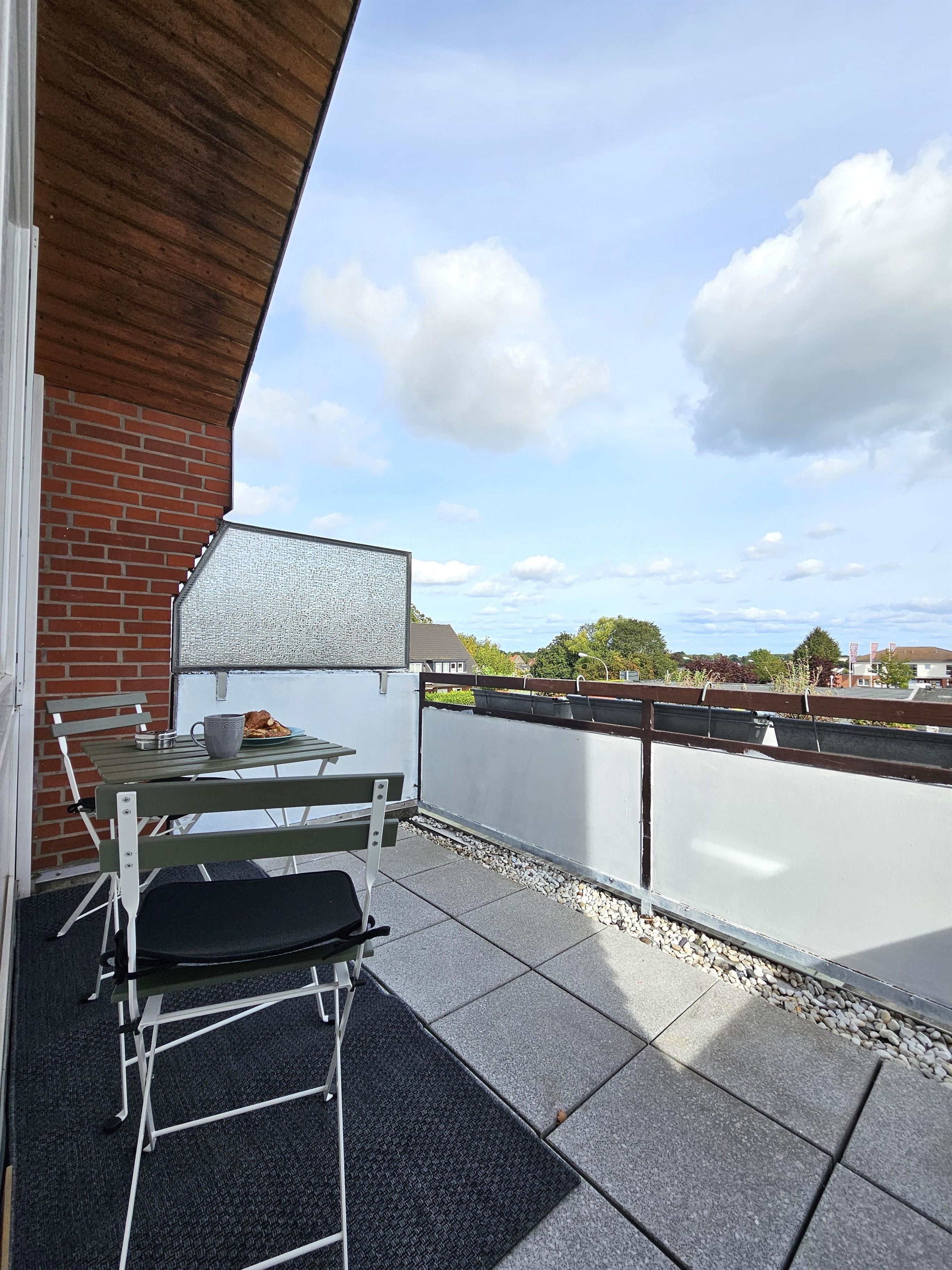 Moderne Ferienwohnung mit Balkon, Blick auf Ostsee und St. Nicolai Kirche in Grömitz.
