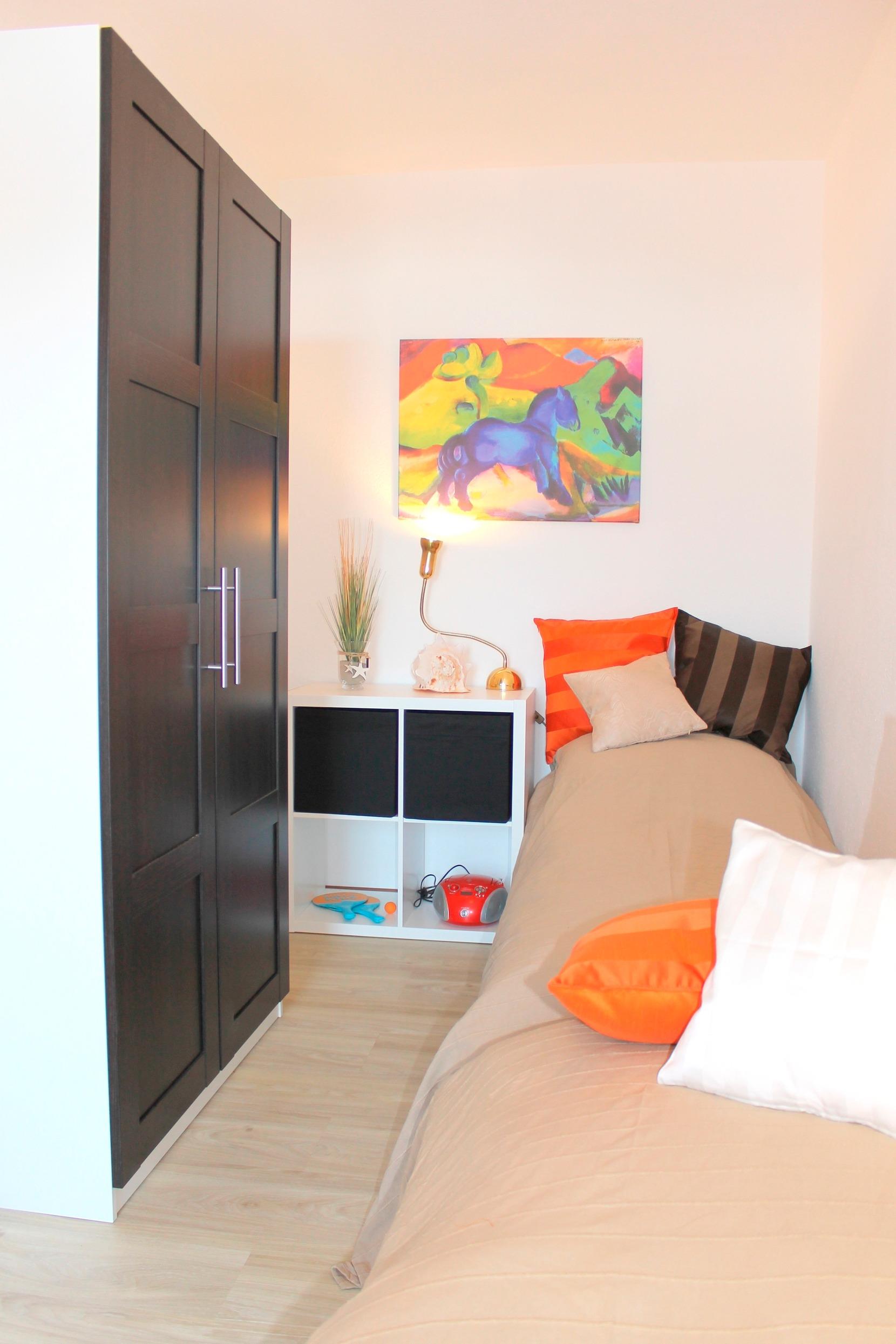 Schlafzimmer 2: zwei Einzelbetten (je 70 x 200 cm), Kleiderschrank, Zugang zu einem kleinen Balkon