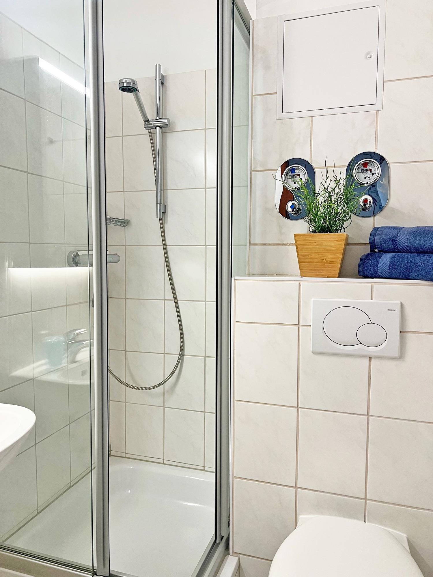 Im Wohnzimmer finden Sie eine einladende Couch, einen Esstisch, einen Flachbildfernseher sowie den direkten Zugang zu einem möblierten, sonnenverwöhnten Balkon. Das Schlafzimmer verfügt über ein komfortables Doppelbett (2x80x200 mit Fußteil) und einem Garderobenständer, weitere Kleidung verstauen Sie im Garderobenschrank im Flur. Die separate, offene Küche ist mit einem Cerankochfeld, Backofen und Kühlschrank (ohne Gefrierfach) ausgestattet und bietet alles, was Sie zur Zubereitung Ihrer Mahlzeiten benötigen. Sie verfügen hier über eine Senseo Padmaschine. Das Badezimmer ist mit einem Waschbecken, WC und einer Dusche ausgestattet. Haartrockner vorhanden. Zur Wohnung gehört außerdem ein Stellplatz mit Parkplatzsperre (Schlüssel durch Agentur). Im gemeinschaftlichen Bereich finden Sie eine Münzwaschmaschine sowie einen Trockner. Wir danken für Ihr Verständnis, dass in dieser Wohnung keine Tiere erlaubt sind und das Rauchen nur auf dem Balkon gestattet ist. Zudem steht Ihnen kostenfreies WLAN zur Verfügung.