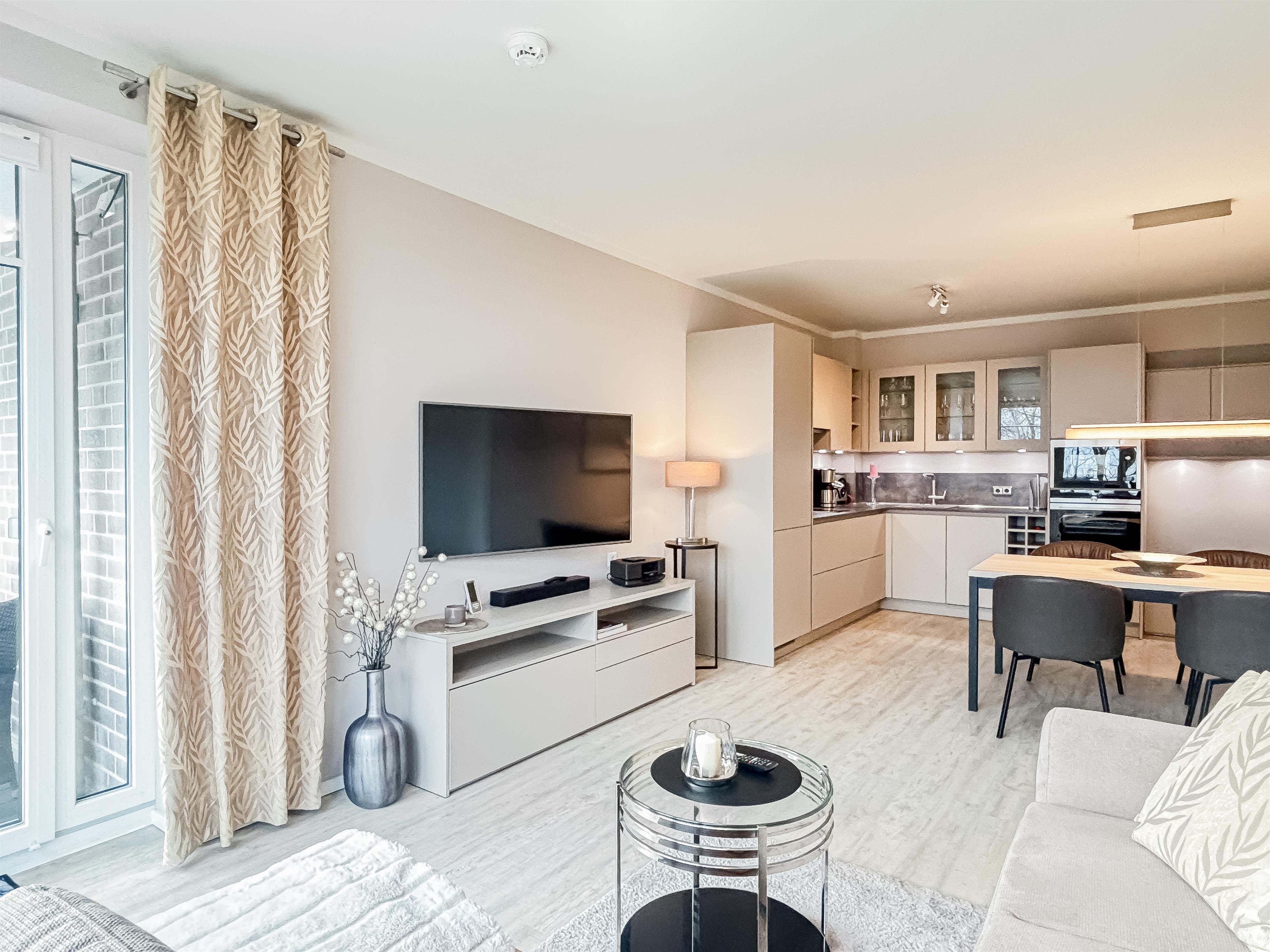 Stilvolle Ferienwohnung in Grömitz mit Balkon, moderner Küche und Nähe zur Strandpromenade, ideal für Paare oder Alleinreisende.
